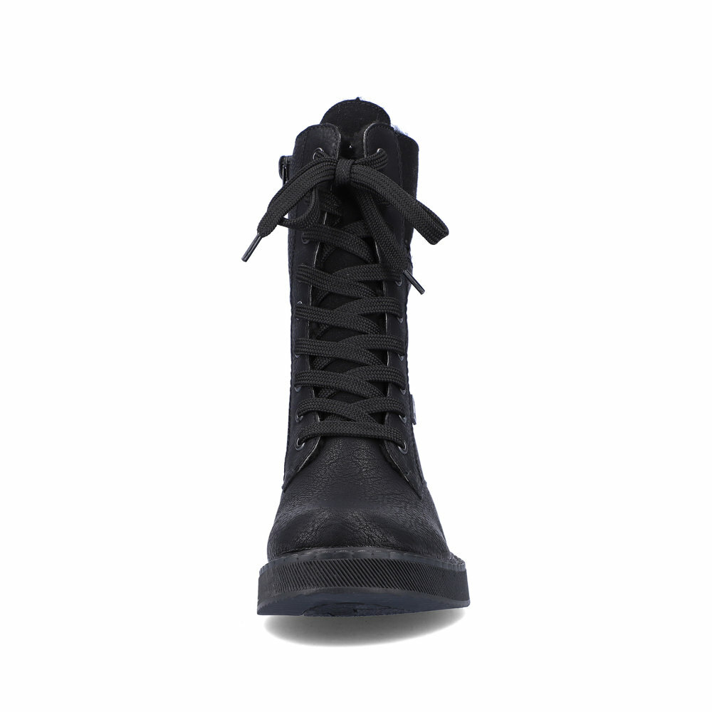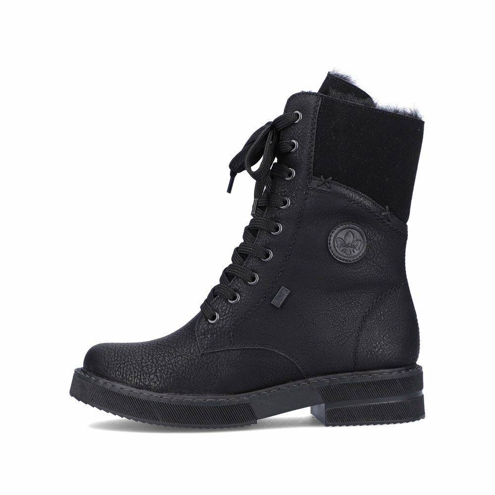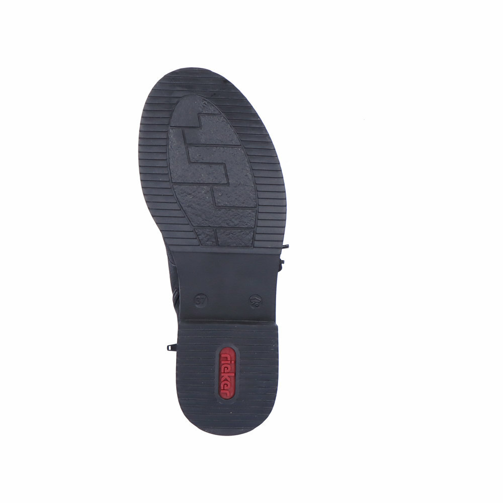 Dámske zateplené topánky z kolekcie značky Rieker. Priestorný strih, mäkký a hrejivý materiál vás zahalí do pohodlia v mrazivých dňoch. Pre ľahké obutie je zapracovaný funkčný zips a šnúrky na šnurovanie. Vďaka pevnému šnurovaniu tento model topánok pevne priľne k nohe po celej dĺžke. Viazanie zároveň esteticky dotvára zvršok obuvi v klasickom štýle. Pre všetkých, ktorí sa chcú v topánkach cítiť pohodlne a štýlovo. Pružná a robustná podošva dokonale dopĺňa športový dizajn, postará sa o Vaše pohodlie na každom kroku, tlmí nárazy a otrasy. Vďaka unikátnym vlastnostiam podošvy zažijete jedinečný pocit ľahkosti pri chôdzi. Ak denne trávite na nohách viac času tak značka Rieker je skutočne tou pravou voľbou pre Vás. Ide doslova o vychádzkovú obuv ktorá vydrží v plnej kvalite naozaj veľmi dlhý čas. Rieker TEX - funkčná vrstva, vďaka ktorej je topánka nepremokavá a napriek tomu priedušná.