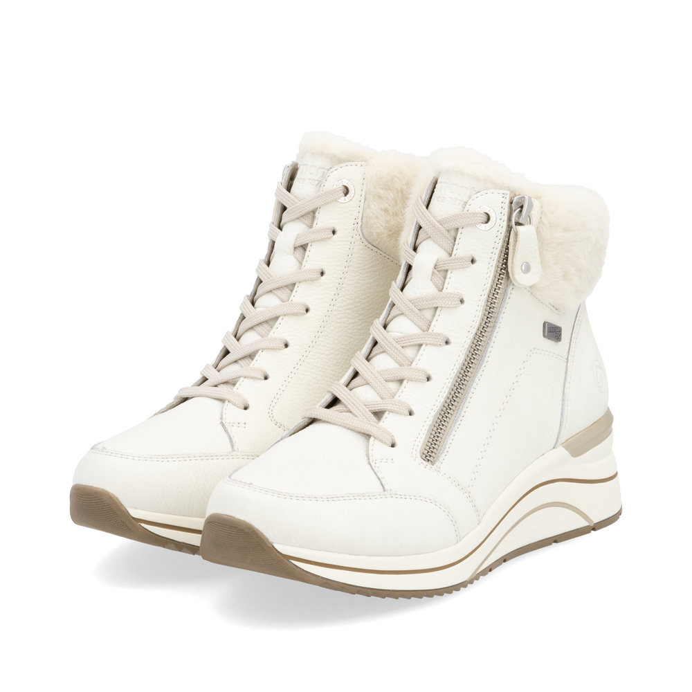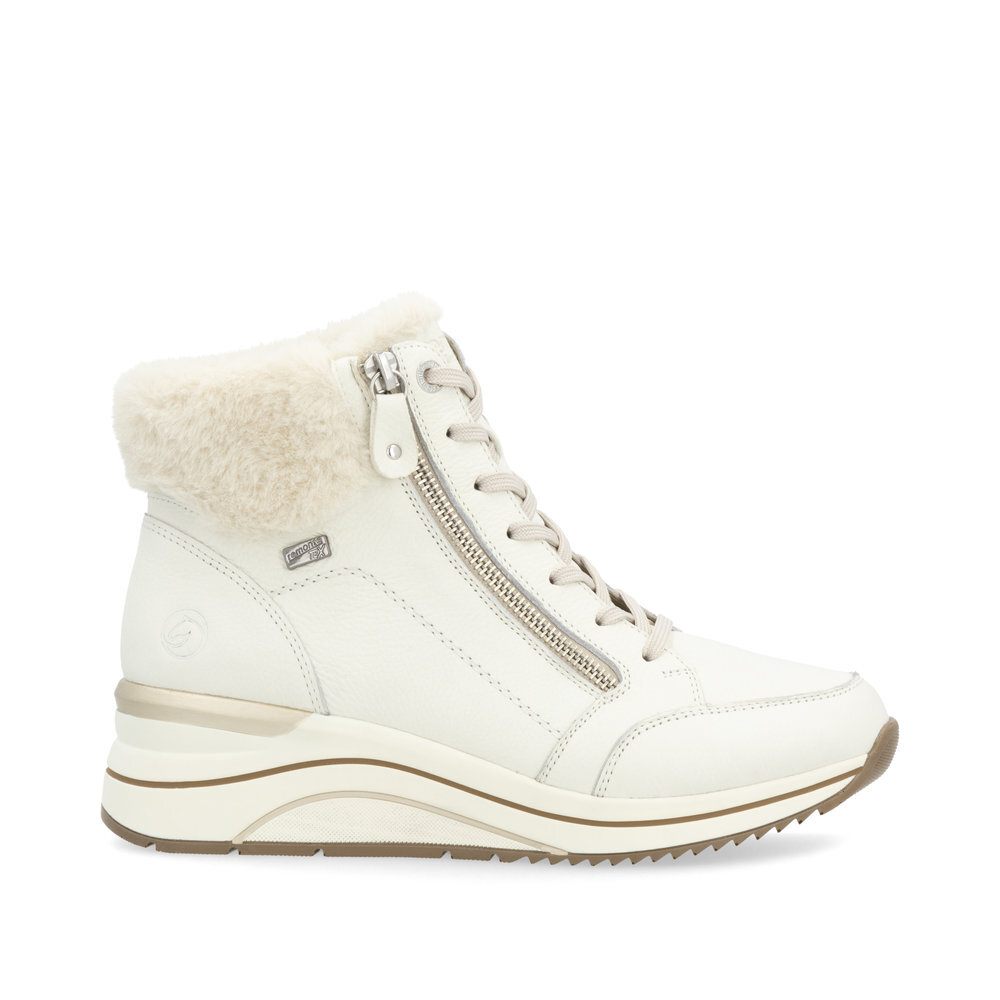 Dámske kožené topánky z kolekcie Remonte - Rieker. Určite si ich zamilujete vďaka ich pohodlnosti a mäkkosti. Priestorný strih, mäkký a hrejivý materiál vás zahalí do pohodlia v mrazivých dňoch. Pre ľahké obutie je zapracovaný funkčný zips a šnúrky na šnurovanie. Vďaka pevnému šnurovaniu tento model topánok pevne priľne k nohe po celej dĺžke. Viazanie zároveň esteticky dotvára zvršok obuvi v klasickom štýle. Strih do klasickej guľatej špičky. Pružná a robustná podošva dokonale dopĺňa športový dizajn, postará sa o Vaše pohodlie na každom kroku, tlmí nárazy a otrasy. Je to ideálny model, ktorý oceníte pri ceste do práce, ale aj pri bežných pochôdzkach. Obuv REMONTE - jedná sa o vyššiu radu značky RIEKER, táto obuv sa vyznačuje vynikajúcou kombináciou vrchných materiálov. Topánky Vám zabezpečia maximálny komfort pri celodennom nosení. Pre všetkých, ktorí sa chcú v topánkach cítiť pohodlne a štýlovo.