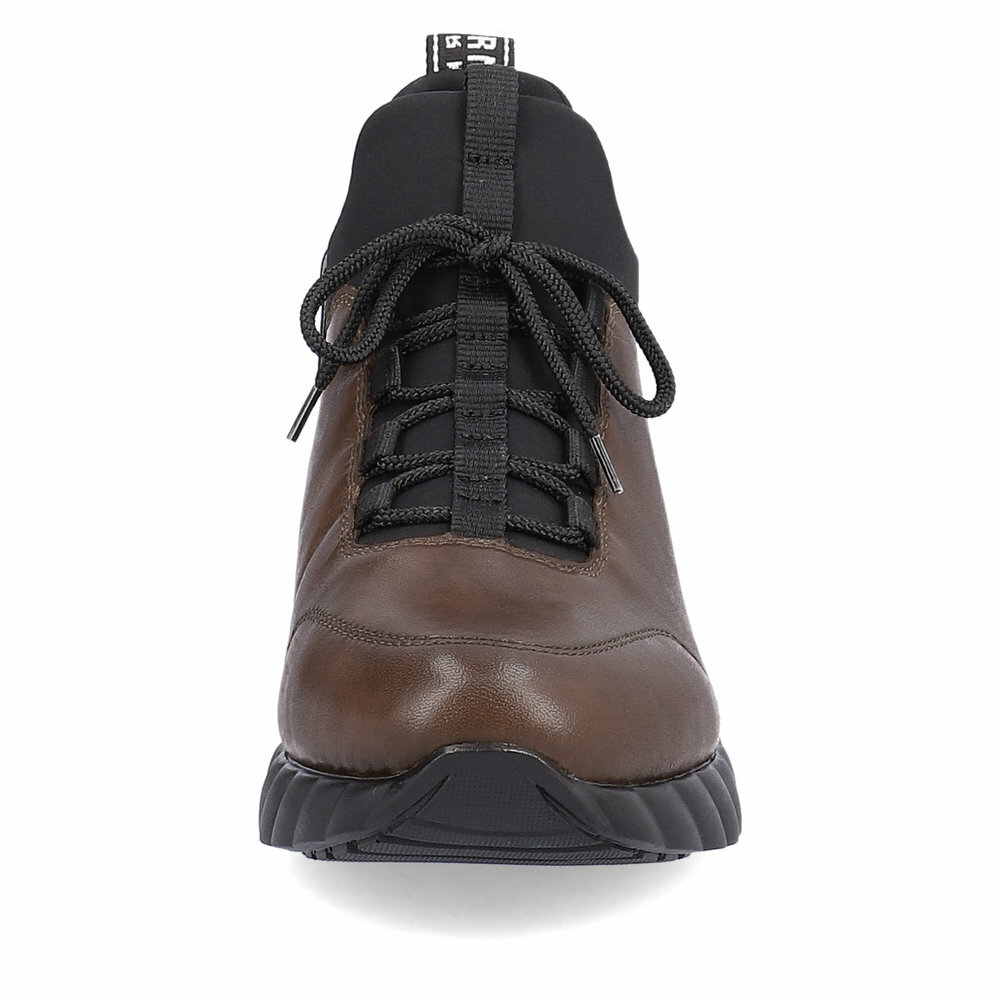 Dámske kožené tenisky z kolekcie značky Remonte - Rieker. Pohodlne a štýlovo, tak sa budete cítiť v tomto modeli topánok. Určite si ich zamilujete vďaka ich pohodlnosti a mäkkosti. Kožené topánky sú zaručenou klasikou, zaručia Vám vysokú kvalitu a ide o pár, ktorý vám vydrží niekoľko sezón. Vďaka pevnému šnurovaniu tento model topánok pevne priľne k nohe po celej dĺžke. Viazanie zároveň esteticky dotvára zvršok obuvi v klasickom štýle. Pružná podošva dokonale dopĺňa dizajn, postará sa o Vaše pohodlie na každom kroku, tlmí nárazy a otrasy. Vďaka jej vlastnostiam je táto obuv vyhľadávaná všetkými, ktorí musia počas dňa dlho stáť a chodiť. Po vyčerpávajúcom a náročnom dni sa budú Vaše nohy cítiť svieže a oddýchnuté a to najmä vďaka ľahkým materiálom.