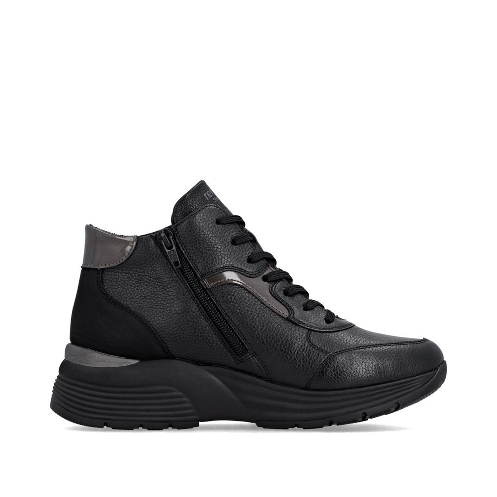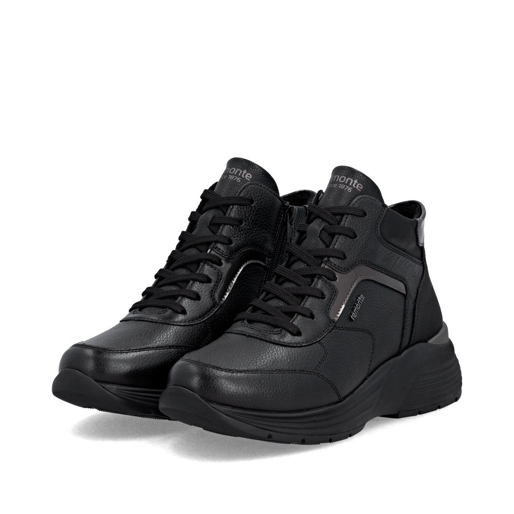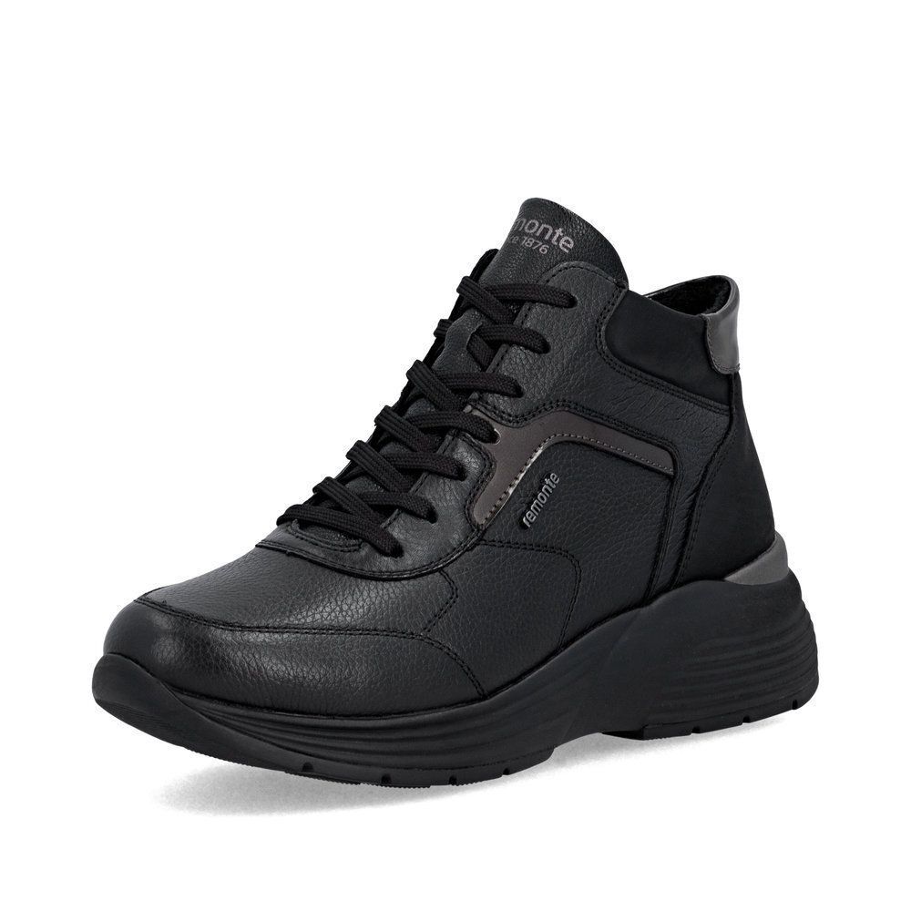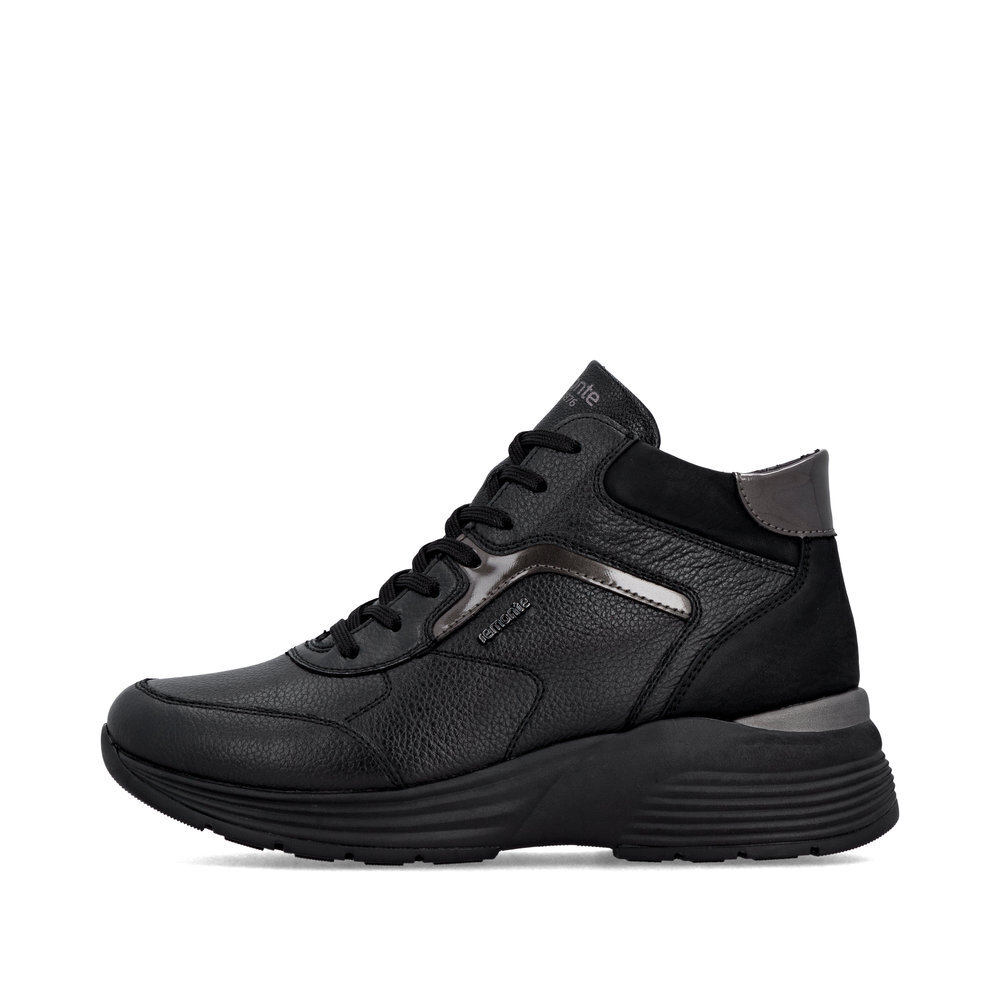 Dámske kožené tenisky z kolekcie značky Remonte - Rieker. Pohodlne a štýlovo, tak sa budete cítiť v tomto modeli topánok. Príjemne mäkká stielka, ohybná podošva s optimálnou výškou klinu. Vďaka pevnému šnurovaniu tento model topánok pevne priľne k nohe po celej dĺžke. Viazanie zároveň esteticky dotvára zvršok obuvi v klasickom štýle. Pružná a robustná podošva dokonale dopĺňa dizajn, postará sa o Vaše pohodlie na každom kroku, tlmí nárazy a otrasy. Mäkká stielka, ktorá podporí príjemný došľap, nadväzuje na zabrúsenú pätnú časť. Vďaka jej vlastnostiam je táto obuv vyhľadávaná všetkými, ktorí musia počas dňa dlho stáť a chodiť. Po vyčerpávajúcom a náročnom dni sa budú Vaše nohy cítiť svieže a oddýchnuté a to najmä vďaka ľahkým materiálom.