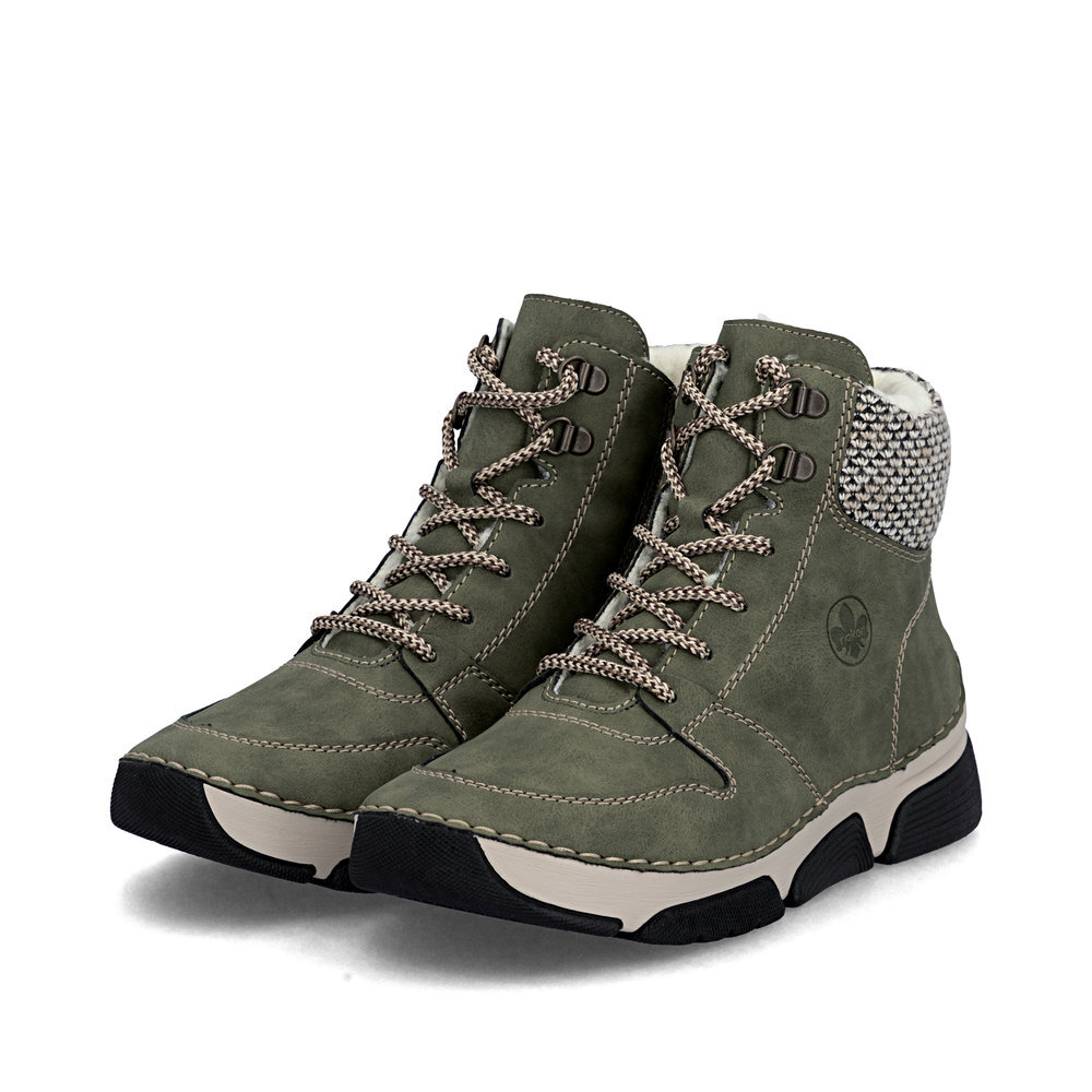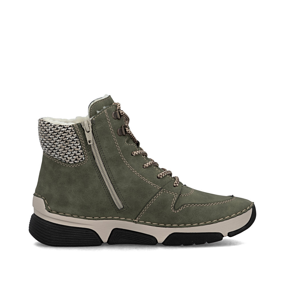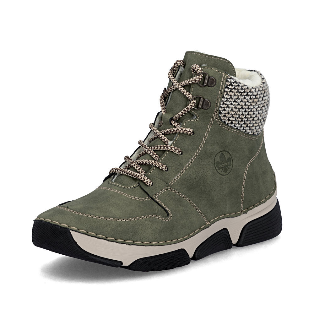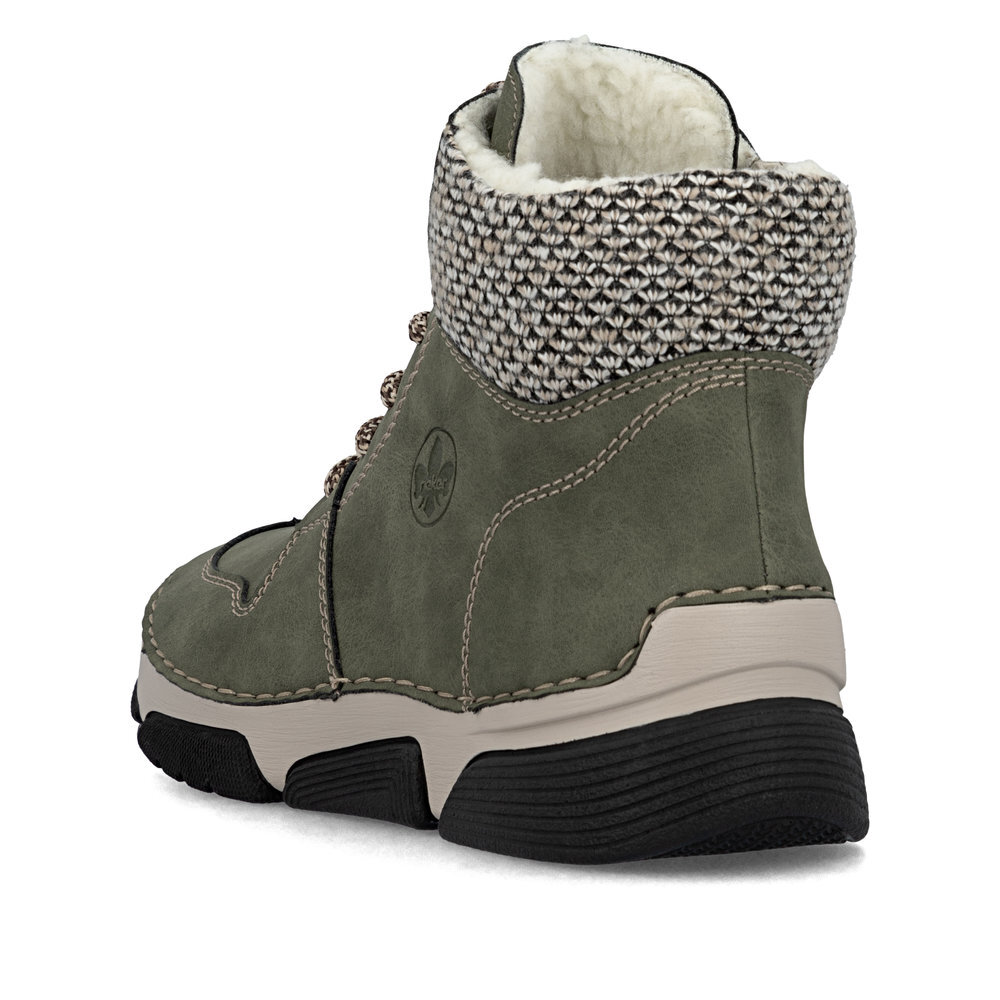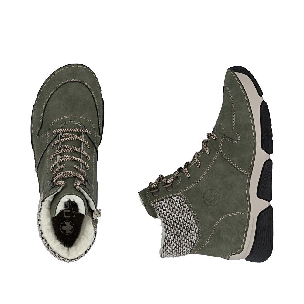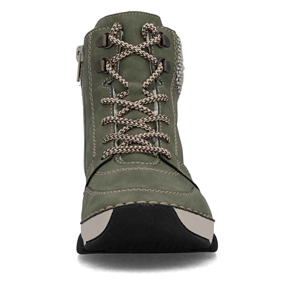Dámske zateplené topánky z kolekcie značky Rieker. Určite si ich zamilujete vďaka ich pohodlnosti a mäkkosti. Priestorný tvar špičky, mäkký a hrejivý materiál vás zahalí do pohodlia v mrazivých dňoch. Pre ľahké obutie je zapracovaný funkčný zips a šnúrky na šnurovanie. Vďaka pevnému šnurovaniu tento model topánok pevne priľne k nohe po celej dĺžke. Viazanie zároveň esteticky dotvára zvršok obuvi v klasickom štýle. Pre všetkých, ktorí sa chcú v topánkach cítiť pohodlne a štýlovo. Vďaka unikátnym vlastnostiam podošvy zažijete jedinečný pocit ľahkosti pri chôdzi. Ak denne trávite na nohách viac času tak značka Rieker je skutočne tou pravou voľbou pre Vás. Ide doslova o vychádzkovú obuv ktorá vydrží v plnej kvalite naozaj veľmi dlhý čas.