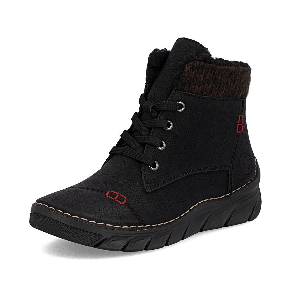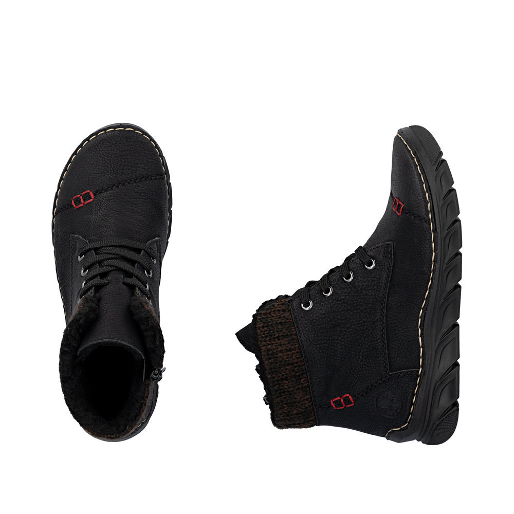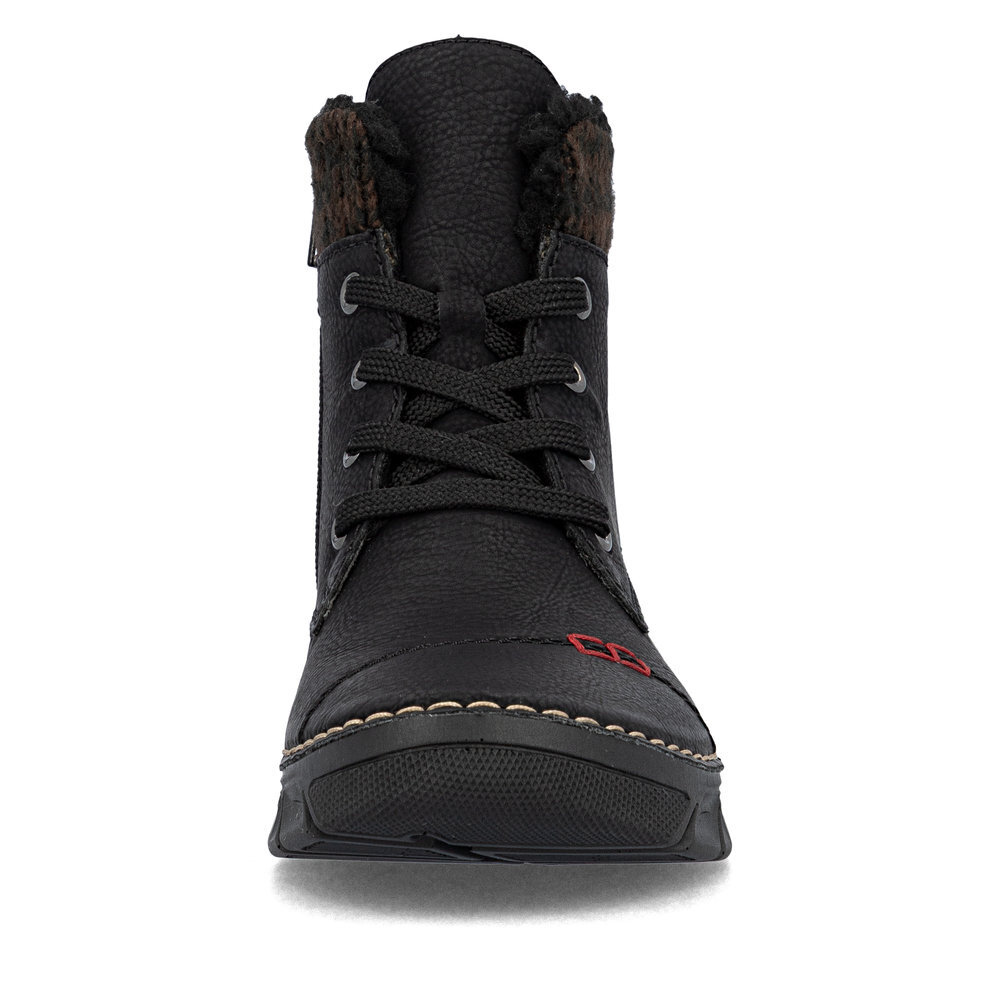Dámske zateplené topánky z kolekcie značky Rieker. Určite si ich zamilujete vďaka ich pohodlnosti a mäkkosti. Priestorný tvar špičky, mäkký a hrejivý materiál vás zahalí do pohodlia v mrazivých dňoch. Vďaka pevnému šnurovaniu tento model topánok pevne priľne k nohe po celej dĺžke. Viazanie zároveň esteticky dotvára zvršok obuvi v klasickom štýle. Pre všetkých, ktorí sa chcú v topánkach cítiť pohodlne a štýlovo. Vďaka unikátnym vlastnostiam podošvy zažijete jedinečný pocit ľahkosti pri chôdzi. Ak denne trávite na nohách viac času tak značka Rieker je skutočne tou pravou voľbou pre Vás. Ide doslova o vychádzkovú obuv ktorá vydrží v plnej kvalite naozaj veľmi dlhý čas.