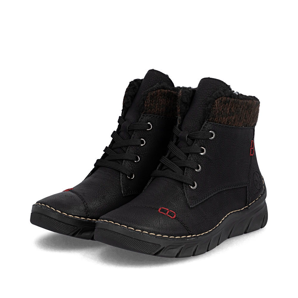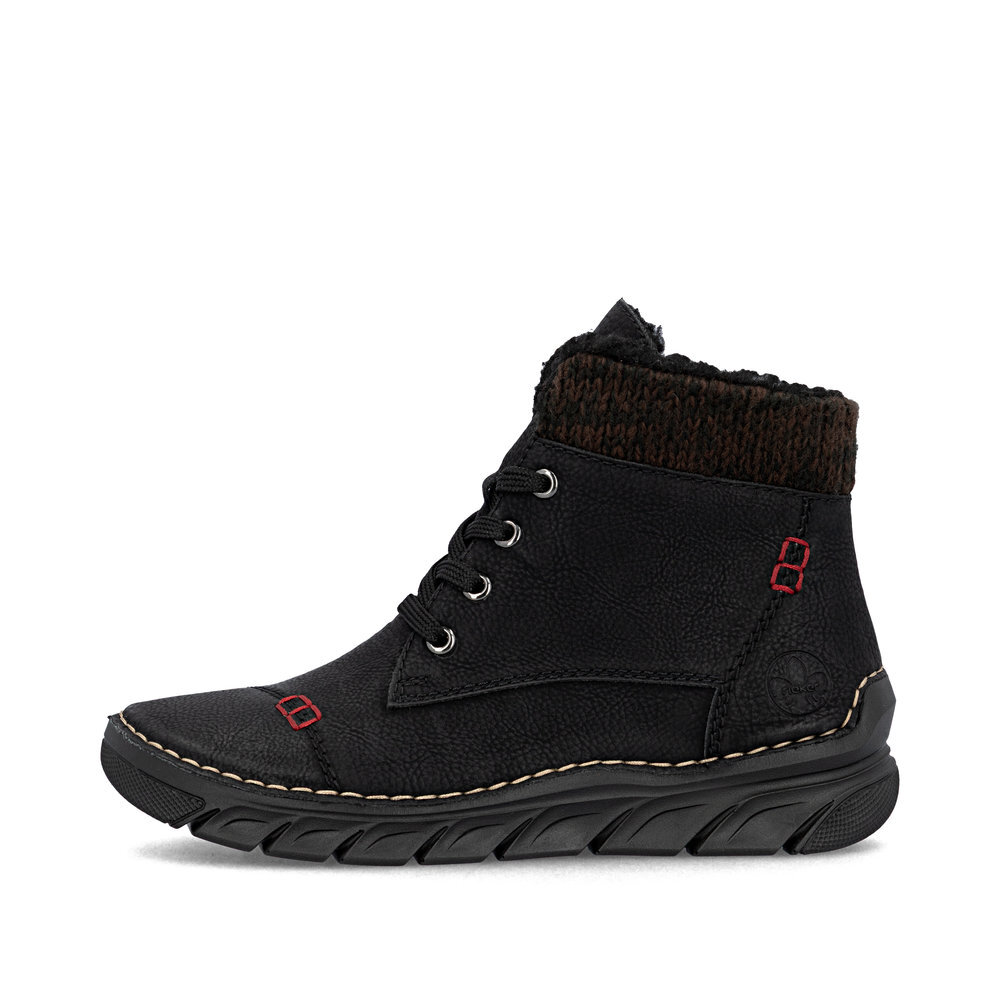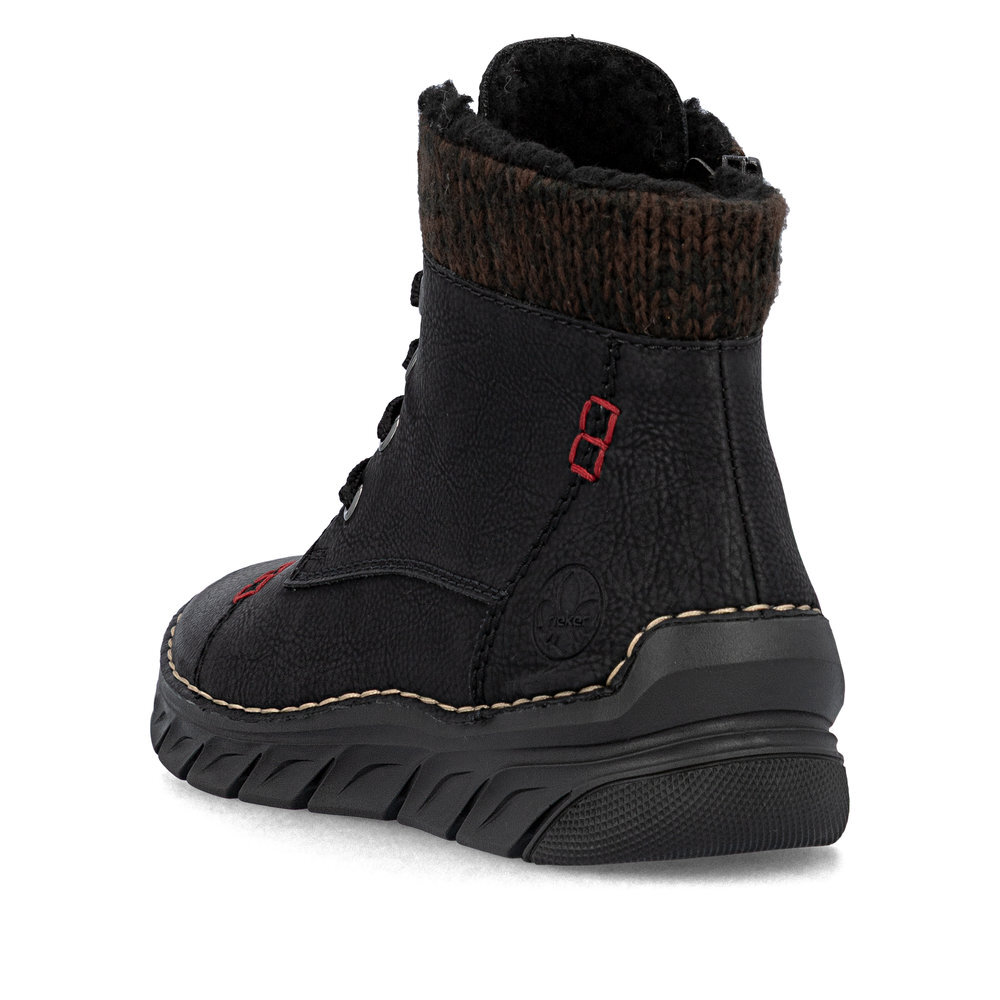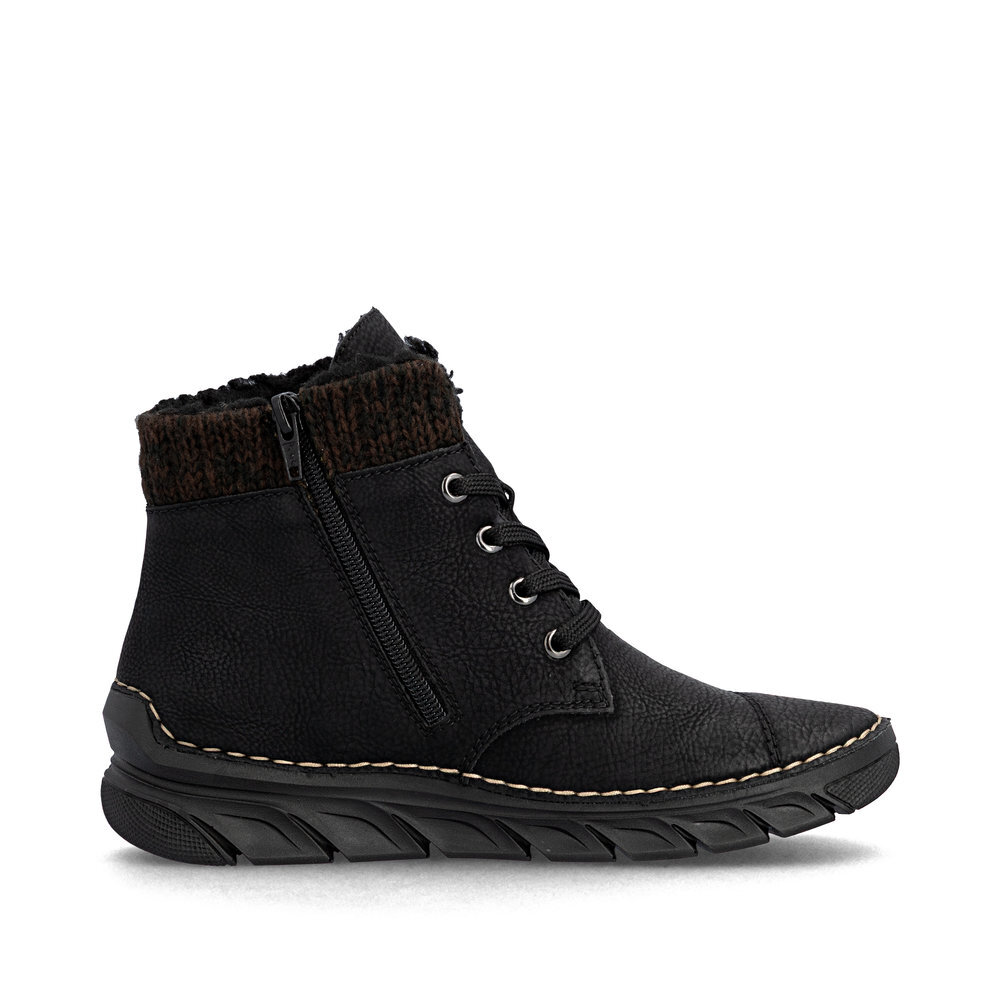 Dámske zateplené topánky z kolekcie značky Rieker. Určite si ich zamilujete vďaka ich pohodlnosti a mäkkosti. Priestorný tvar špičky, mäkký a hrejivý materiál vás zahalí do pohodlia v mrazivých dňoch. Vďaka pevnému šnurovaniu tento model topánok pevne priľne k nohe po celej dĺžke. Viazanie zároveň esteticky dotvára zvršok obuvi v klasickom štýle. Pre všetkých, ktorí sa chcú v topánkach cítiť pohodlne a štýlovo. Vďaka unikátnym vlastnostiam podošvy zažijete jedinečný pocit ľahkosti pri chôdzi. Ak denne trávite na nohách viac času tak značka Rieker je skutočne tou pravou voľbou pre Vás. Ide doslova o vychádzkovú obuv ktorá vydrží v plnej kvalite naozaj veľmi dlhý čas.