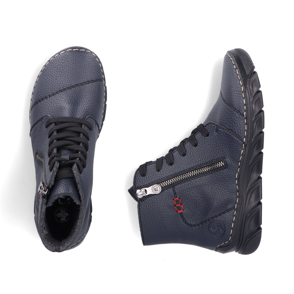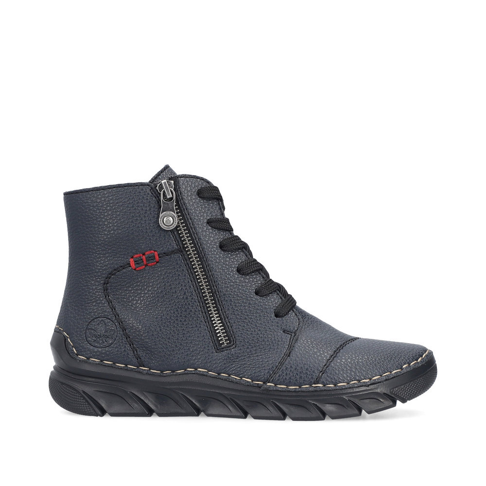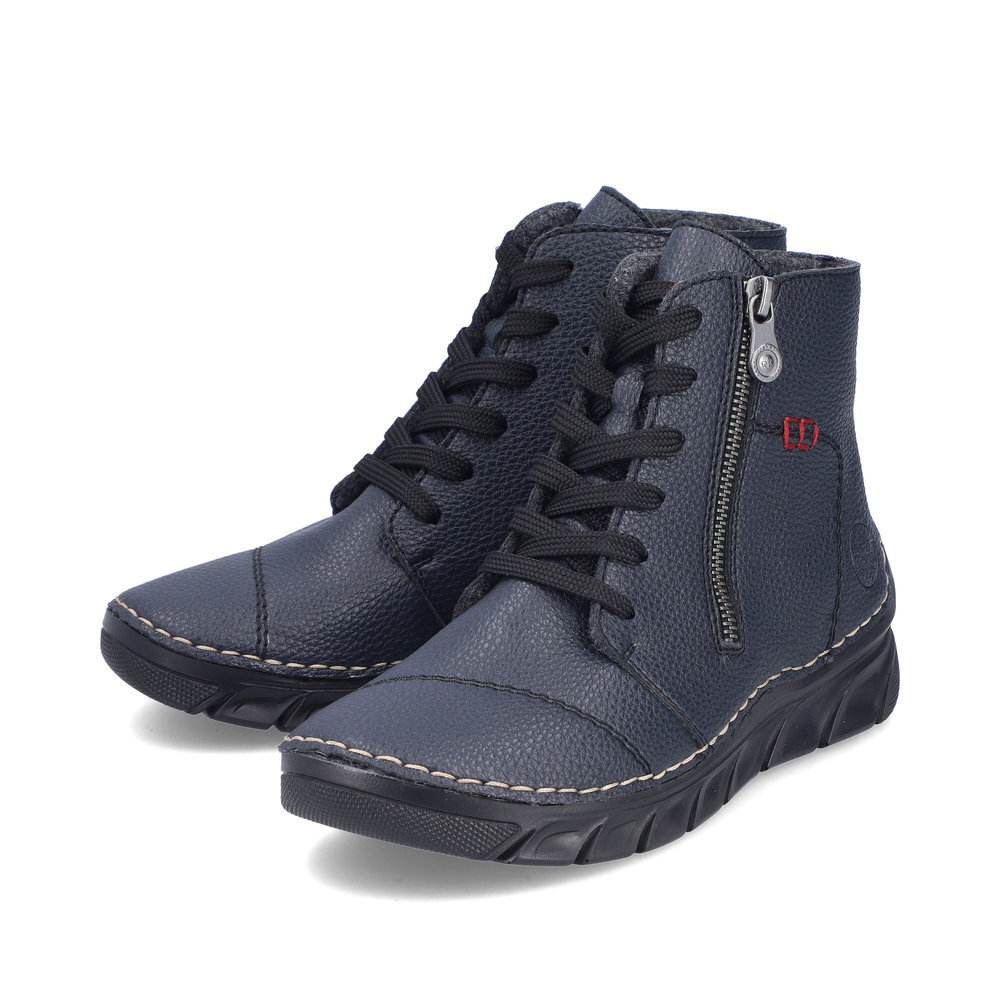 Dámske zateplené topánky z kolekcie značky Rieker. Určite si ich zamilujete vďaka ich pohodlnosti a mäkkosti. Priestorný tvar špičky, mäkký a hrejivý materiál vás zahalí do pohodlia v mrazivých dňoch. Pre ľahké obutie je zapracovaný funkčný zips a šnúrky na šnurovanie. Vďaka pevnému šnurovaniu tento model topánok pevne priľne k nohe po celej dĺžke. Viazanie zároveň esteticky dotvára zvršok obuvi v klasickom štýle. Pre všetkých, ktorí sa chcú v topánkach cítiť pohodlne a štýlovo. Vďaka unikátnym vlastnostiam podošvy zažijete jedinečný pocit ľahkosti pri chôdzi. Ak denne trávite na nohách viac času tak značka Rieker je skutočne tou pravou voľbou pre Vás. Ide doslova o vychádzkovú obuv ktorá vydrží v plnej kvalite naozaj veľmi dlhý čas.