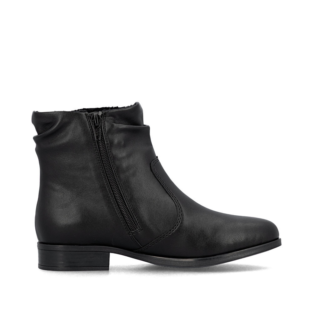 Dámske zateplené kotníkové topánky z kolekcie značky Rieker na nízkom podpätku. Priestorný strih, mäkký a hrejivý materiál vás zahalí do pohodlia v mrazivých dňoch. Pre všetkých, ktorí sa chcú v topánkach cítiť pohodlne a štýlovo. Pre ľahké obutie je zapracovaný funkčný zips. Sú skvelým doplnením každého elegantného ale aj ležérneho outfitu. Pružná podošva dokonale dopĺňa dizajn, postará sa o Vaše pohodlie na každom kroku, tlmí nárazy a otrasy. Vďaka unikátnym vlastnostiam podošvy zažijete jedinečný pocit ľahkosti pri chôdzi. Ak denne trávite na nohách viac času tak značka Rieker je skutočne tou pravou voľbou pre Vás. Ide doslova o vychádzkovú obuv ktorá vydrží v plnej kvalite naozaj veľmi dlhý čas.