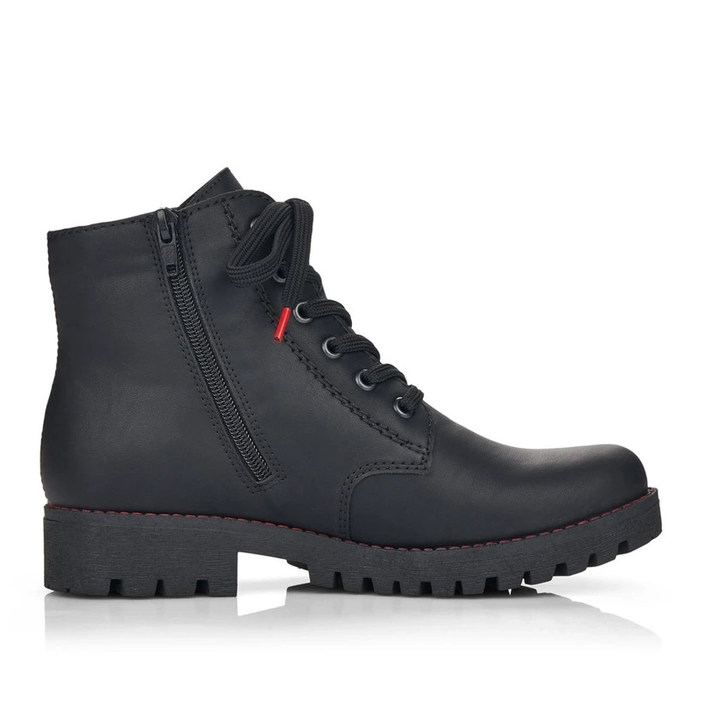 Dámske zateplené topánky z kolekcie Rieker. Sú módne a na nohe vyzerajú absolútne originálne. Priestorný strih, mäkký a hrejivý materiál vás zahalí do pohodlia v mrazivých dňoch. Pre ľahké obutie je zapracovaný funkčný zips a šnúrky na šnurovanie. Vďaka pevnému šnurovaniu tento model topánok pevne priľne k nohe po celej dĺžke. Viazanie zároveň esteticky dotvára zvršok obuvi v klasickom štýle. Pre všetkých, ktorí sa chcú v topánkach cítiť pohodlne a štýlovo. Vďaka unikátnym vlastnostiam podošvy zažijete jedinečný pocit ľahkosti pri chôdzi. Ak denne trávite na nohách viac času tak značka Rieker je skutočne tou pravou voľbou pre Vás. Ide doslova o vychádzkovú obuv ktorá vydrží v plnej kvalite naozaj veľmi dlhý čas. Rieker TEX - funkčná vrstva, vďaka ktorej je topánka nepremokavá a napriek tomu priedušná.