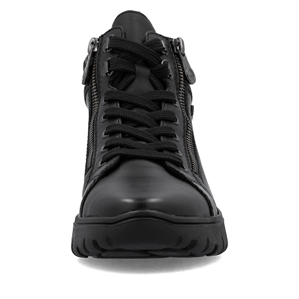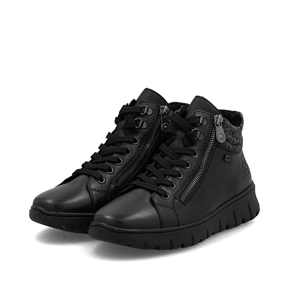 Dámske kožené topánky z kolekcie značky Rieker. Priestorný strih, mäkký a hrejivý materiál vás zahalí do pohodlia v mrazivých dňoch. Pre ľahké obutie je zapracovaný funkčný zips a šnúrky na šnurovanie. Vďaka pevnému šnurovaniu tento model topánok pevne priľne k nohe po celej dĺžke. Viazanie zároveň esteticky dotvára zvršok obuvi v klasickom štýle. Pre všetkých, ktorí sa chcú v topánkach cítiť pohodlne a štýlovo. Kožené topánky sú zaručenou klasikou, zaručia Vám vysokú kvalitu a ide o pár, ktorý vám vydrží niekoľko sezón. Pružná a robustná podošva dokonale dopĺňa športový dizajn, postará sa o Vaše pohodlie na každom kroku, tlmí nárazy a otrasy. Vďaka unikátnym vlastnostiam podošvy zažijete jedinečný pocit ľahkosti pri chôdzi. Ak denne trávite na nohách viac času tak značka Rieker je skutočne tou pravou voľbou pre Vás. Ide doslova o vychádzkovú obuv ktorá vydrží v plnej kvalite naozaj veľmi dlhý čas. Rieker TEX - funkčná vrstva, vďaka ktorej je topánka nepremokavá a napriek tomu priedušná.