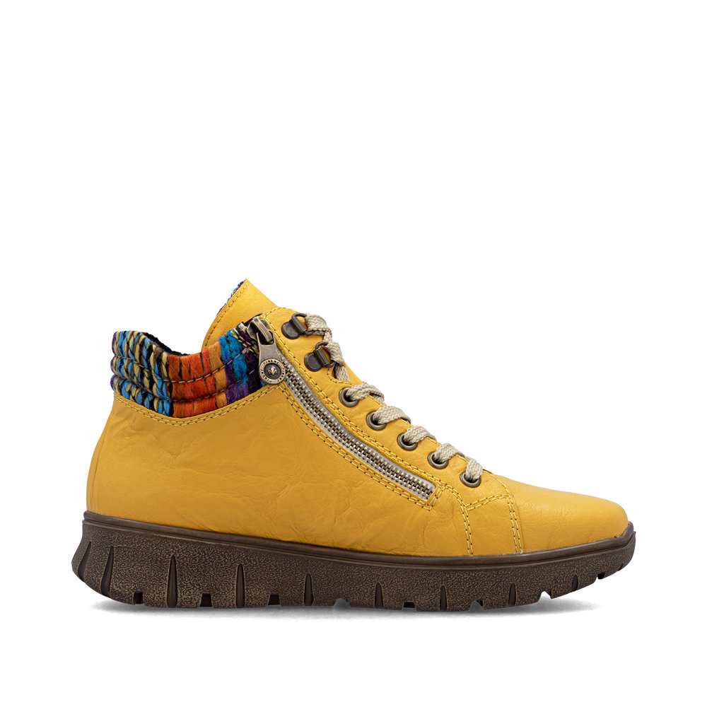 Dámske kožené topánky z kolekcie značky Rieker. Priestorný strih, mäkký a hrejivý materiál vás zahalí do pohodlia v mrazivých dňoch. Pre ľahké obutie je zapracovaný funkčný zips a šnúrky na šnurovanie. Vďaka pevnému šnurovaniu tento model topánok pevne priľne k nohe po celej dĺžke. Viazanie zároveň esteticky dotvára zvršok obuvi v klasickom štýle. Pre všetkých, ktorí sa chcú v topánkach cítiť pohodlne a štýlovo. Kožené topánky sú zaručenou klasikou, zaručia Vám vysokú kvalitu a ide o pár, ktorý vám vydrží niekoľko sezón. Pružná a robustná podošva dokonale dopĺňa športový dizajn, postará sa o Vaše pohodlie na každom kroku, tlmí nárazy a otrasy. Vďaka unikátnym vlastnostiam podošvy zažijete jedinečný pocit ľahkosti pri chôdzi. Ak denne trávite na nohách viac času tak značka Rieker je skutočne tou pravou voľbou pre Vás. Ide doslova o vychádzkovú obuv ktorá vydrží v plnej kvalite naozaj veľmi dlhý čas. Rieker TEX - funkčná vrstva, vďaka ktorej je topánka nepremokavá a napriek tomu priedušná.