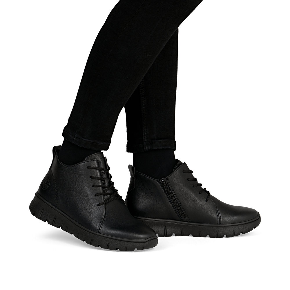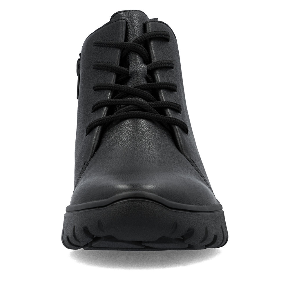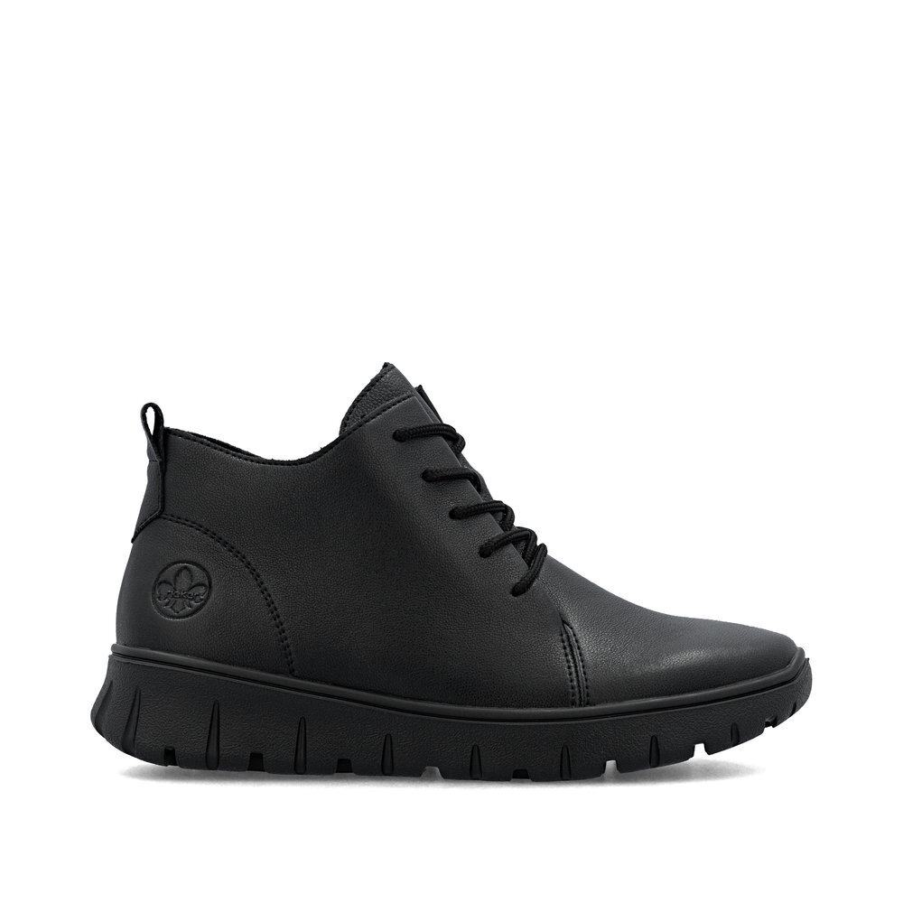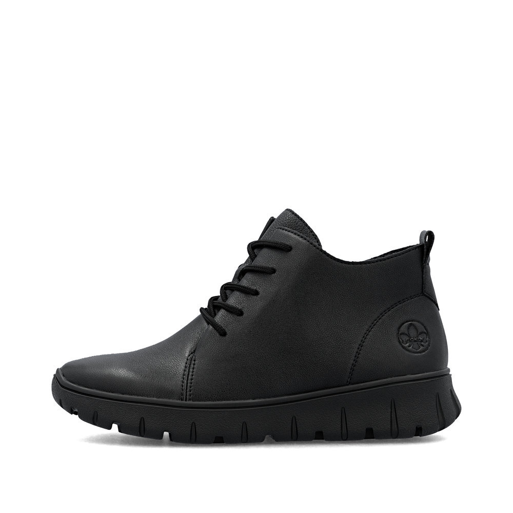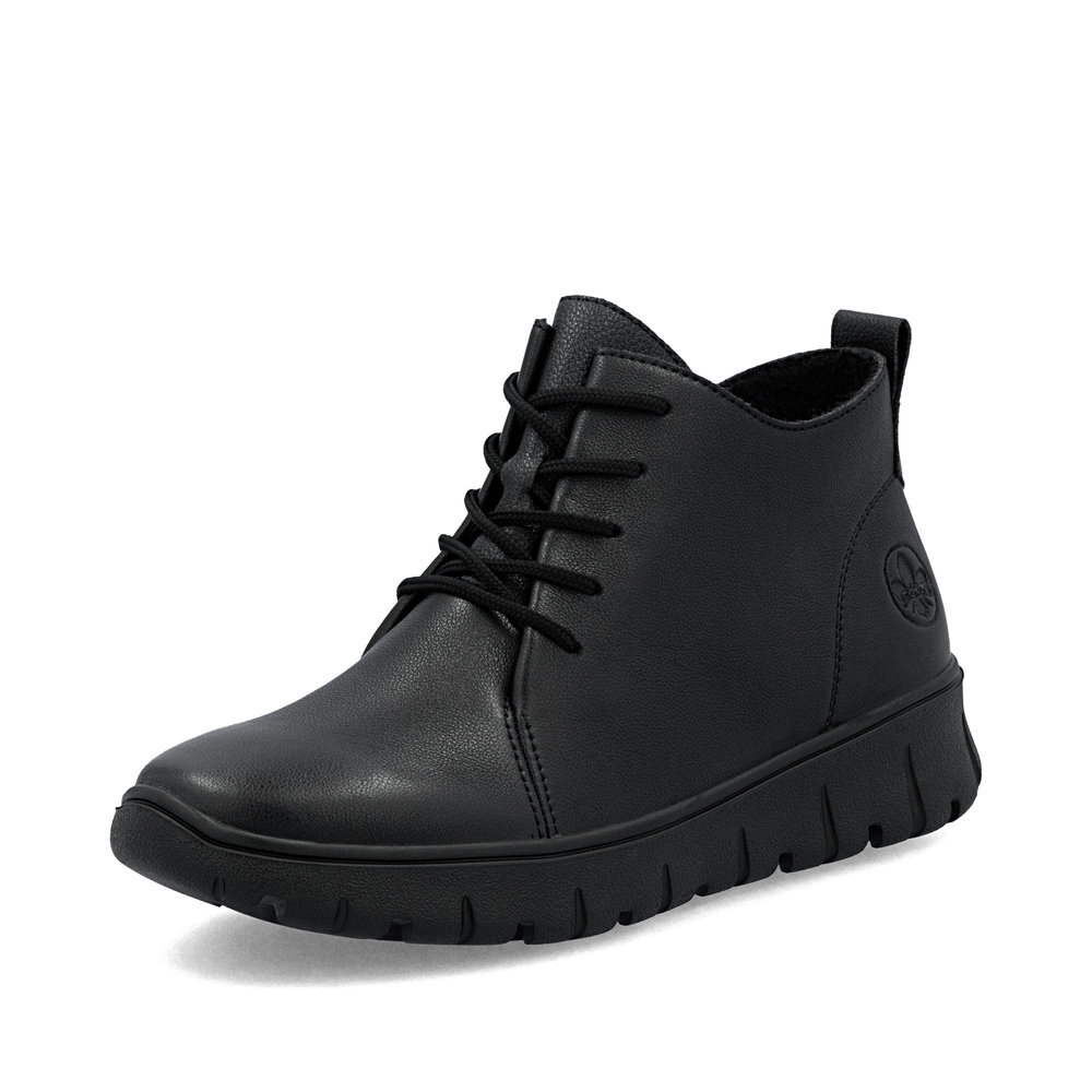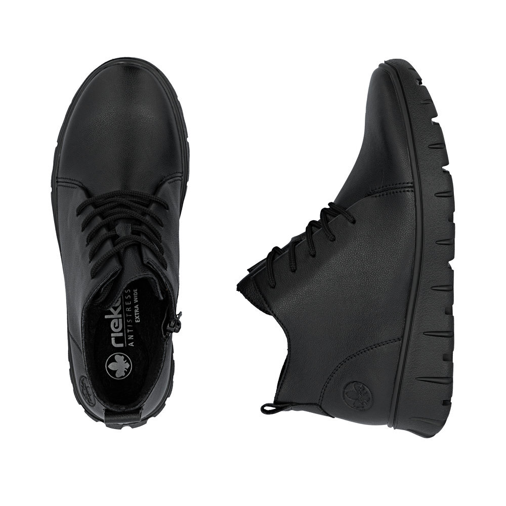 Dámske kotníkové topánky z kolekcie značky Rieker. Sú skvelým doplnením každého elegantného ale aj ležérneho outfitu. Priestorný strih, mäkký a hrejivý materiál vás zahalí do pohodlia v mrazivých dňoch. Pre všetkých, ktorí sa chcú v topánkach cítiť pohodlne a štýlovo. Vďaka pevnému šnurovaniu tento model topánok pevne priľne k nohe po celej dĺžke. Viazanie zároveň esteticky dotvára zvršok obuvi v klasickom štýle. Pružná podošva dokonale dopĺňa dizajn, postará sa o Vaše pohodlie na každom kroku, tlmí nárazy a otrasy. Vďaka unikátnym vlastnostiam podošvy zažijete jedinečný pocit ľahkosti pri chôdzi. Ak denne trávite na nohách viac času tak značka Rieker je skutočne tou pravou voľbou pre Vás. Ide doslova o vychádzkovú obuv ktorá vydrží v plnej kvalite naozaj veľmi dlhý čas.