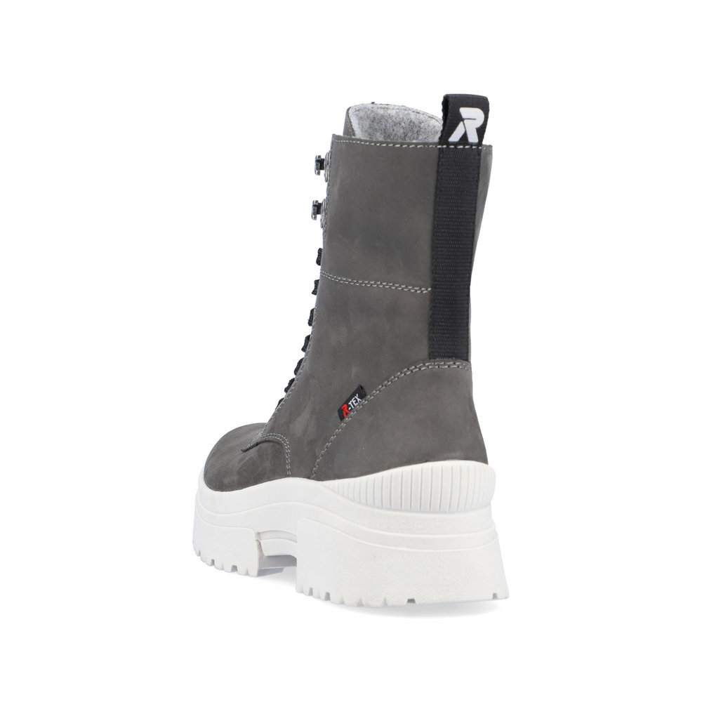 Dámske kožené topánky na nízkom podpätku z kolekcie Rieker - Revolution. Topánky sú zateplené a tak Vás príjemne zahrejú. Priestorný strih, mäkký a hrejivý materiál vás zahalí do pohodlia v mrazivých dňoch. Pre ľahké obutie je zapracovaný funkčný zips a šnúrky na šnurovanie. Vďaka pevnému šnurovaniu tento model topánok pevne priľne k nohe po celej dĺžke. Viazanie zároveň esteticky dotvára zvršok obuvi v klasickom štýle. Pre všetkých, ktorí sa chcú v topánkach cítiť pohodlne a štýlovo. Pružná a robustná podošva dokonale dopĺňa športový dizajn, postará sa o Vaše pohodlie na každom kroku, tlmí nárazy a otrasy. Vďaka unikátnym vlastnostiam podošvy zažijete jedinečný pocit ľahkosti pri chôdzi. TEX - funkčná vrstva, vďaka ktorej je topánka nepremokavá a napriek tomu priedušná.