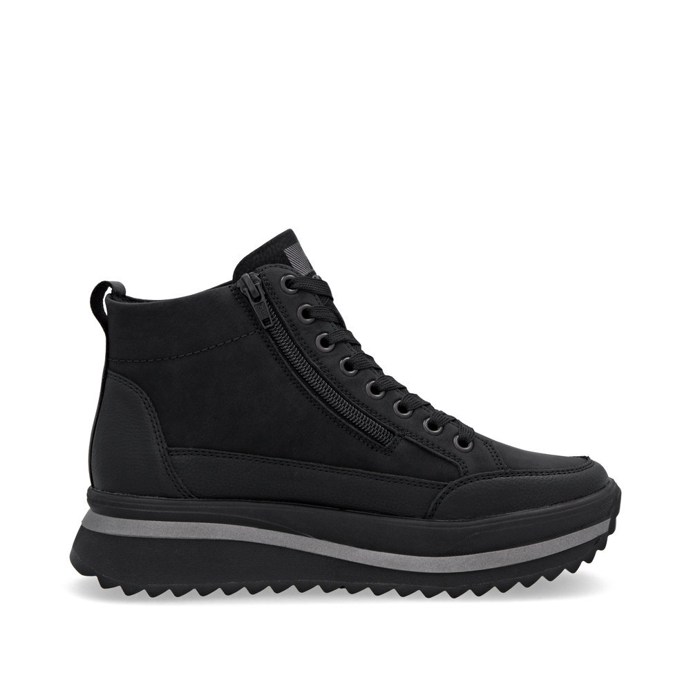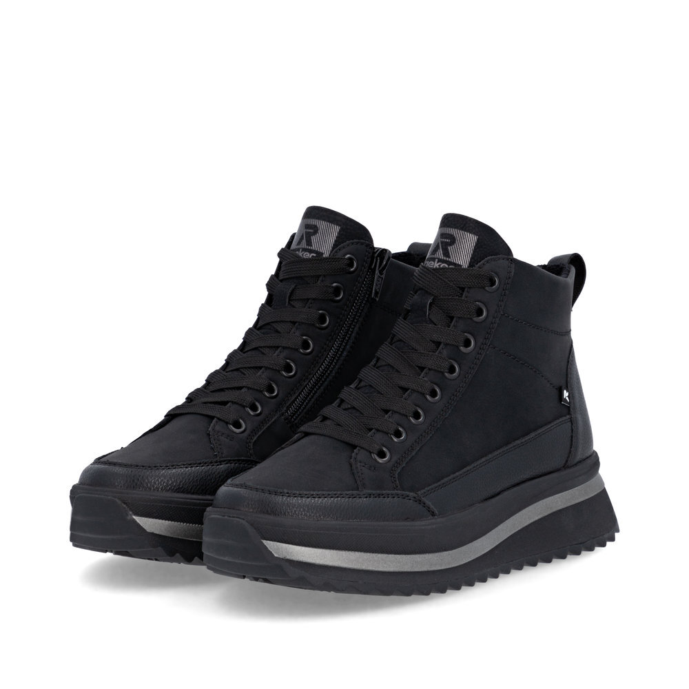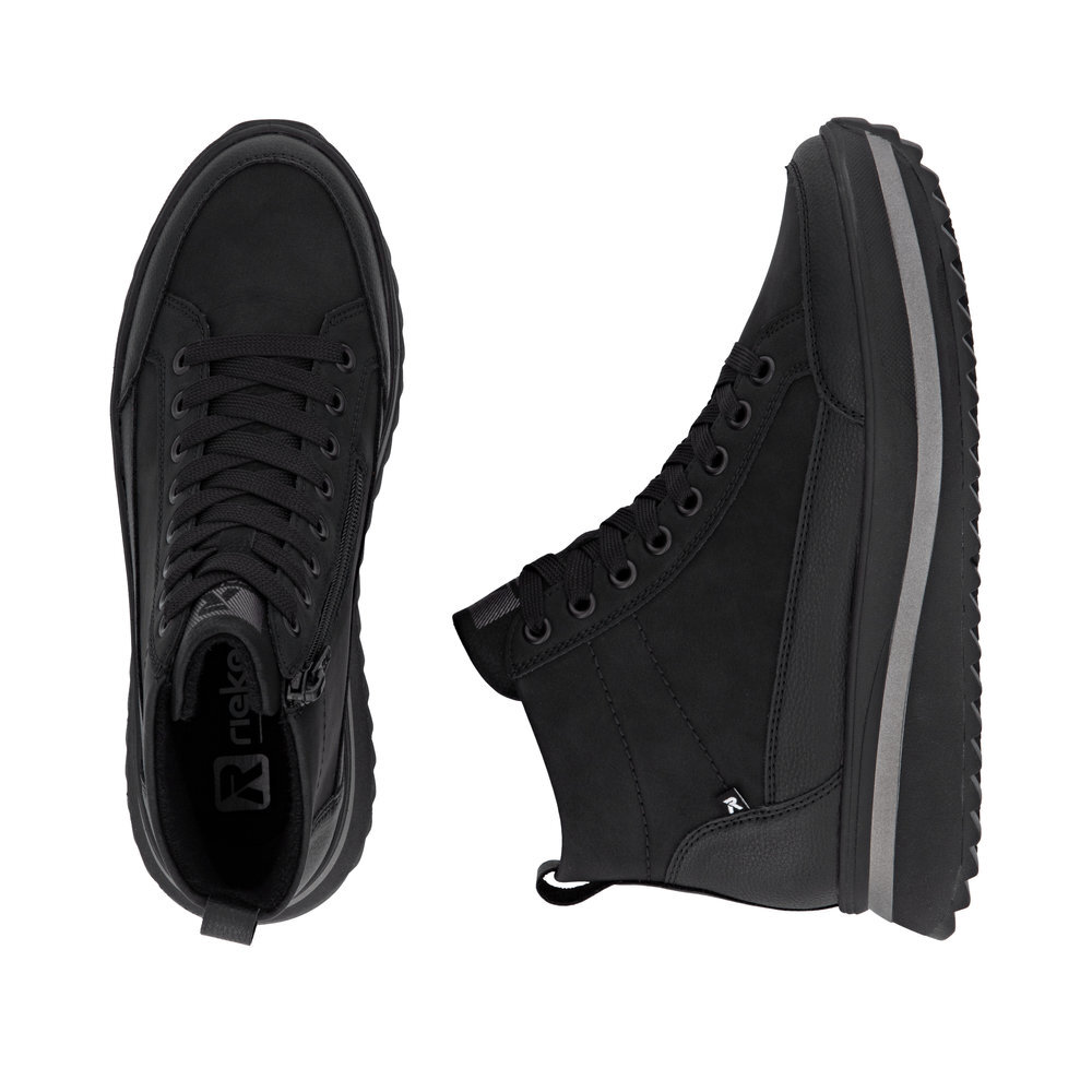 Dámske kožené sneakersy, tenisky z kolekcie značky Rieker - Revolution. Dokonalá obuv. Sú skvelým doplnením ležérneho outfitu. Kožené topánky sú zaručenou klasikou, zaručia Vám vysokú kvalitu a ide o pár, ktorý vám vydrží niekoľko sezón. Vďaka pevnému šnurovaniu tento model topánok pevne priľne k nohe po celej dĺžke. Viazanie zároveň esteticky dotvára zvršok obuvi v klasickom štýle. Pre všetkých, ktorí sa chcú v topánkach cítiť pohodlne a štýlovo. Pružná a robustná podošva dokonale dopĺňa športový dizajn, postará sa o Vaše pohodlie na každom kroku, tlmí nárazy a otrasy. Pohodlná, ľahká konštrukcia s mäkkou stielkou zaistí príjemnú chôdzu, rovnako ako aj ohybná podošva. Ak denne trávite na nohách viac času tak značka Rieker je skutočne tou pravou voľbou pre Vás. Ide doslova o vychádzkovú obuv ktorá vydrží v plnej kvalite naozaj veľmi dlhý čas.
