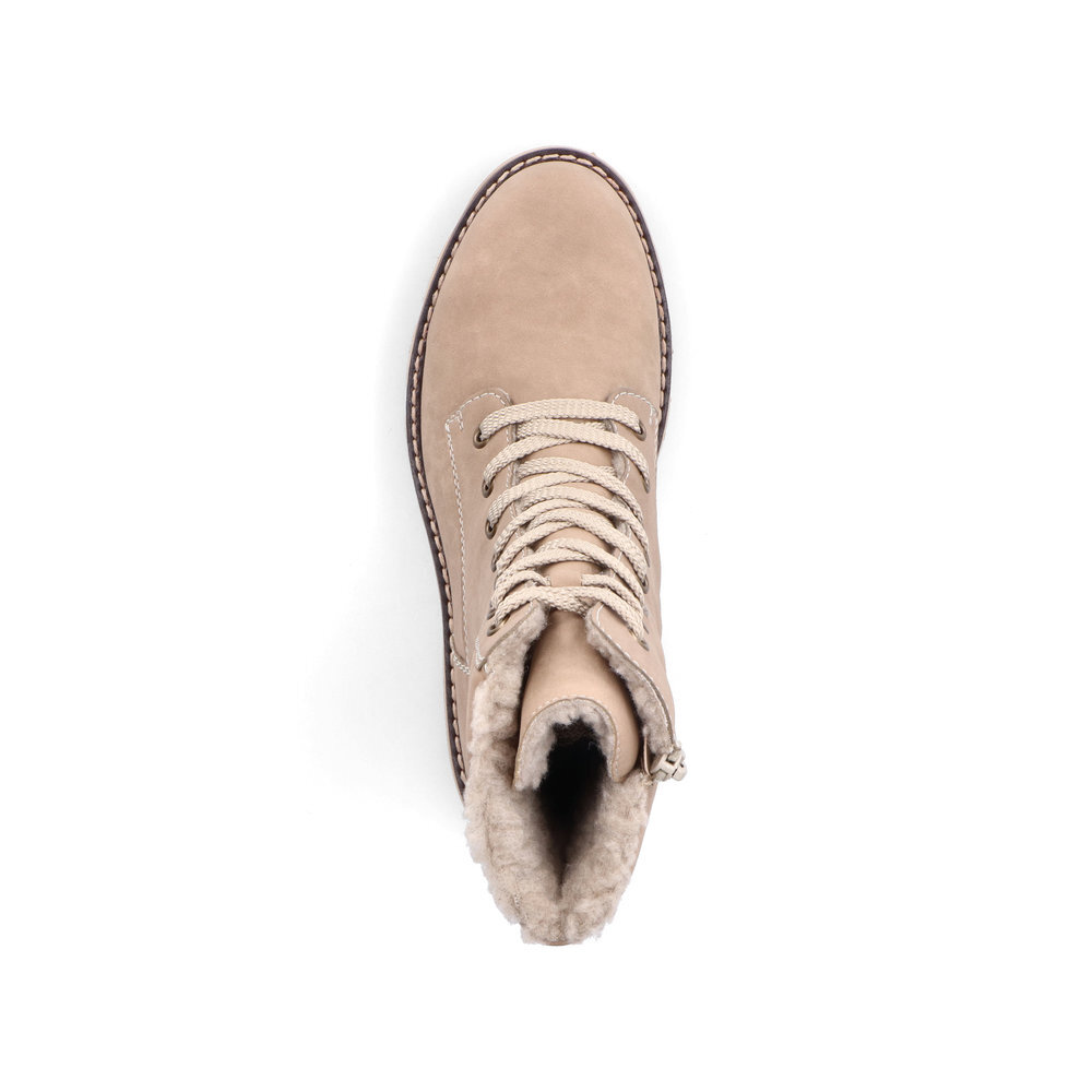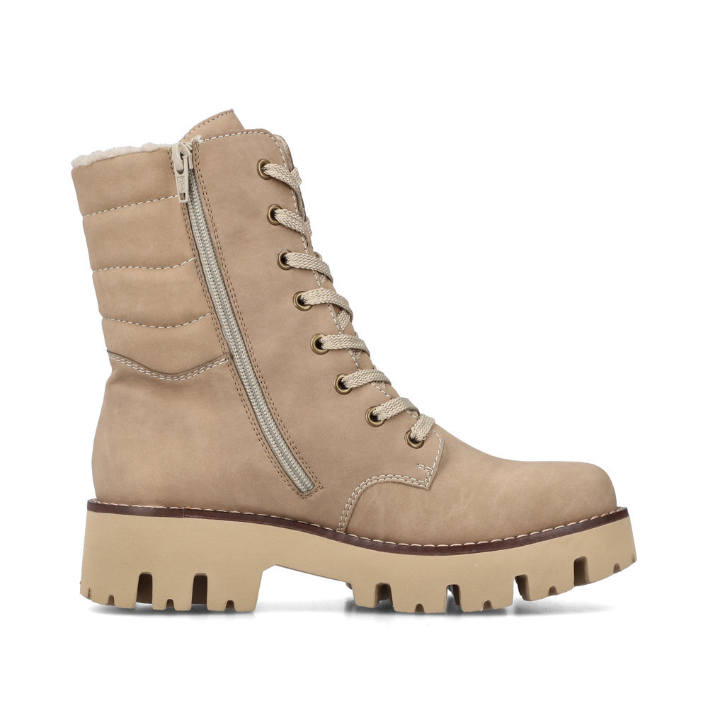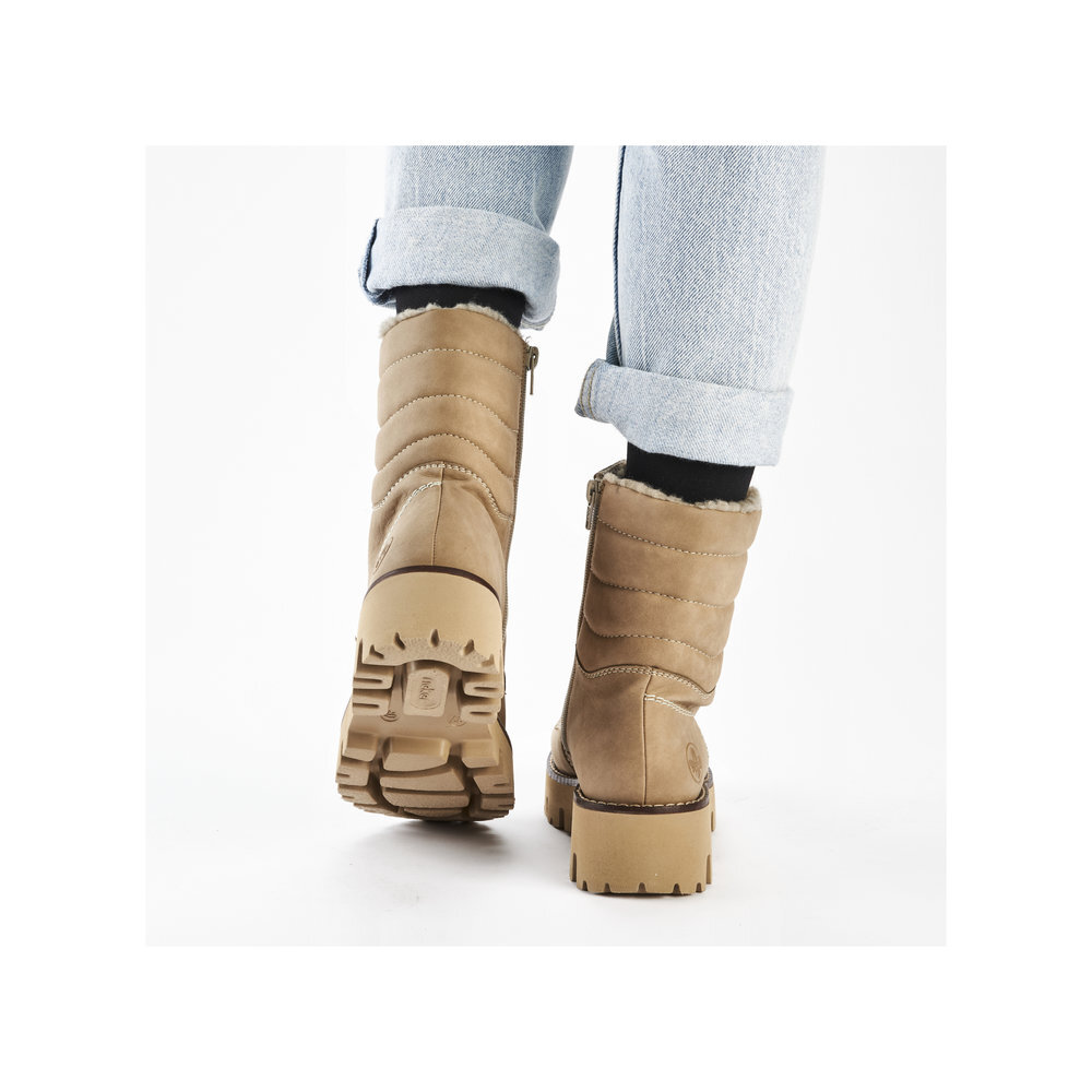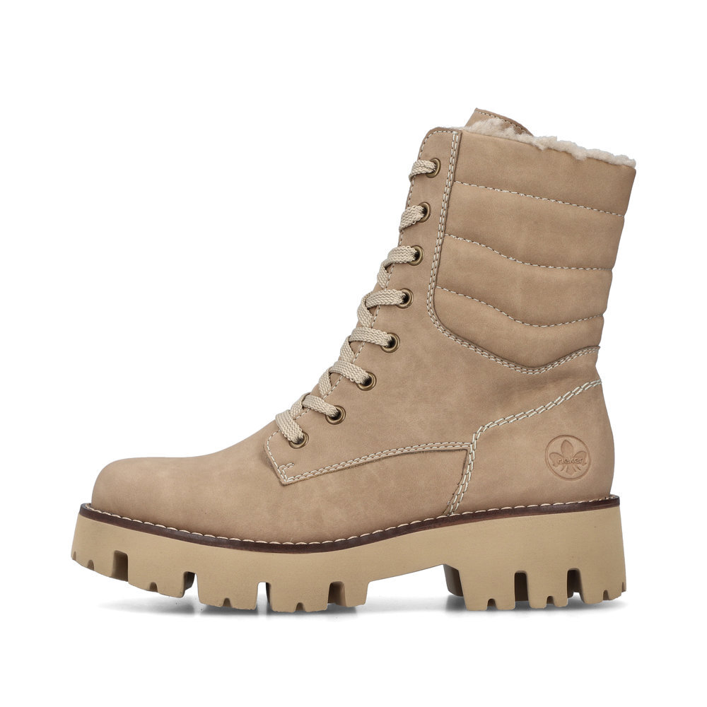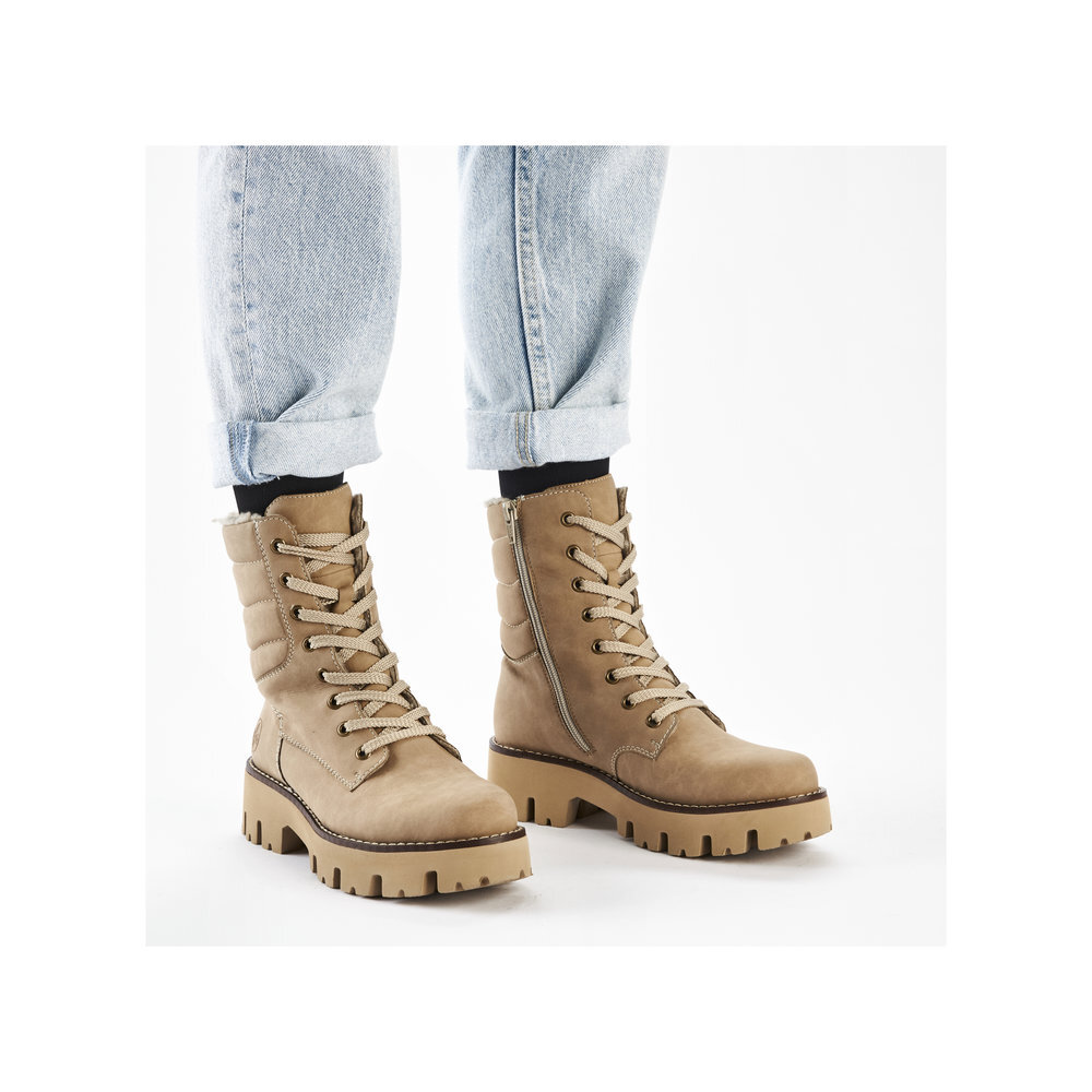 Dámske zateplené topánky, workery z kolekcie Rieker. S týmto neprehliadnuteľným kúskom skvele doplníte Váš outfit na každú príležitosť. Určite si ich zamilujete vďaka ich pohodlnosti a mäkkosti. Priestorný tvar špičky, mäkký a hrejivý materiál vás zahalí do pohodlia v mrazivých dňoch. Pre ľahké obutie je zapracovaný funkčný zips a šnúrky na šnurovanie. Vďaka pevnému šnurovaniu tento model topánok pevne priľne k nohe po celej dĺžke. Viazanie zároveň esteticky dotvára zvršok obuvi v klasickom štýle. Pre všetkých, ktorí sa chcú v topánkach cítiť pohodlne a štýlovo. Vďaka unikátnym vlastnostiam podošvy zažijete jedinečný pocit ľahkosti pri chôdzi. Ak denne trávite na nohách viac času tak značka Rieker je skutočne tou pravou voľbou pre Vás. Ide doslova o vychádzkovú obuv ktorá vydrží v plnej kvalite naozaj veľmi dlhý čas.