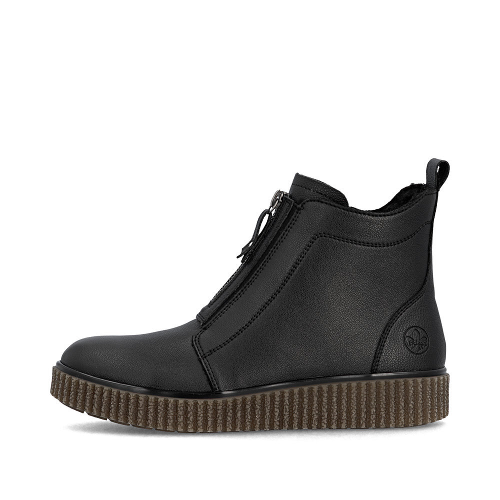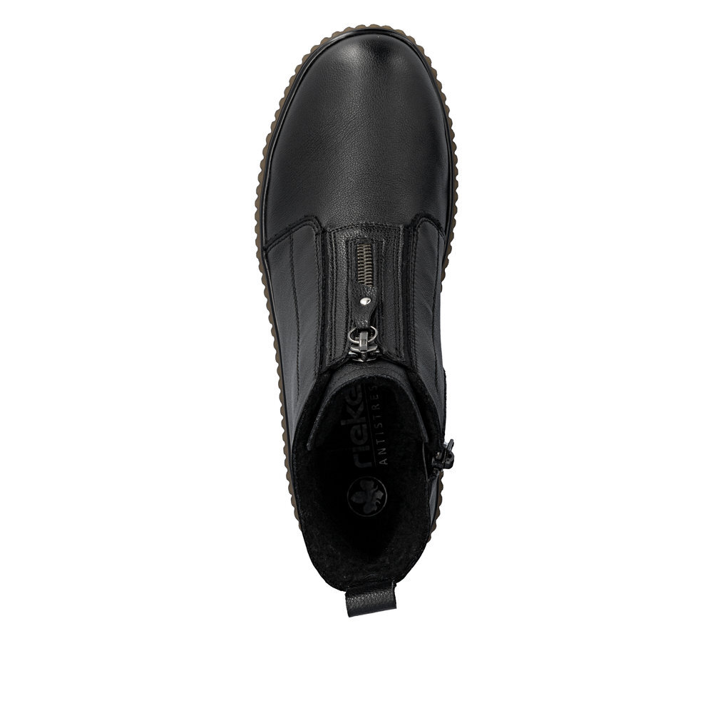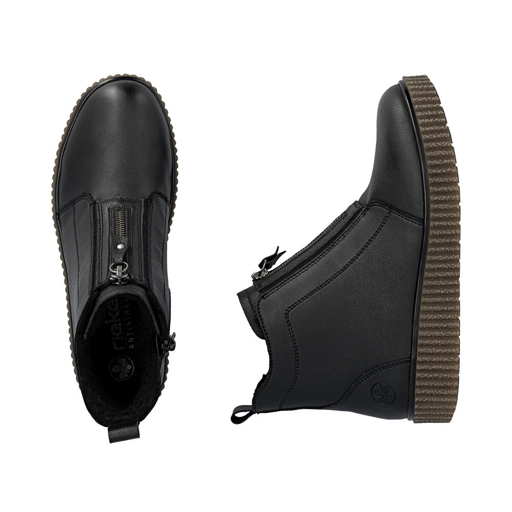 Dámske kožené kotníkové topánky z kolekcie značky Rieker. Sú skvelým doplnením každého elegantného ale aj ležérneho outfitu. Priestorný strih, mäkký a hrejivý materiál vás zahalí do pohodlia v mrazivých dňoch. Pre všetkých, ktorí sa chcú v topánkach cítiť pohodlne a štýlovo. Pre ľahké obutie je zapracovaný funkčný zips. Kožené topánky sú zaručenou klasikou, zaručia Vám vysokú kvalitu a ide o pár, ktorý vám vydrží niekoľko sezón. Pružná podošva dokonale dopĺňa dizajn, postará sa o Vaše pohodlie na každom kroku, tlmí nárazy a otrasy. Vďaka unikátnym vlastnostiam podošvy zažijete jedinečný pocit ľahkosti pri chôdzi. Ak denne trávite na nohách viac času tak značka Rieker je skutočne tou pravou voľbou pre Vás. Ide doslova o vychádzkovú obuv ktorá vydrží v plnej kvalite naozaj veľmi dlhý čas.