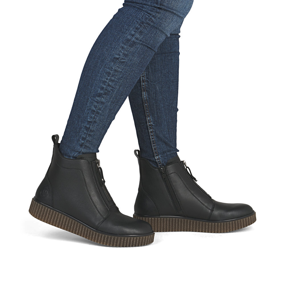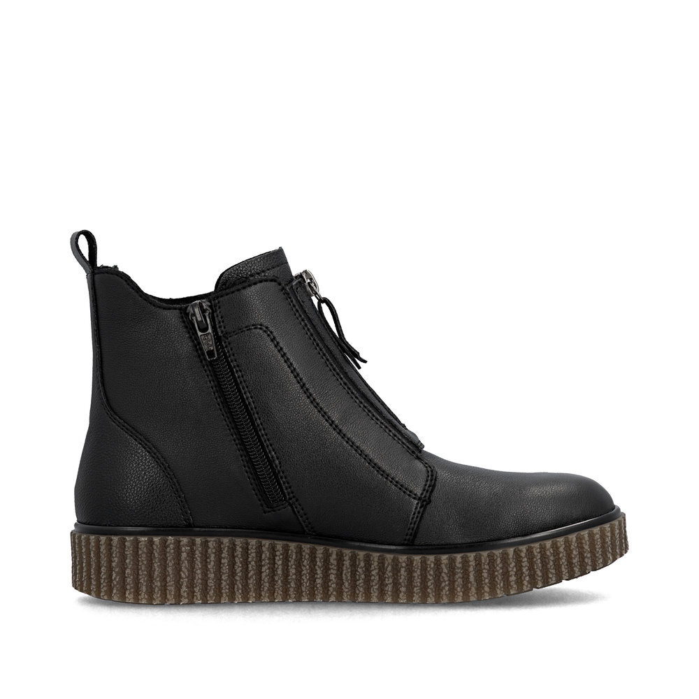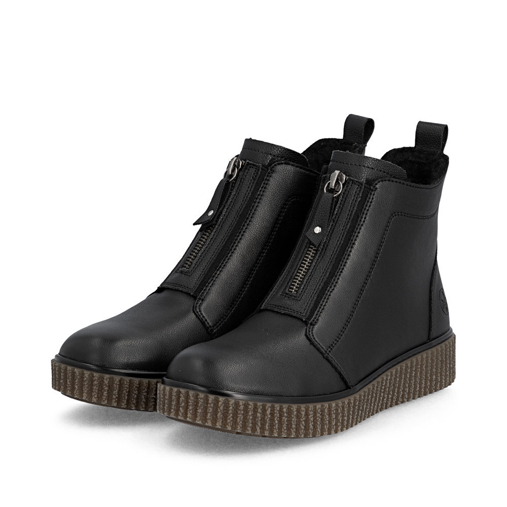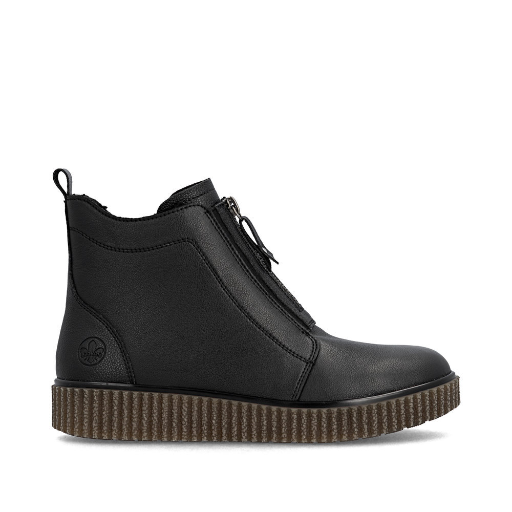 Dámske kožené kotníkové topánky z kolekcie značky Rieker. Sú skvelým doplnením každého elegantného ale aj ležérneho outfitu. Priestorný strih, mäkký a hrejivý materiál vás zahalí do pohodlia v mrazivých dňoch. Pre všetkých, ktorí sa chcú v topánkach cítiť pohodlne a štýlovo. Pre ľahké obutie je zapracovaný funkčný zips. Kožené topánky sú zaručenou klasikou, zaručia Vám vysokú kvalitu a ide o pár, ktorý vám vydrží niekoľko sezón. Pružná podošva dokonale dopĺňa dizajn, postará sa o Vaše pohodlie na každom kroku, tlmí nárazy a otrasy. Vďaka unikátnym vlastnostiam podošvy zažijete jedinečný pocit ľahkosti pri chôdzi. Ak denne trávite na nohách viac času tak značka Rieker je skutočne tou pravou voľbou pre Vás. Ide doslova o vychádzkovú obuv ktorá vydrží v plnej kvalite naozaj veľmi dlhý čas.