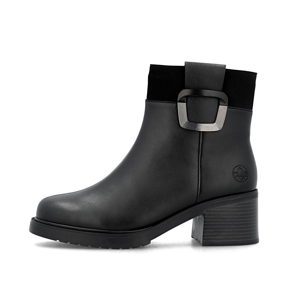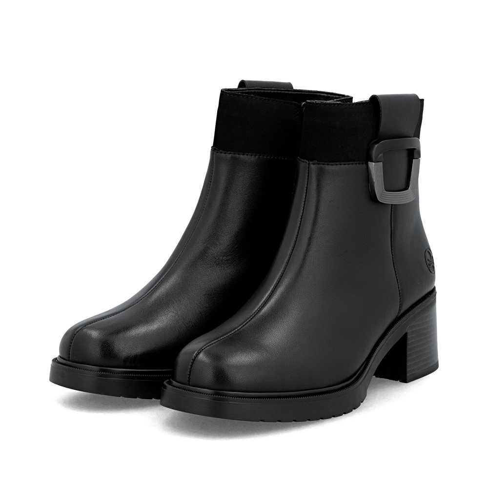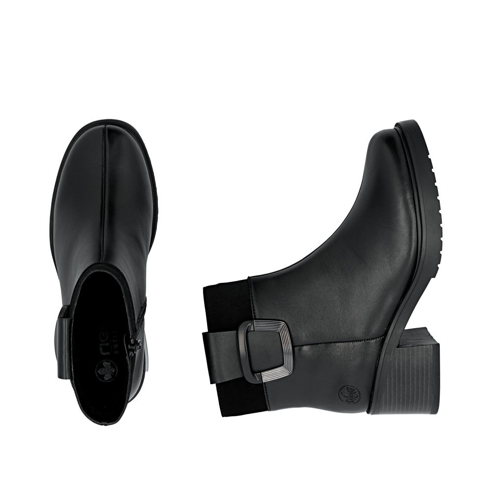 Dámske kožené kotníkové čižmičky z kolekcie značky Rieker na vysokom podpätku. Sú skvelým doplnením každého elegantného ale aj ležérneho outfitu. Priestorný strih, mäkký a hrejivý materiál vás zahalí do pohodlia v mrazivých dňoch. Pre všetkých, ktorí sa chcú v topánkach cítiť pohodlne a štýlovo. Pre ľahké obutie je zapracovaný funkčný zips. Kožené topánky sú zaručenou klasikou, zaručia Vám vysokú kvalitu a ide o pár, ktorý vám vydrží niekoľko sezón. Pružná podošva dokonale dopĺňa dizajn, postará sa o Vaše pohodlie na každom kroku, tlmí nárazy a otrasy. Vďaka unikátnym vlastnostiam podošvy zažijete jedinečný pocit ľahkosti pri chôdzi. Ak denne trávite na nohách viac času tak značka Rieker je skutočne tou pravou voľbou pre Vás. Ide doslova o vychádzkovú obuv ktorá vydrží v plnej kvalite naozaj veľmi dlhý čas.
