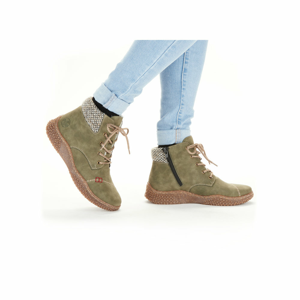 Dámske zateplené topánky z kolekcie Rieker. Určite si ich zamilujete vďaka ich pohodlnosti a mäkkosti. Priestorný tvar špičky, mäkký a hrejivý materiál vás zahalí do pohodlia v mrazivých dňoch. Pre ľahké obutie je zapracovaný funkčný zips a šnúrky na šnurovanie. Vďaka pevnému šnurovaniu tento model topánok pevne priľne k nohe po celej dĺžke. Viazanie zároveň esteticky dotvára zvršok obuvi v klasickom štýle. Pre všetkých, ktorí sa chcú v topánkach cítiť pohodlne a štýlovo. Vďaka unikátnym vlastnostiam podošvy zažijete jedinečný pocit ľahkosti pri chôdzi. Ak denne trávite na nohách viac času tak značka Rieker je skutočne tou pravou voľbou pre Vás. Ide doslova o vychádzkovú obuv ktorá vydrží v plnej kvalite naozaj veľmi dlhý čas.