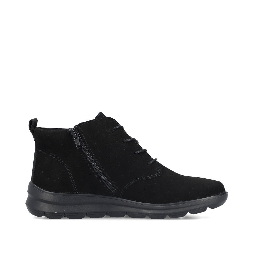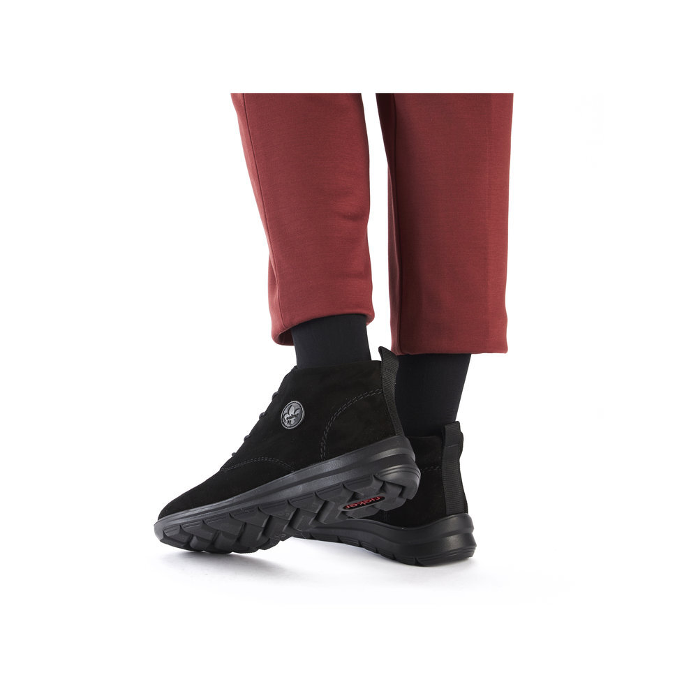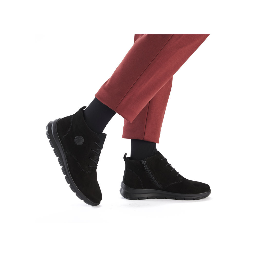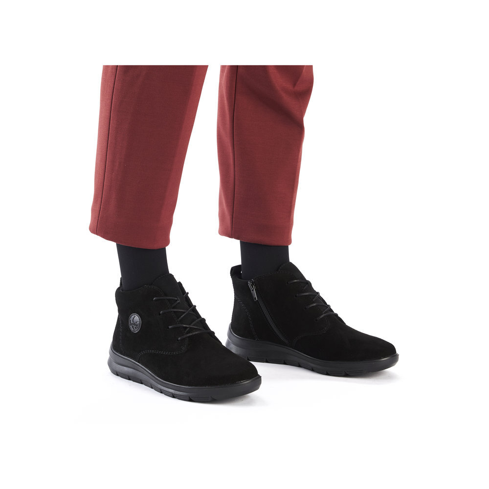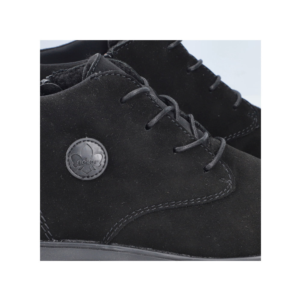Dámske zateplené topánky z kolekcie Rieker. Určite si ich zamilujete vďaka ich pohodlnosti a mäkkosti. Priestorný tvar špičky, mäkký a hrejivý materiál vás zahalí do pohodlia v mrazivých dňoch. Pre ľahké obutie je zapracovaný funkčný zips a šnúrky na šnurovanie. Vďaka pevnému šnurovaniu tento model topánok pevne priľne k nohe po celej dĺžke. Viazanie zároveň esteticky dotvára zvršok obuvi v klasickom štýle. Pre všetkých, ktorí sa chcú v topánkach cítiť pohodlne a štýlovo. Pružná a robustná podošva dokonale dopĺňa športový dizajn, postará sa o Vaše pohodlie na každom kroku, tlmí nárazy a otrasy. Vďaka unikátnym vlastnostiam podošvy zažijete jedinečný pocit ľahkosti pri chôdzi. Ak denne trávite na nohách viac času tak značka Rieker je skutočne tou pravou voľbou pre Vás.