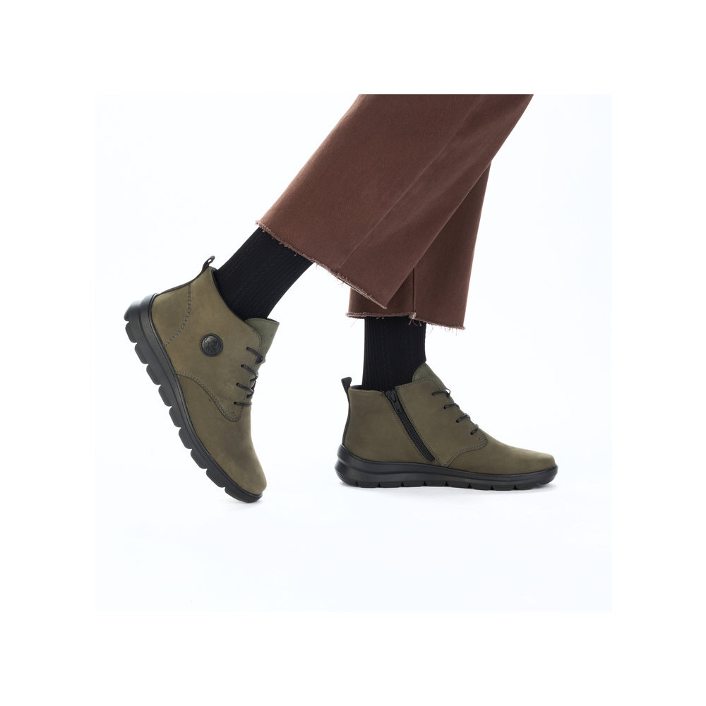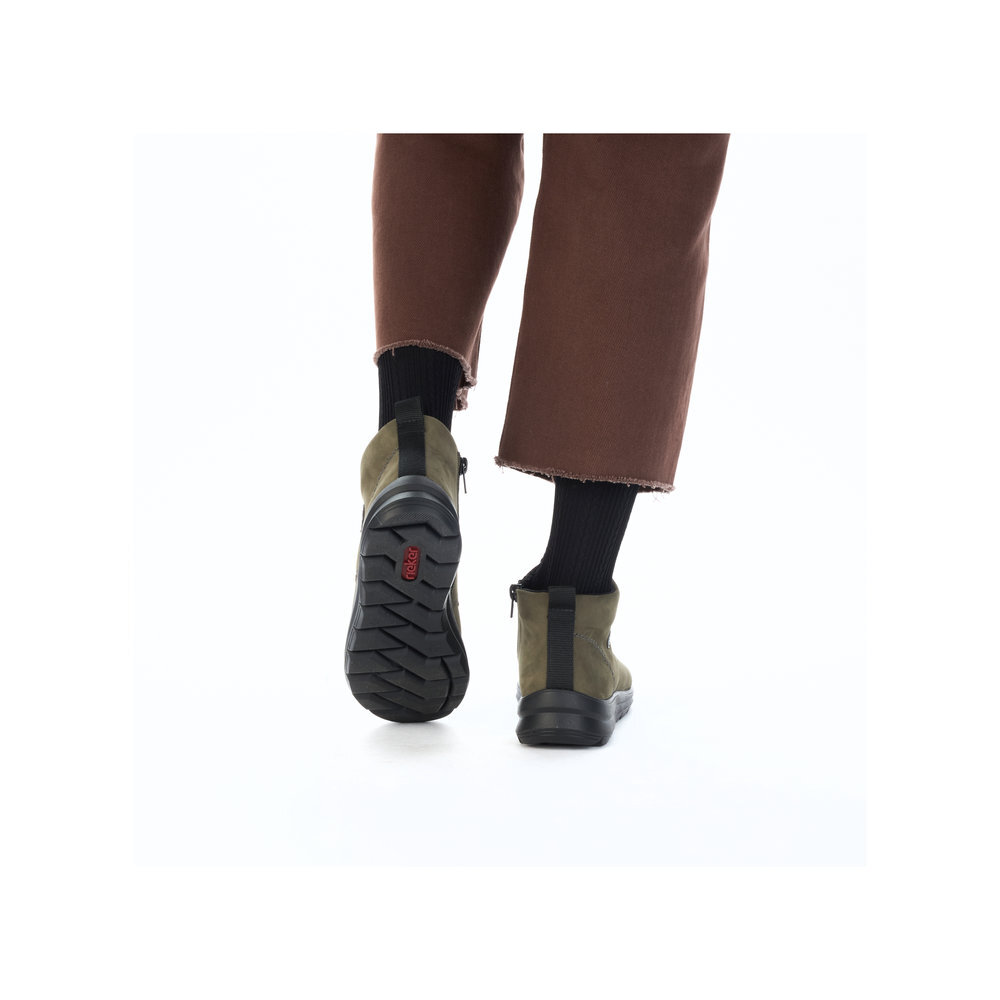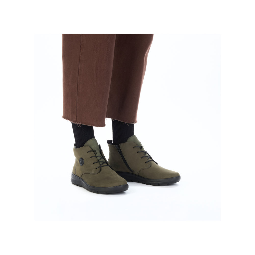 Dámske zateplené topánky z kolekcie Rieker. Určite si ich zamilujete vďaka ich pohodlnosti a mäkkosti. Priestorný tvar špičky, mäkký a hrejivý materiál vás zahalí do pohodlia v mrazivých dňoch. Pre ľahké obutie je zapracovaný funkčný zips a šnúrky na šnurovanie. Vďaka pevnému šnurovaniu tento model topánok pevne priľne k nohe po celej dĺžke. Viazanie zároveň esteticky dotvára zvršok obuvi v klasickom štýle. Pre všetkých, ktorí sa chcú v topánkach cítiť pohodlne a štýlovo. Pružná a robustná podošva dokonale dopĺňa športový dizajn, postará sa o Vaše pohodlie na každom kroku, tlmí nárazy a otrasy. Vďaka unikátnym vlastnostiam podošvy zažijete jedinečný pocit ľahkosti pri chôdzi. Ak denne trávite na nohách viac času tak značka Rieker je skutočne tou pravou voľbou pre Vás.
