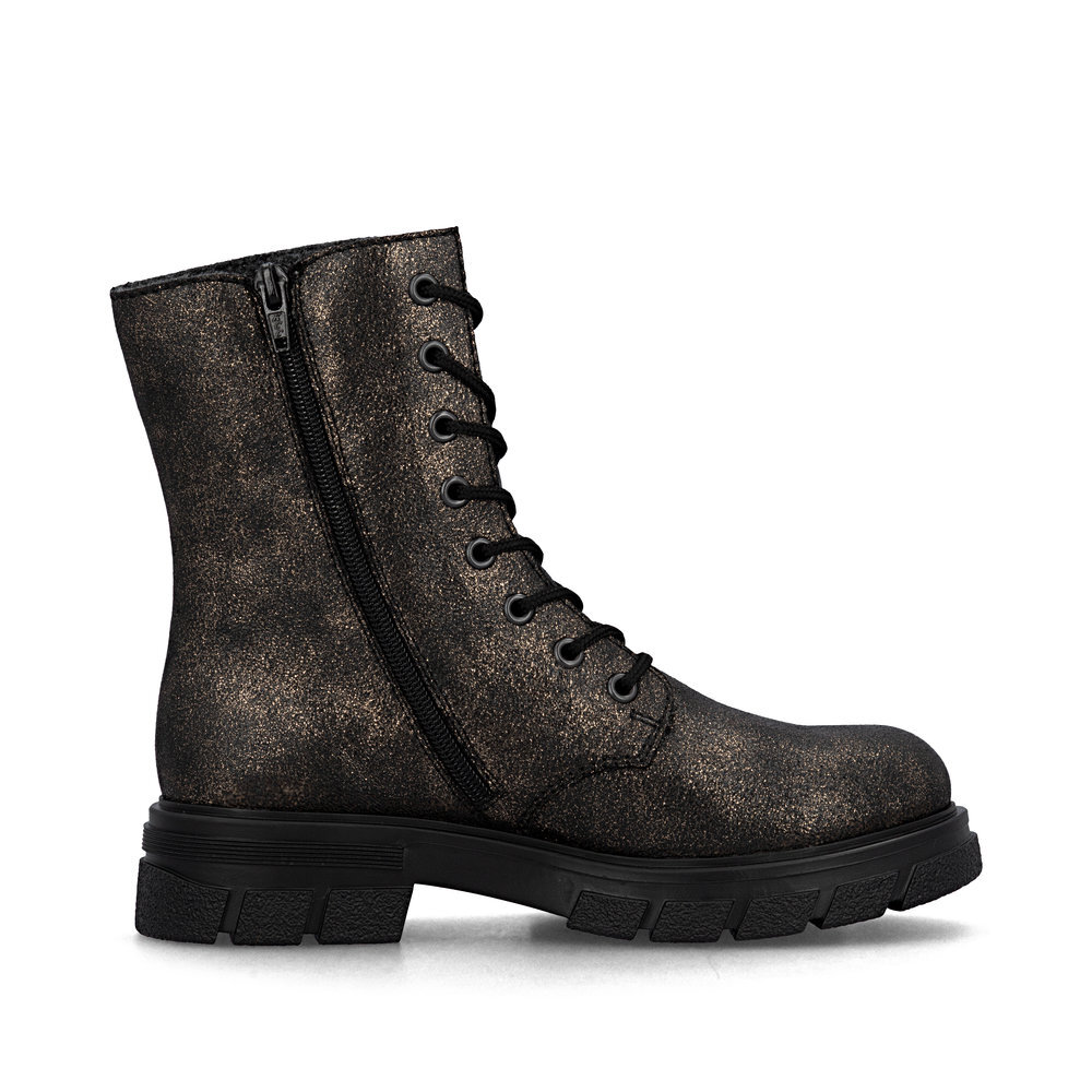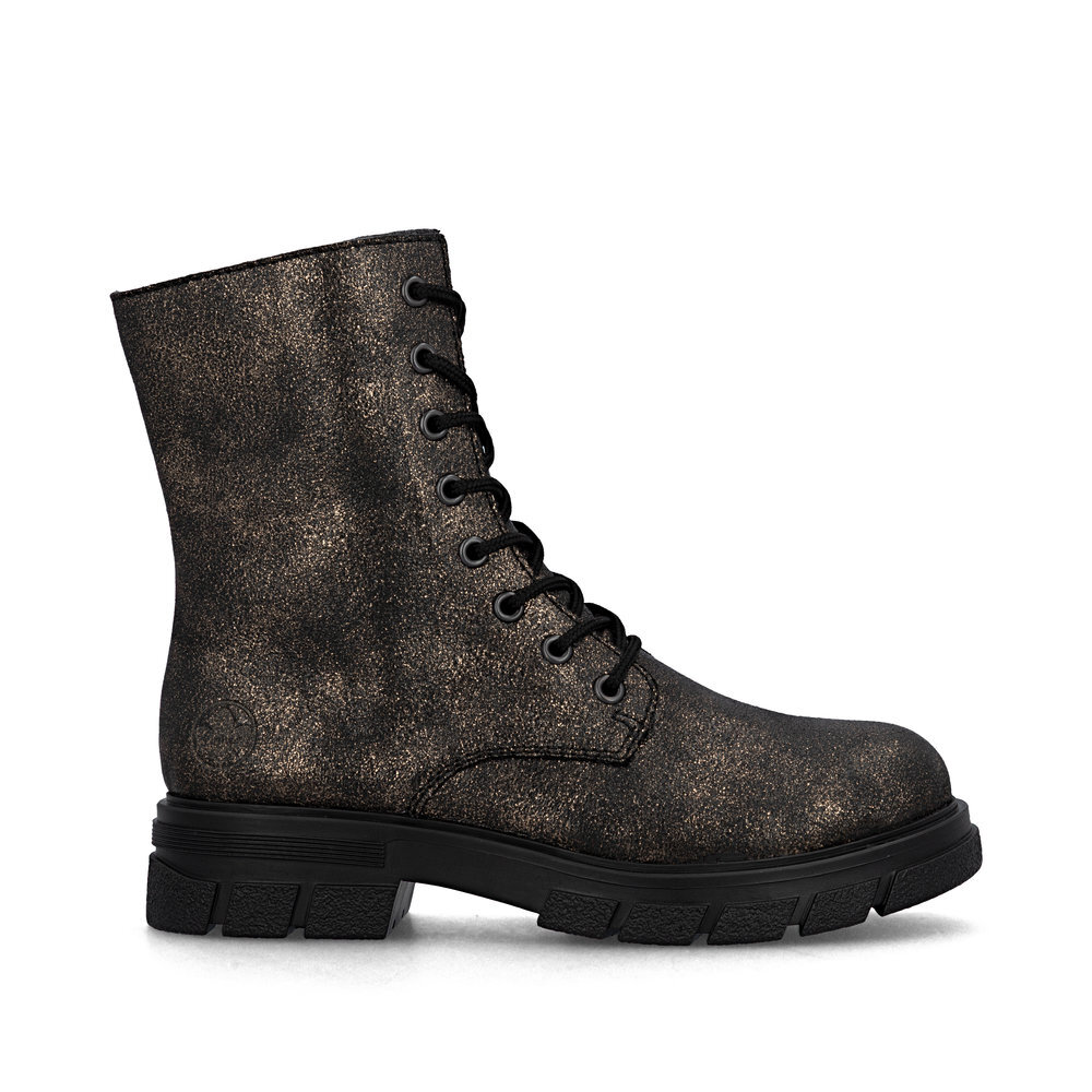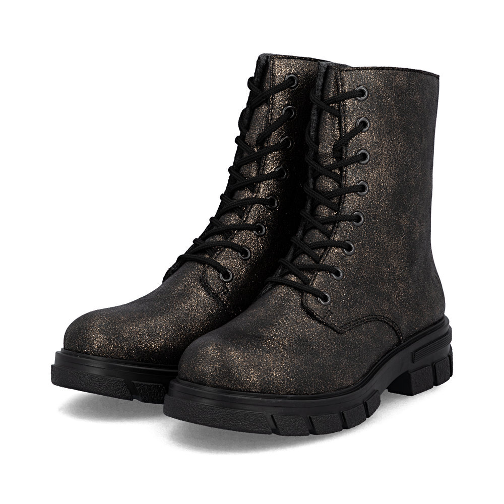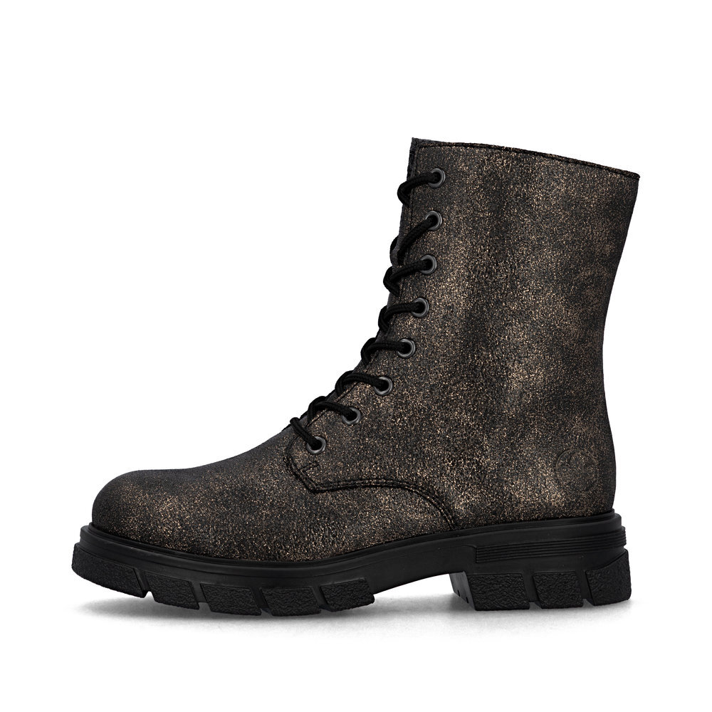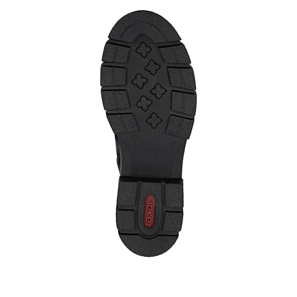Dámske zateplené topánky, workery z kolekcie Rieker. S týmto neprehliadnuteľným kúskom skvele doplníte Váš outfit na každú príležitosť. Určite si ich zamilujete vďaka ich pohodlnosti a mäkkosti. Priestorný tvar špičky, mäkký a hrejivý materiál vás zahalí do pohodlia v mrazivých dňoch. Pre ľahké obutie je zapracovaný funkčný zips a šnúrky na šnurovanie. Vďaka pevnému šnurovaniu tento model topánok pevne priľne k nohe po celej dĺžke. Viazanie zároveň esteticky dotvára zvršok obuvi v klasickom štýle. Pre všetkých, ktorí sa chcú v topánkach cítiť pohodlne a štýlovo. Vďaka unikátnym vlastnostiam podošvy zažijete jedinečný pocit ľahkosti pri chôdzi. Ak denne trávite na nohách viac času tak značka Rieker je skutočne tou pravou voľbou pre Vás. Ide doslova o vychádzkovú obuv ktorá vydrží v plnej kvalite naozaj veľmi dlhý čas.