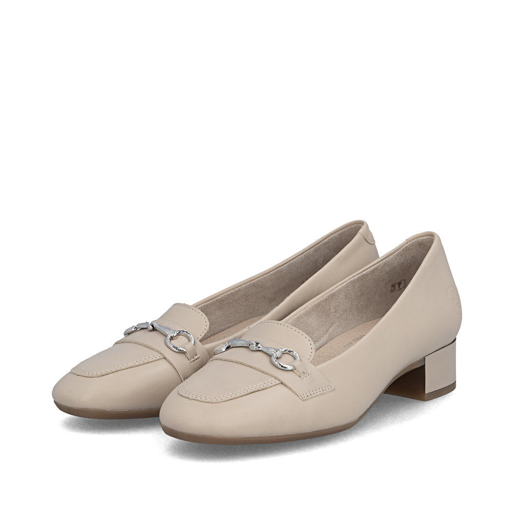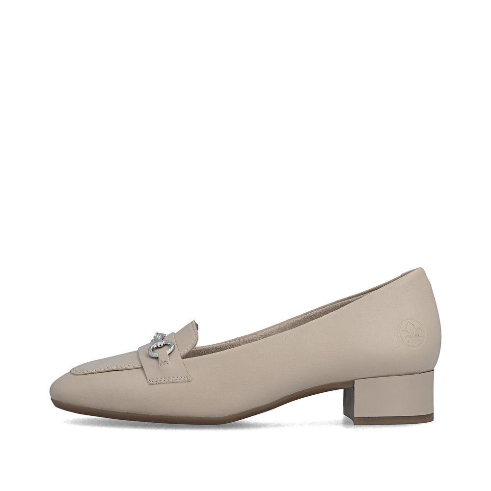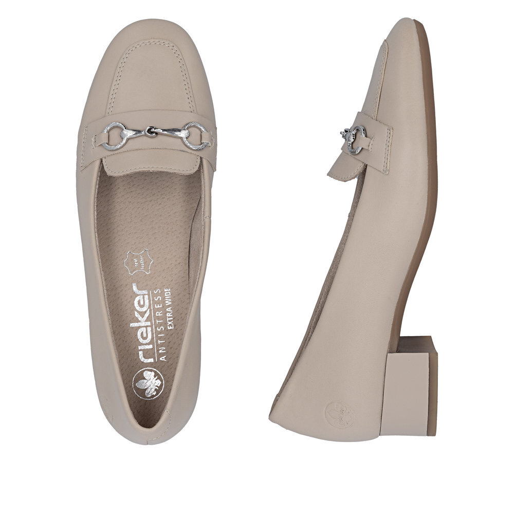 Ležérny strih dámskych kožených lodičiek z kolekcie Rieker na nízkom podpätku. Priestorný strih. Optimálna, pohodlná výška podpätku. Kožené topánky sú zaručenou klasikou, zaručia Vám vysokú kvalitu a ide o pár, ktorý vám vydrží niekoľko sezón. Podošva dokonale dopĺňa dizajn, postará sa o Vaše pohodlie na každom kroku, tlmí nárazy a otrasy. Z kolekcie Antistress. Protistresový systém znamená pohodlie pri každom kroku vďaka ľahkej, flexibilnej podrážke. Ak denne trávite na nohách viac času tak značka Rieker je skutočne tou pravou voľbou pre Vás. Ide doslova o vychádzkovú obuv ktorá vydrží v plnej kvalite naozaj veľmi dlhý čas. Po vyčerpávajúcom a náročnom dni sa budú Vaše nohy cítiť svieže a oddýchnuté a to najmä vďaka ľahkým materiálom a konštrukcii.