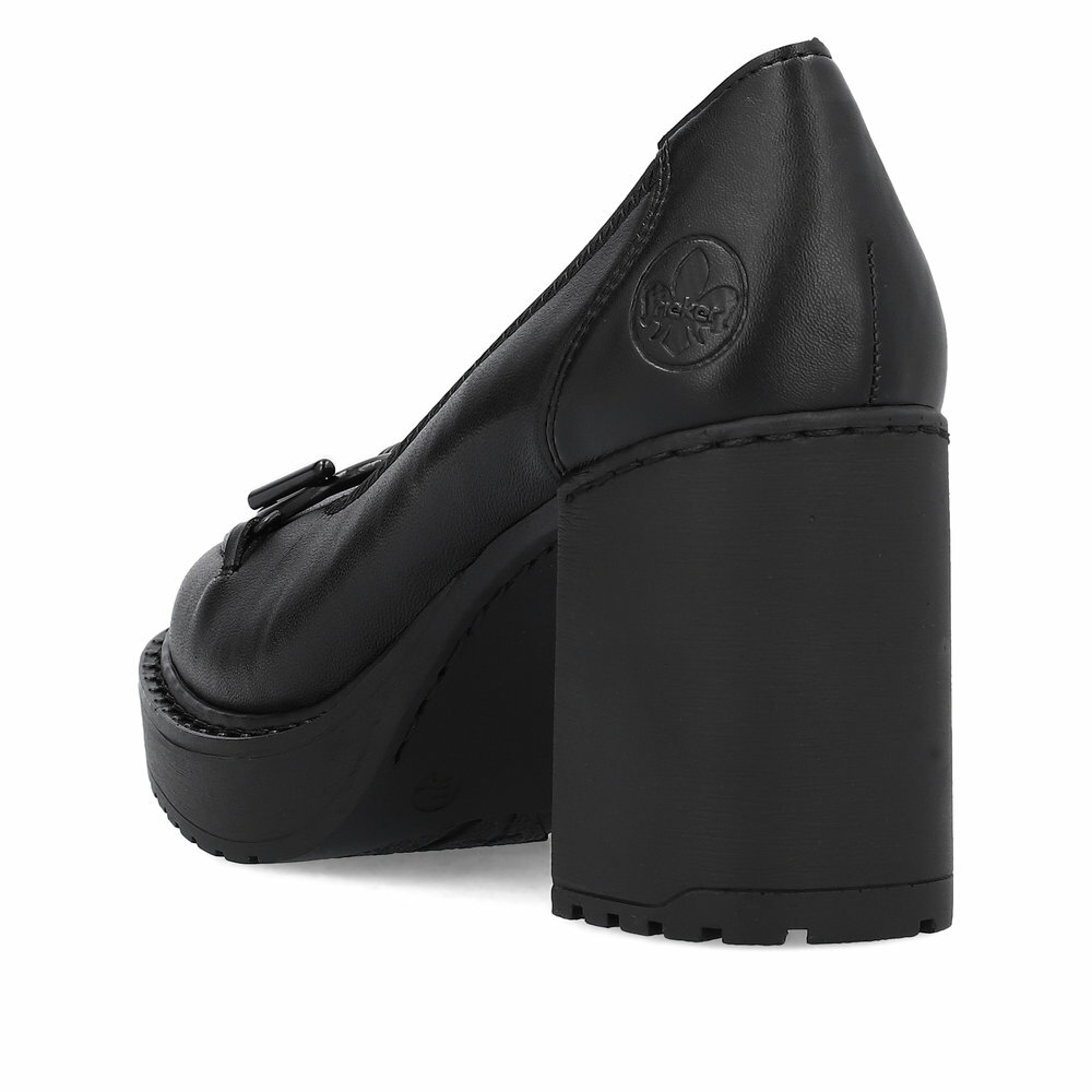 Dámske kožené lodičky z kolekcie značky Rieker na vysokom podpätku. Priestorný strih. Optimálna, pohodlná výška podpätku. Podošva dokonale dopĺňa dizajn, postará sa o Vaše pohodlie na každom kroku, tlmí nárazy a otrasy. Z kolekcie Antistress. Protistresový systém znamená pohodlie pri každom kroku vďaka ľahkej, flexibilnej podrážke. Ak denne trávite na nohách viac času tak značka Rieker je skutočne tou pravou voľbou pre Vás. Ide doslova o vychádzkovú obuv ktorá vydrží v plnej kvalite naozaj veľmi dlhý čas. Po vyčerpávajúcom a náročnom dni sa budú Vaše nohy cítiť svieže a oddýchnuté a to najmä vďaka ľahkým materiálom a konštrukcii.