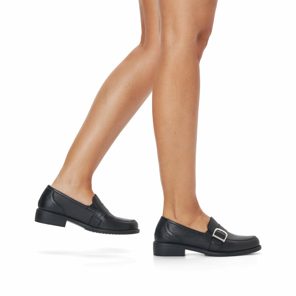 Dámske kožené mokasíny z kolekcie značky Remonte - Rieker. Pre všetkých, ktorí sa chcú v topánkach cítiť pohodlne a štýlovo. Celokožené vnútro, mäkká stielka, ktorá podporí príjemný došľap, nadväzuje na zabrúsenú pätnú časť. Pružná podošva dokonale dopĺňa športový dizajn, tlmí nárazy a otrasy. Vďaka unikátnym vlastnostiam podošvy zažijete jedinečný pocit ľahkosti pri chôdzi. Opatrené vsadenými funkčnými gumičkami pre ľahšie obúvanie. Obuv REMONTE - jedná sa o vyššiu radu značky RIEKER, táto obuv sa vyznačuje vynikajúcou kombináciou vrchných materiálov. Topánky z rady REMONTE Vám zabezpečia maximálny komfort pri celodennom nosení.