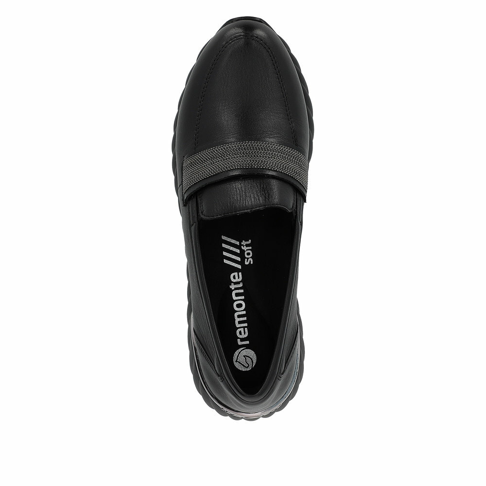 Dámske kožené mokasíny z kolekcie značky Remonte - Rieker. Kožené topánky sú zaručenou klasikou, zaručia Vám vysokú kvalitu a ide o pár, ktorý vám vydrží niekoľko sezón. Určite si ich zamilujete vďaka ich pohodlnosti a mäkkosti. Pre všetkých, ktorí sa chcú v topánkach cítiť pohodlne a štýlovo. Celokožené vnútro, zdobené, mäkká stielka, ktorá podporí príjemný došľap. Opatrené vsadenými funkčnými gumičkami pre ľahšie obúvanie. Pružná podošva dokonale dopĺňa dizajn, tlmí nárazy a otrasy. Vďaka unikátnym vlastnostiam podošvy zažijete jedinečný pocit ľahkosti pri chôdzi. Obuv REMONTE - jedná sa o vyššiu radu značky RIEKER, táto obuv sa vyznačuje vynikajúcou kombináciou vrchných materiálov. Topánky z rady REMONTE Vám zabezpečia maximálny komfort pri celodennom nosení. Po vyčerpávajúcom a náročnom dni sa budú Vaše nohy cítiť svieže a oddýchnuté a to najmä vďaka ľahkým materiálom a konštrukcii.