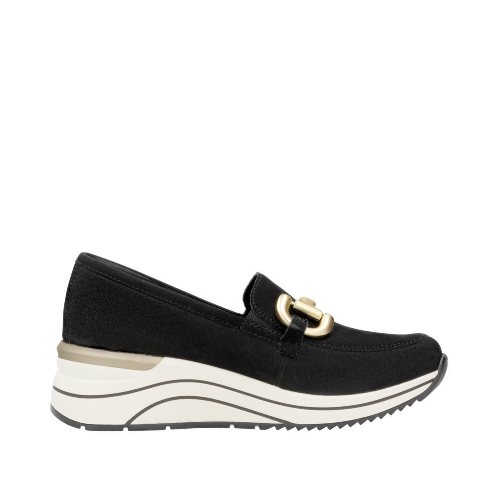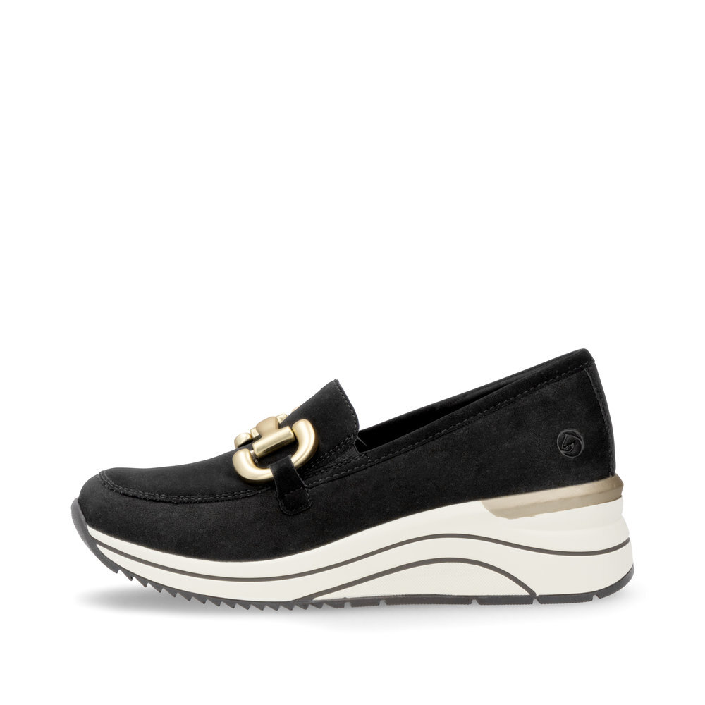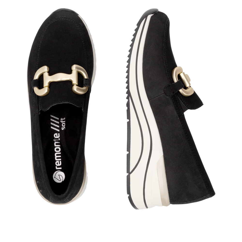 Dámske kožené mokasíny z kolekcie značky Remonte - Rieker na platforme. Obľúbený strih, sú skvelým doplnením každého elegantného ale aj ležérneho outfitu. Jednoduché obúvanie a prispôsobenie sa podľa požiadaviek zaistia všité pružné vsadky v oblasti priehlavku. Kožené topánky sú zaručenou klasikou, zaručia Vám vysokú kvalitu a ide o pár, ktorý vám vydrží niekoľko sezón. Ľahko kombinovateľná farba zvršku je dekorovaná nádhernou aplikáciou cez priehlavok, ktorá dodáva obuvi osobitosť a pôvab. Mäkká stielka, ktorá podporí príjemný došľap. Podošva dokonale dopĺňa dizajn, tlmí nárazy a otrasy. Vďaka unikátnym vlastnostiam podošvy zažijete jedinečný pocit ľahkosti pri chôdzi. Topánky z rady REMONTE Vám zabezpečia maximálny komfort pri celodennom nosení. Po vyčerpávajúcom a náročnom dni sa budú Vaše nohy cítiť svieže a oddýchnuté a to najmä vďaka ľahkým materiálom a konštrukcii.