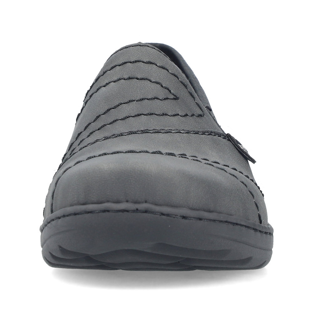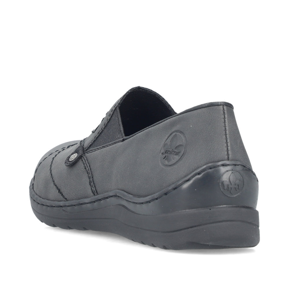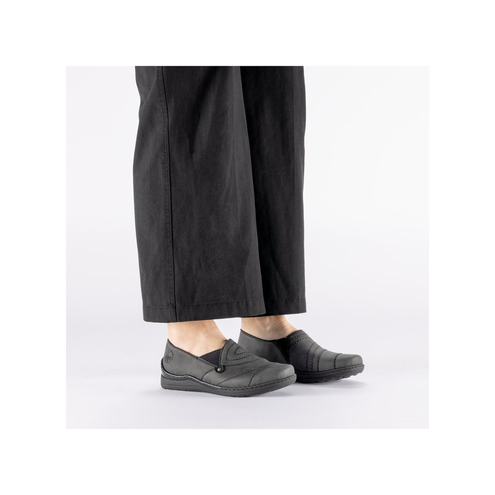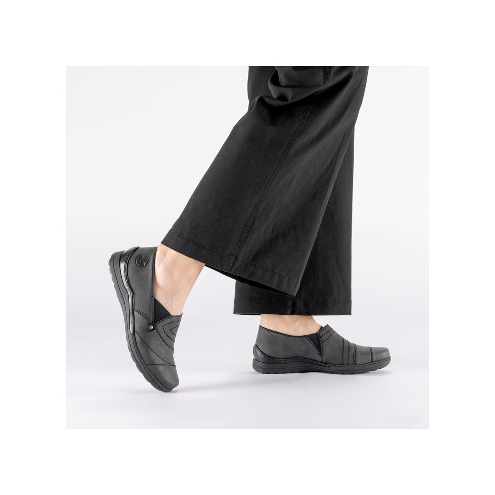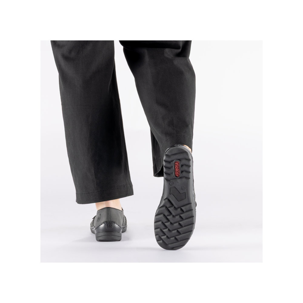 Dámske mokasíny z kolekcie značky Rieker. Jednoduché obúvanie a prispôsobenie sa podľa požiadaviek zaistia všité pružné vsadky v oblasti priehlavku. Mäkká stielka. Sú skvelým doplnením každého elegantného ale aj ležérneho outfitu. Podošva dokonale dopĺňa dizajn, postará sa o Vaše pohodlie na každom kroku, tlmí nárazy a otrasy. Vďaka jej vlastnostiam je táto obuv vyhľadávaná všetkými, ktorí musia počas dňa dlho stáť a chodiť. Ak denne trávite na nohách viac času tak značka Rieker je skutočne tou pravou voľbou pre Vás. Ide doslova o vychádzkovú obuv ktorá vydrží v plnej kvalite naozaj veľmi dlhý čas. Po vyčerpávajúcom a náročnom dni sa budú Vaše nohy cítiť svieže a oddýchnuté a to najmä vďaka ľahkým materiálom.
