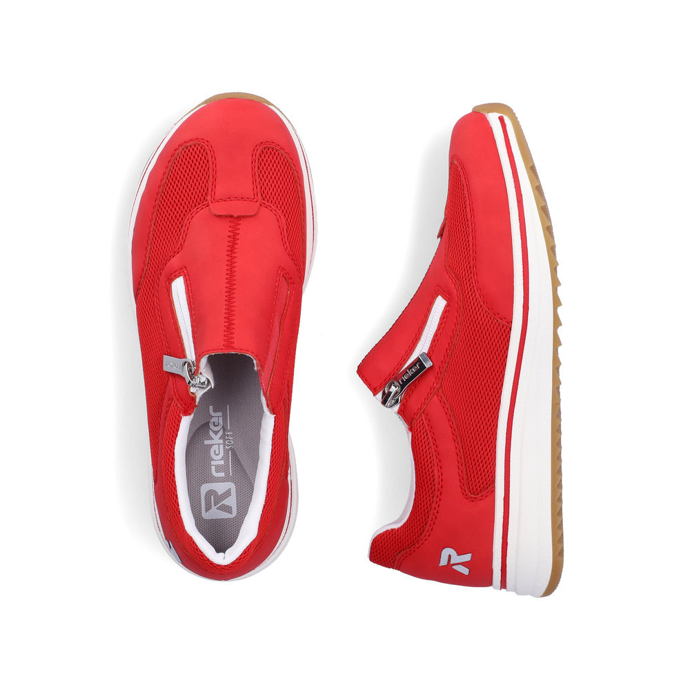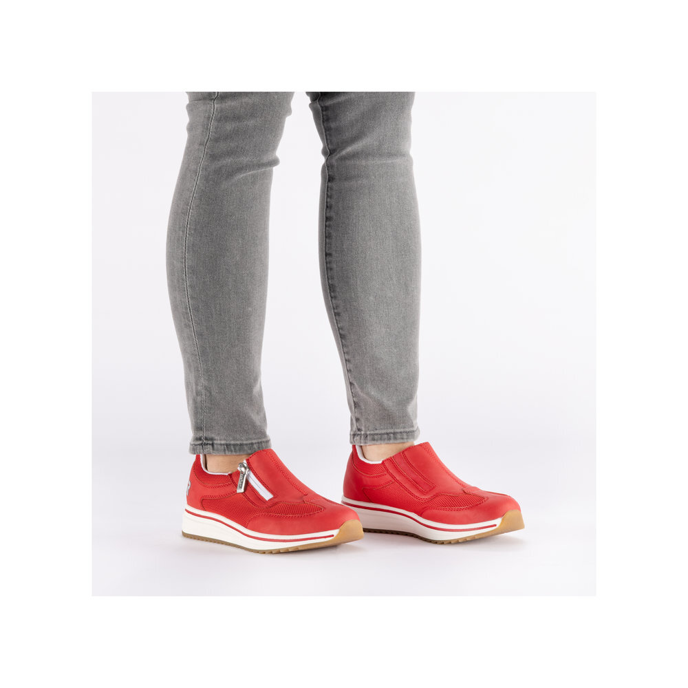 Dámske tenisky z kolekcie značky Rieker. Určite si ich zamilujete vďaka ich pohodlnosti a mäkkosti. Bočné zapínanie na zips pre jednoduché obutie a šnurovaním pre jednoduché správne nastavenie potrebnej šírky. Vďaka pevnému šnurovaniu tento model topánok pevne priľne k nohe po celej dĺžke. Viazanie zároveň esteticky dotvára zvršok obuvi v klasickom štýle. Priestorný strih. Pružná podošva dokonale dopĺňa dizajn, postará sa o Vaše pohodlie na každom kroku, tlmí nárazy a otrasy. Vďaka unikátnym vlastnostiam podošvy zažijete jedinečný pocit ľahkosti pri chôdzi. Ak denne trávite na nohách viac času tak značka Rieker je skutočne tou pravou voľbou pre Vás. Ide doslova o vychádzkovú obuv ktorá vydrží v plnej kvalite naozaj veľmi dlhý čas. Po vyčerpávajúcom a náročnom dni sa budú Vaše nohy cítiť svieže a oddýchnuté a to najmä vďaka ľahkým materiálom a konštrukcii.