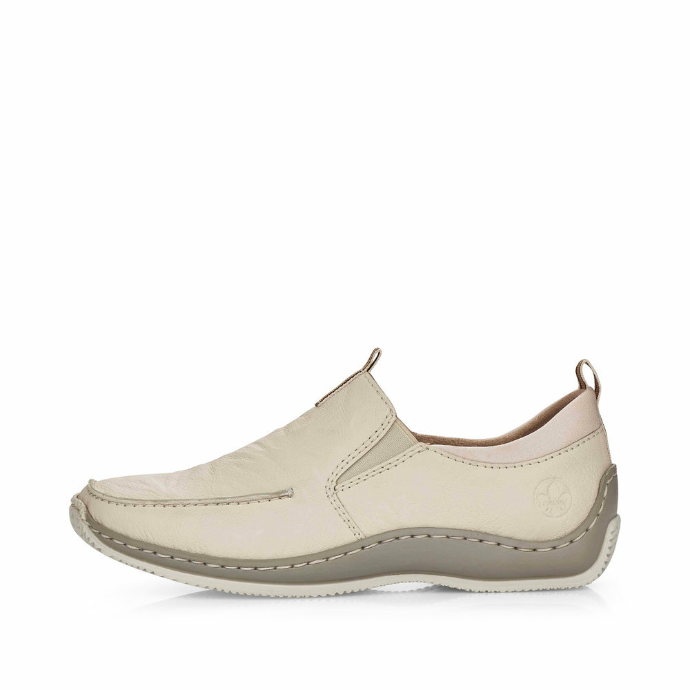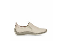 Dámske kožené mokasíny z kolekcie značky RIEKER. Kožený zvršok je jemne ozdobený perforáciou a prešívaním. Z bočnej strany topánok je vytlačené logo značky. Jednoduché obúvanie a prispôsobenie sa podľa požiadaviek zaistia všité pružné vsadky v oblasti priehlavku a o pohodlie na každom kroku sa postará mäkká kožená stielka. Podrážka šedej farby je so zvrškom spojená šitím a na päte a špičke je vyvýšený, čo slúži proti okopaniu obuvi. Ergonomický tvar dodáva pocit absolútneho pohodlia. Ak denne trávite na nohách viac času tak značka Rieker je skutočne tou pravou voľbou pre Vás. Ide doslova o vychádzkovú obuv ktorá vydrží v plnej kvalite naozaj veľmi dlhý čas. Po vyčerpávajúcom a náročnom dni sa budú Vaše nohy cítiť svieže a oddýchnuté a to najmä vďaka ľahkým materiálom. Z kolekcie Antistress. Protistresový systém znamená pohodlie pri každom kroku vďaka ľahkej, flexibilnej podrážke.