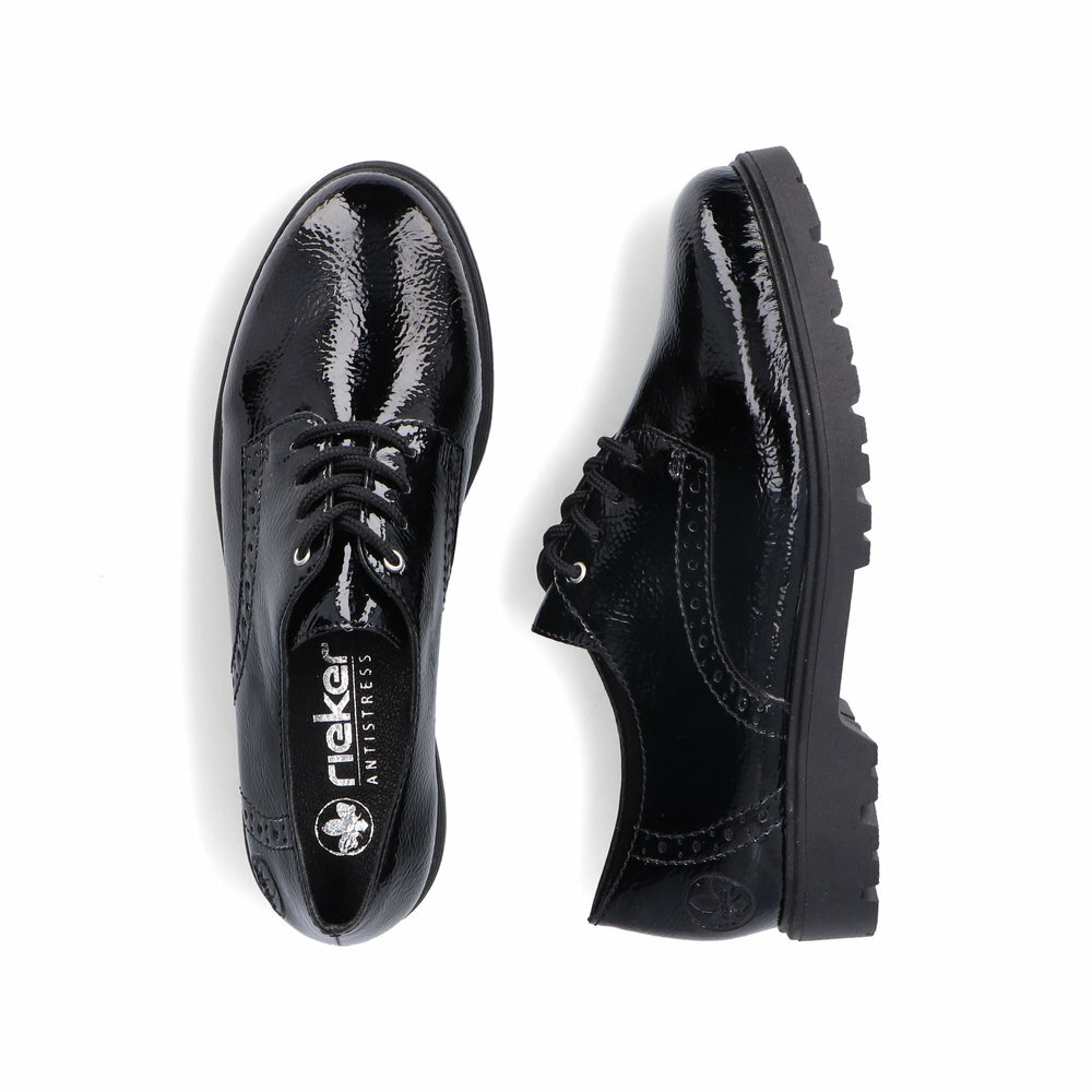Dámske poltopánky z kolekcie Rieker. Priestorný strih. Vďaka pevnému šnurovaniu tento model topánok pevne priľne k nohe po celej dĺžke. Viazanie zároveň esteticky dotvára zvršok obuvi v klasickom štýle. Pre všetkých, ktorí sa chcú v topánkach cítiť pohodlne a štýlovo. Pružná a robustná podošva dokonale dopĺňa športový dizajn, postará sa o Vaše pohodlie na každom kroku, tlmí nárazy a otrasy. Vďaka unikátnym vlastnostiam podošvy zažijete jedinečný pocit ľahkosti pri chôdzi. Ak denne trávite na nohách viac času tak značka Rieker je skutočne tou pravou voľbou pre Vás. Ide doslova o vychádzkovú obuv ktorá vydrží v plnej kvalite naozaj veľmi dlhý čas.