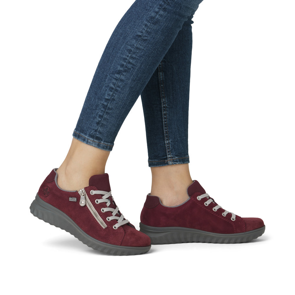 Dámske kožené tenisky z kolekcie značky Rieker. Určite si ich zamilujete vďaka ich pohodlnosti a mäkkosti. Bočné zapínanie na zips pre jednoduché obutie a šnurovaním pre jednoduché správne nastavenie potrebnej šírky. Vďaka pevnému šnurovaniu tento model topánok pevne priľne k nohe po celej dĺžke. Viazanie zároveň esteticky dotvára zvršok obuvi v klasickom štýle. Priestorný strih. Pružná podošva dokonale dopĺňa dizajn, postará sa o Vaše pohodlie na každom kroku, tlmí nárazy a otrasy. Vďaka unikátnym vlastnostiam podošvy zažijete jedinečný pocit ľahkosti pri chôdzi. Ak denne trávite na nohách viac času tak značka Rieker je skutočne tou pravou voľbou pre Vás. Ide doslova o vychádzkovú obuv ktorá vydrží v plnej kvalite naozaj veľmi dlhý čas. Po vyčerpávajúcom a náročnom dni sa budú Vaše nohy cítiť svieže a oddýchnuté a to najmä vďaka ľahkým materiálom a konštrukcii. Rieker TEX - funkčná vrstva, vďaka ktorej je topánka nepremokavá a napriek tomu priedušná.