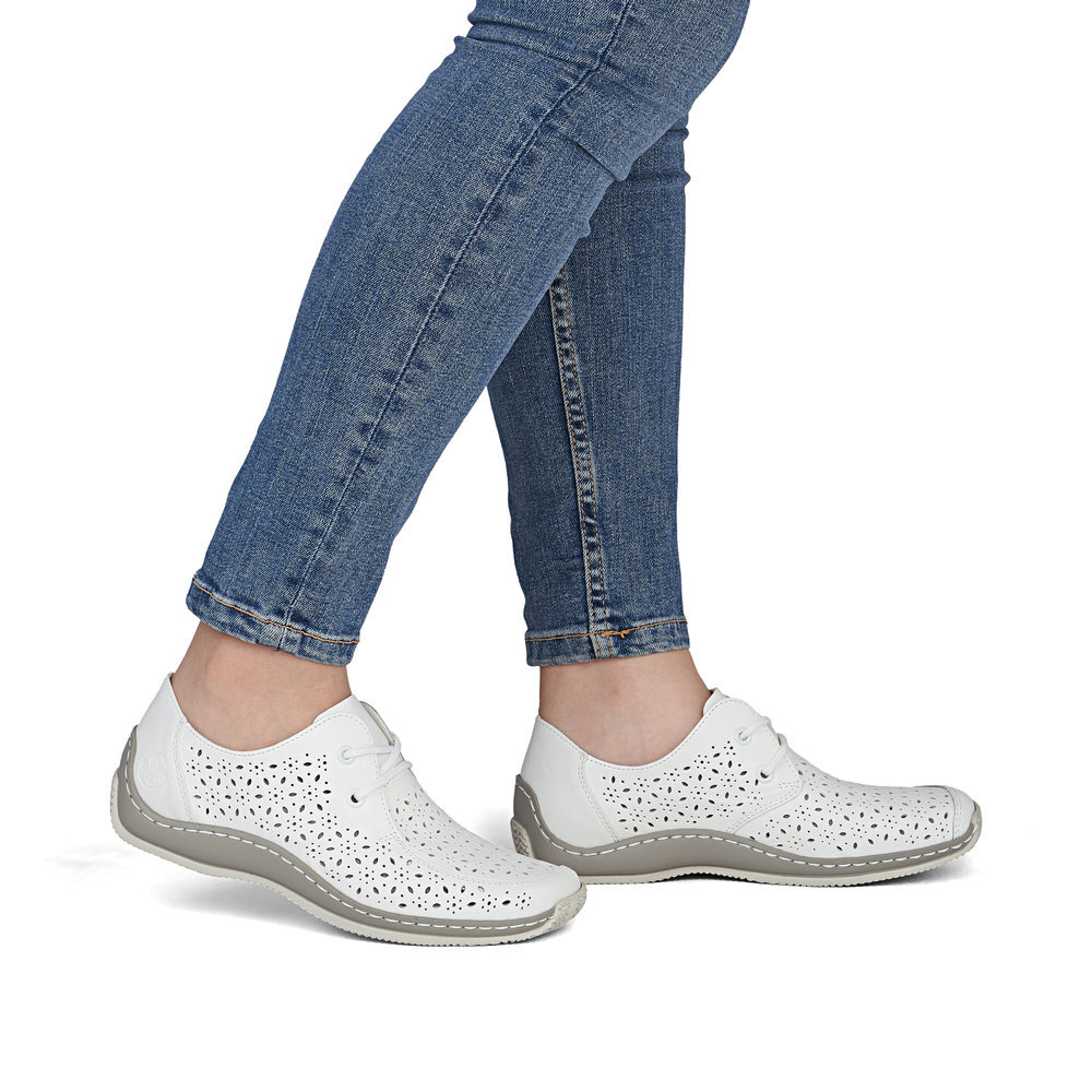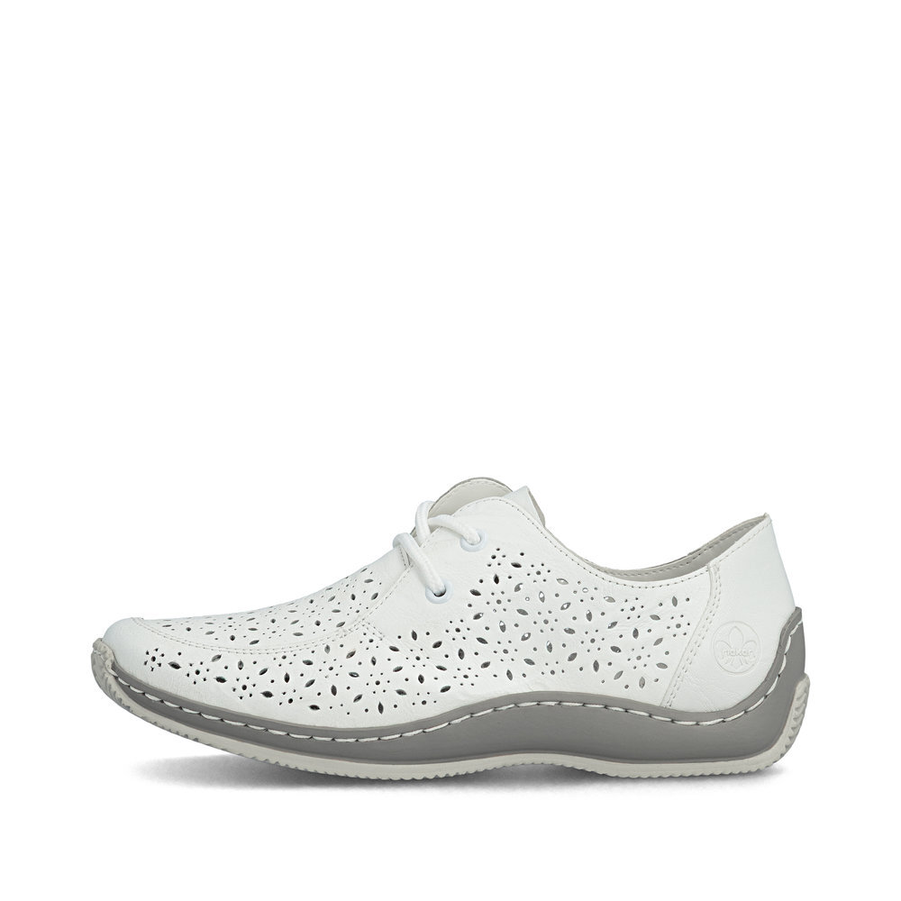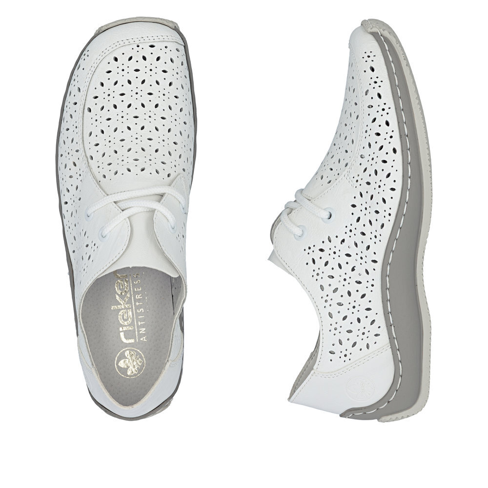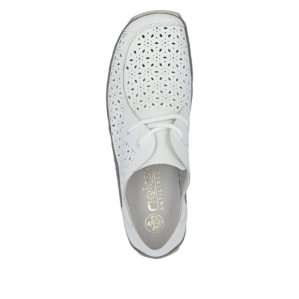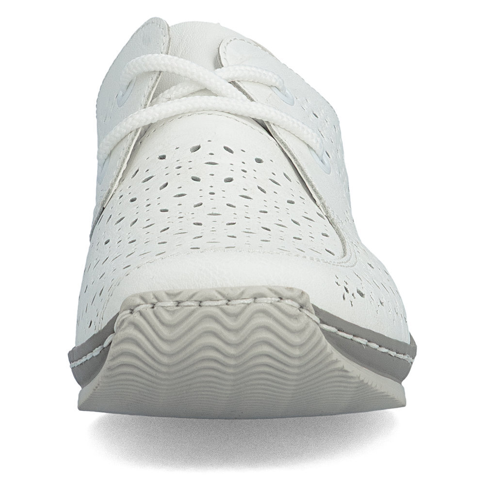 Dámske kožené poltopánky z kolekcie značky Rieker. Kožené topánky sú zaručenou klasikou, zaručia Vám vysokú kvalitu a ide o pár, ktorý vám vydrží niekoľko sezón. Určite si ich zamilujete vďaka ich pohodlnosti a mäkkosti. Vďaka šnurovaniu tento model topánok pevne priľne k nohe po celej dĺžke. Viazanie zároveň esteticky dotvára zvršok obuvi v klasickom štýle. Priestorný strih. Pružná podošva dokonale dopĺňa dizajn, postará sa o Vaše pohodlie na každom kroku, tlmí nárazy a otrasy. Vďaka unikátnym vlastnostiam podošvy zažijete jedinečný pocit ľahkosti pri chôdzi. Ak denne trávite na nohách viac času tak značka Rieker je skutočne tou pravou voľbou pre Vás. Po vyčerpávajúcom a náročnom dni sa budú Vaše nohy cítiť svieže a oddýchnuté a to najmä vďaka ľahkým materiálom a konštrukcii.