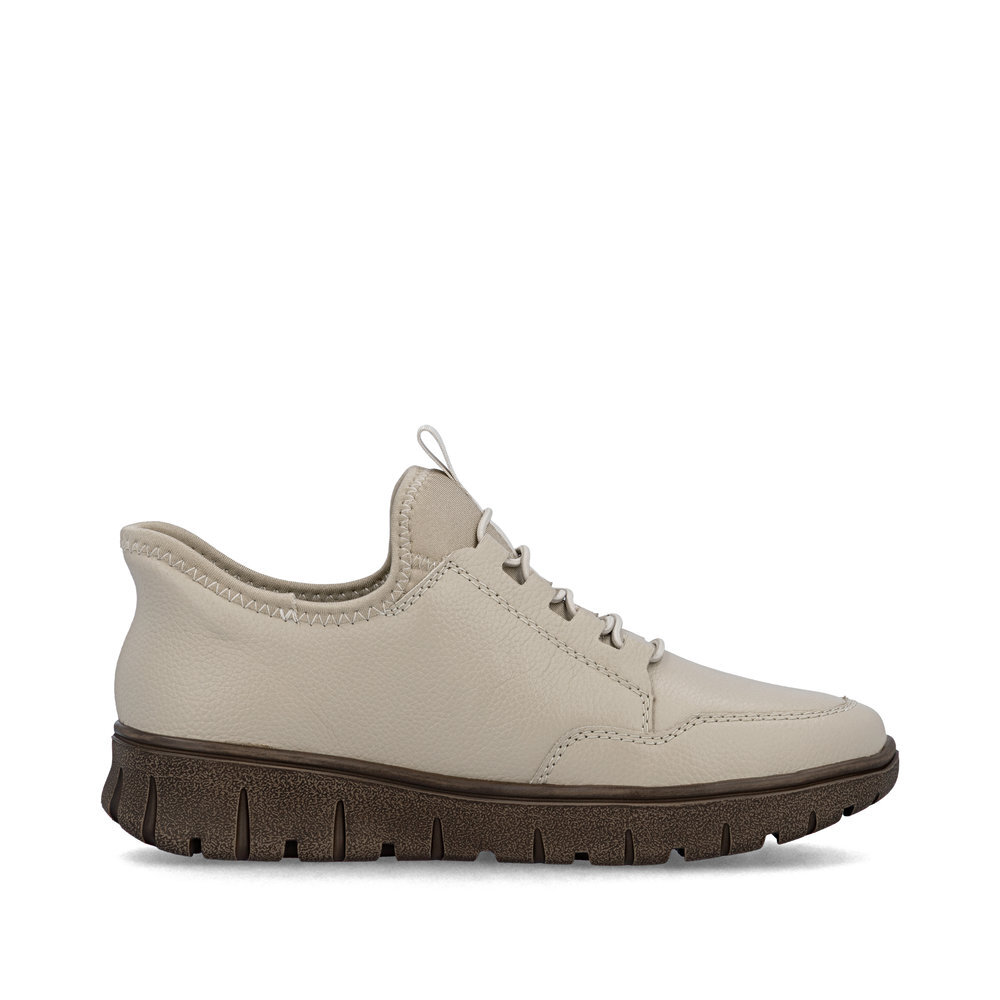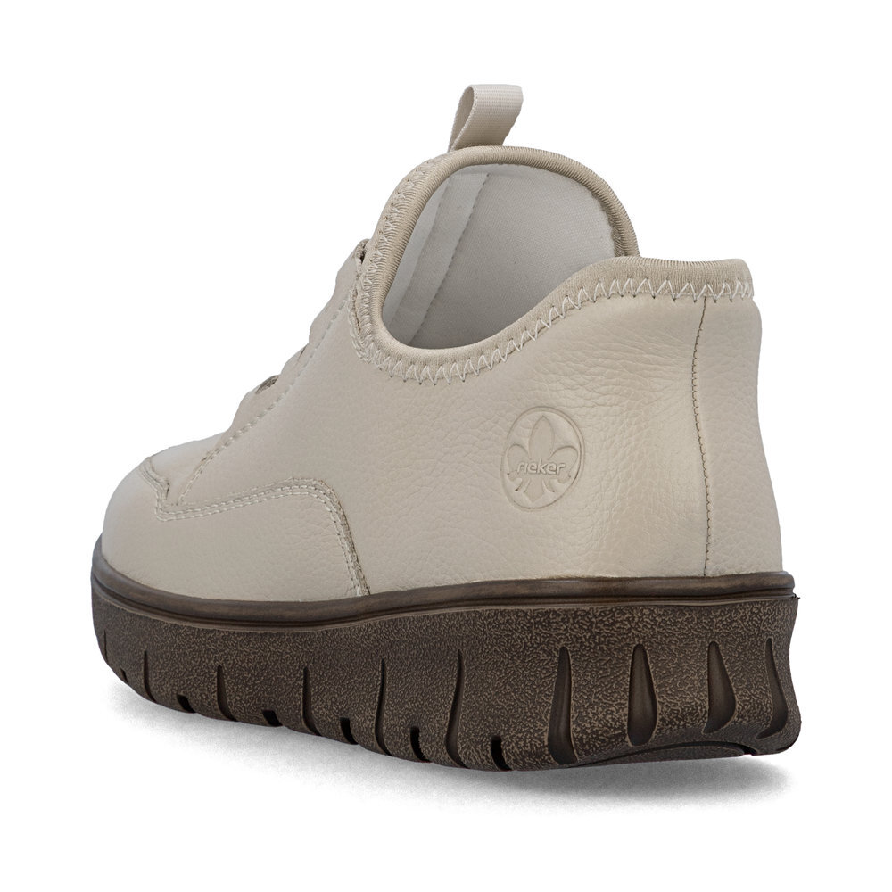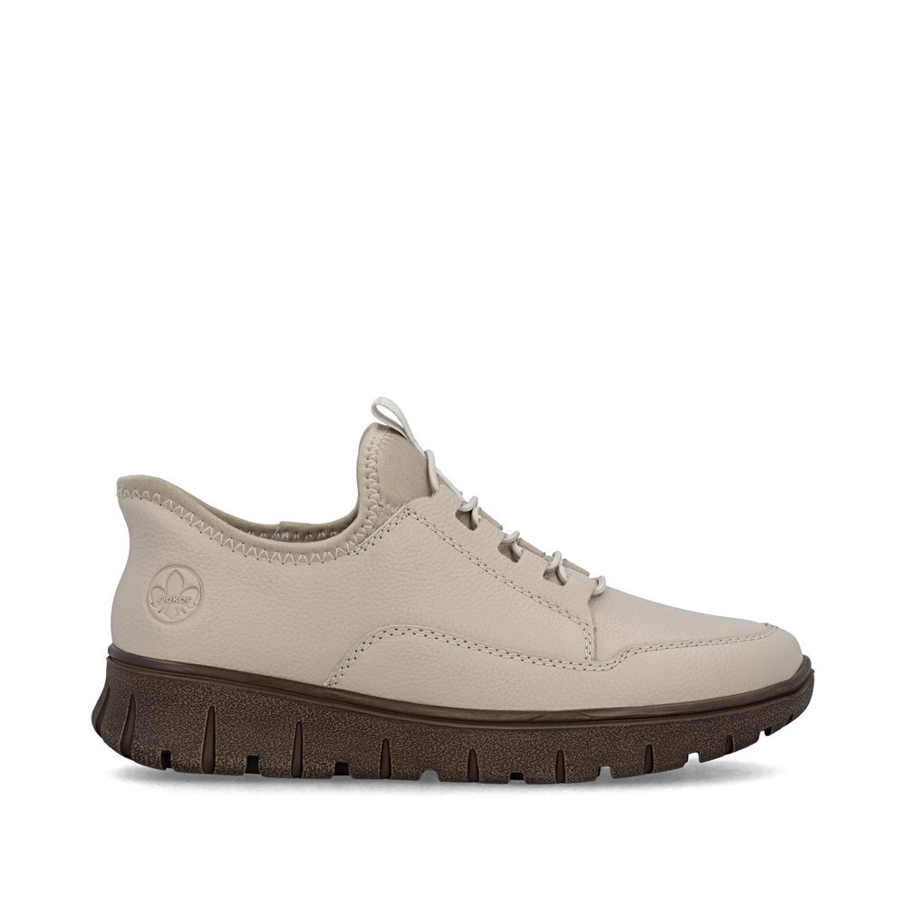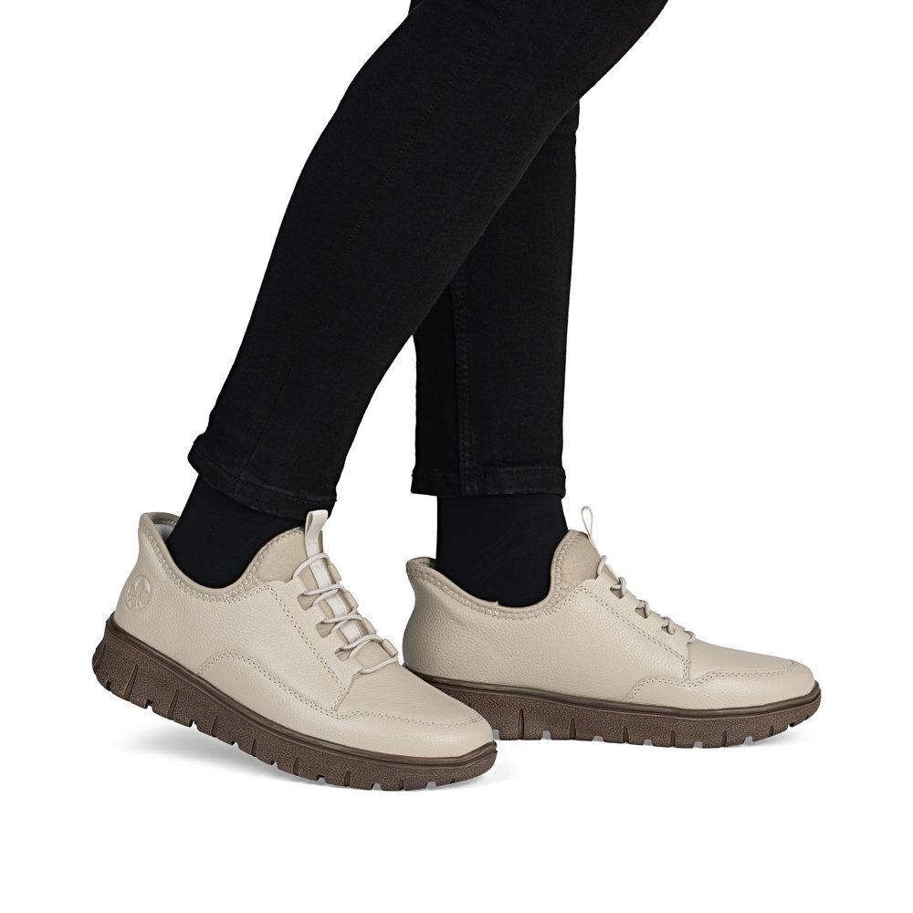 Dámske kožené tenisky z mäkkého a ľahkého materiálu z kolekcie značky Rieker, originálne, mimoriadne funkčné. Elastická šnúra umožňuje rýchle a jednoduché obúvanie a ultraľahká podošva poskytuje flexibilitu a efektívne tlmenie nárazov. Mäkká podrážka vo vnútri sa prispôsobí vašim nohám a zaistí dobrú oporu počas celého dňa. Je to ideálny model, ktorý oceníte pri ceste do práce, ale aj pri bežných pochôdzkach. Vďaka unikátnym vlastnostiam podošvy zažijete jedinečný pocit ľahkosti pri chôdzi. Ak denne trávite na nohách viac času tak značka Rieker je skutočne tou pravou voľbou pre Vás. Ide doslova o vychádzkovú obuv ktorá vydrží v plnej kvalite naozaj veľmi dlhý čas. Po vyčerpávajúcom a náročnom dni sa budú Vaše nohy cítiť svieže a oddýchnuté a to najmä vďaka ľahkým materiálom a konštrukcii. Kožené topánky sú zaručenou klasikou, zaručia Vám vysokú kvalitu a ide o pár, ktorý vám vydrží niekoľko sezón.