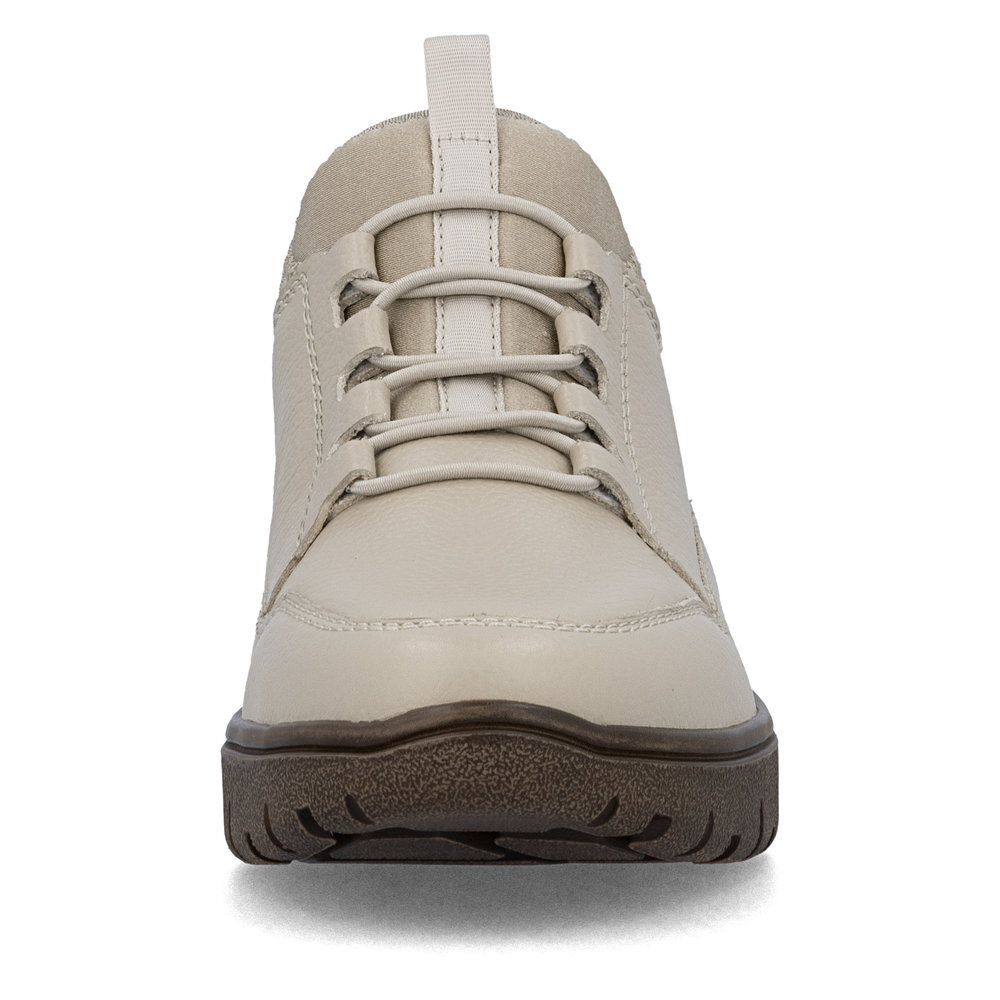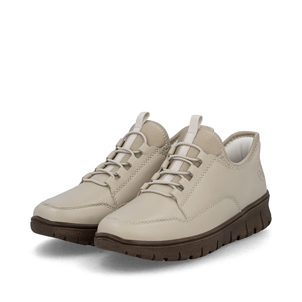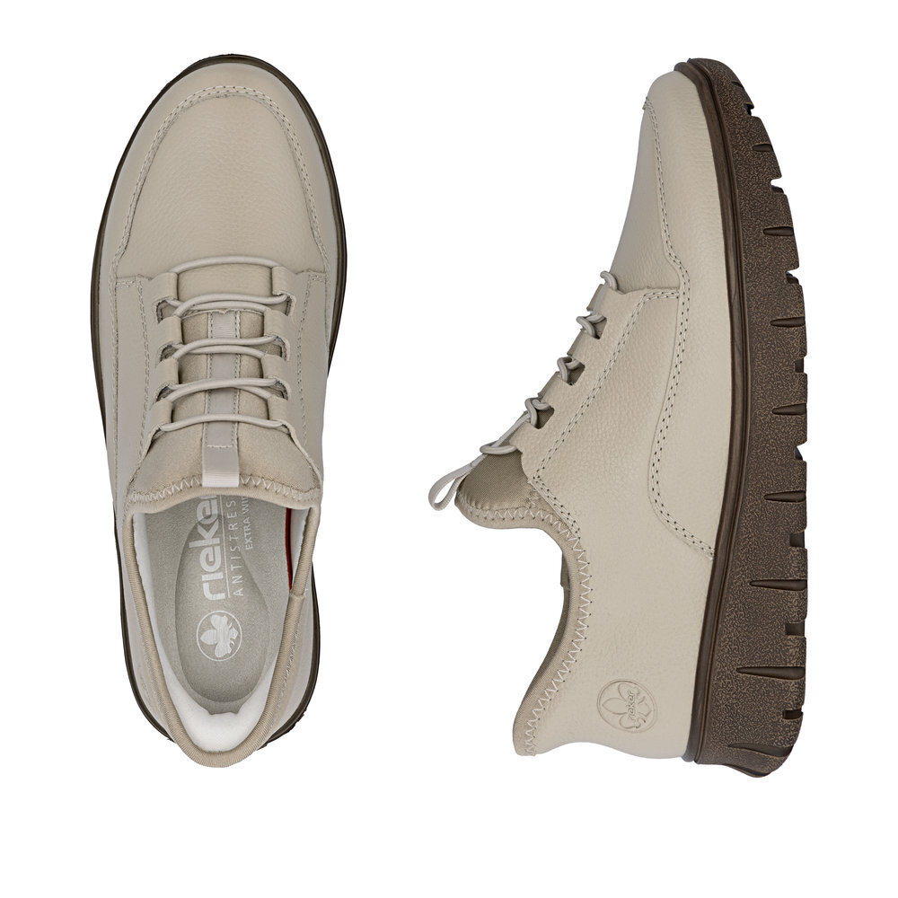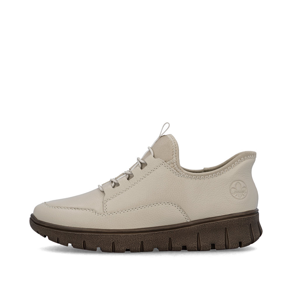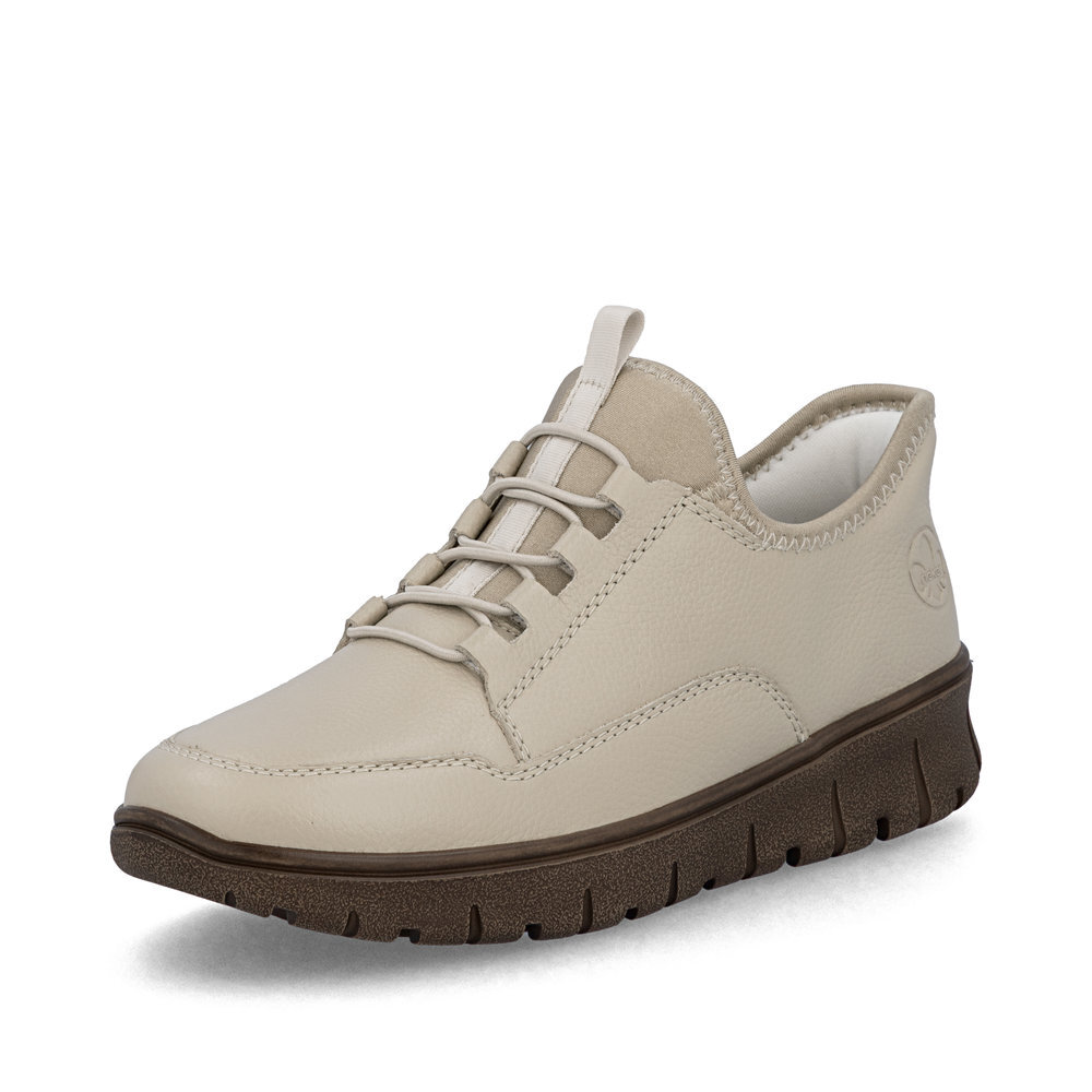 Dámske kožené tenisky z mäkkého a ľahkého materiálu z kolekcie značky Rieker, originálne, mimoriadne funkčné. Elastická šnúra umožňuje rýchle a jednoduché obúvanie a ultraľahká podošva poskytuje flexibilitu a efektívne tlmenie nárazov. Mäkká podrážka vo vnútri sa prispôsobí vašim nohám a zaistí dobrú oporu počas celého dňa. Je to ideálny model, ktorý oceníte pri ceste do práce, ale aj pri bežných pochôdzkach. Vďaka unikátnym vlastnostiam podošvy zažijete jedinečný pocit ľahkosti pri chôdzi. Ak denne trávite na nohách viac času tak značka Rieker je skutočne tou pravou voľbou pre Vás. Ide doslova o vychádzkovú obuv ktorá vydrží v plnej kvalite naozaj veľmi dlhý čas. Po vyčerpávajúcom a náročnom dni sa budú Vaše nohy cítiť svieže a oddýchnuté a to najmä vďaka ľahkým materiálom a konštrukcii. Kožené topánky sú zaručenou klasikou, zaručia Vám vysokú kvalitu a ide o pár, ktorý vám vydrží niekoľko sezón.