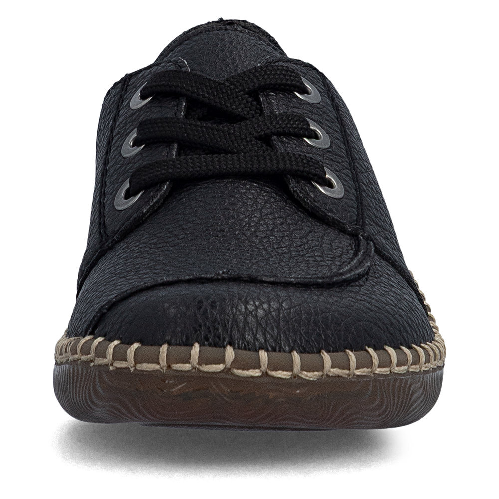 Dámske kožené poltopánky z kolekcie značky Rieker. Priestorný strih. Určite si ich zamilujete vďaka ich pohodlnosti a mäkkosti. Kožené topánky sú zaručenou klasikou, zaručia Vám vysokú kvalitu a ide o pár, ktorý vám vydrží niekoľko sezón. Vďaka pevnému šnurovaniu tento model topánok pevne priľne k nohe po celej dĺžke. Viazanie zároveň esteticky dotvára zvršok obuvi v klasickom štýle. Pre všetkých, ktorí sa chcú v topánkach cítiť pohodlne a štýlovo. Pružná podošva dokonale dopĺňa dizajn, postará sa o Vaše pohodlie na každom kroku, tlmí nárazy a otrasy. Vďaka unikátnym vlastnostiam podošvy zažijete jedinečný pocit ľahkosti pri chôdzi. Ak denne trávite na nohách viac času tak značka Rieker je skutočne tou pravou voľbou pre Vás. Ide doslova o vychádzkovú obuv ktorá vydrží v plnej kvalite naozaj veľmi dlhý čas.