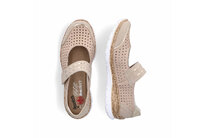 Ležérny strih dámskych topánok z kolekcie značky Rieker s individuálne nastaviteľnými uzávermi na suchý zips. Guľatý a priestorný tvar špičky. Perforovanie - dierkovanie v hornej časti zvršku dávajú topánkam svoj osobitý a vzdušný vzhľad. Pružná a robustná podošva dokonale dopĺňa športový dizajn, postará sa o Vaše pohodlie na každom kroku, tlmí nárazy a otrasy. Z kolekcie Antistress. Protistresový systém znamená pohodlie pri každom kroku vďaka ľahkej, flexibilnej podrážke. Ak denne trávite na nohách viac času tak značka Rieker je skutočne tou pravou voľbou pre Vás. Ide doslova o vychádzkovú obuv ktorá vydrží v plnej kvalite naozaj veľmi dlhý čas. Po vyčerpávajúcom a náročnom dni sa budú Vaše nohy cítiť svieže a oddýchnuté a to najmä vďaka ľahkým materiálom a konštrukcii.