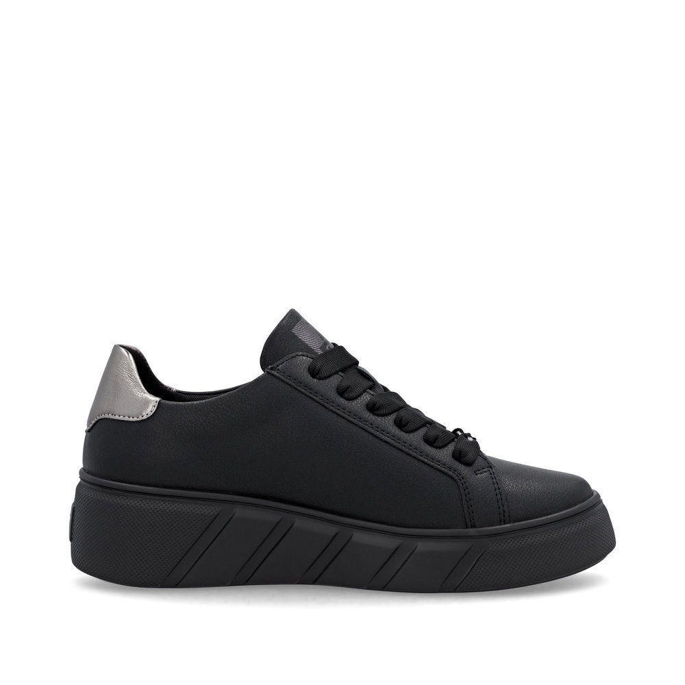 Dámske kožené sneakersy, tenisky z kolekcie značky Rieker - Revolution. Sú skvelým doplnením ležérneho outfitu. Kožené topánky sú zaručenou klasikou, zaručia Vám vysokú kvalitu a ide o pár, ktorý vám vydrží niekoľko sezón. Bočné zapínanie na zips pre jednoduché obutie a šnurovaním pre jednoduché správne nastavenie potrebnej šírky. Vďaka pevnému šnurovaniu tento model topánok pevne priľne k nohe po celej dĺžke. Viazanie zároveň esteticky dotvára zvršok obuvi v klasickom štýle. Pre všetkých, ktorí sa chcú v topánkach cítiť pohodlne a štýlovo. Pružná a robustná podošva dokonale dopĺňa športový dizajn, postará sa o Vaše pohodlie na každom kroku, tlmí nárazy a otrasy. Pohodlná, ľahká konštrukcia s mäkkou stielkou zaistí príjemnú chôdzu, rovnako ako aj ohybná podošva. Ak denne trávite na nohách viac času tak značka Rieker je skutočne tou pravou voľbou pre Vás. Ide doslova o vychádzkovú obuv ktorá vydrží v plnej kvalite naozaj veľmi dlhý čas.