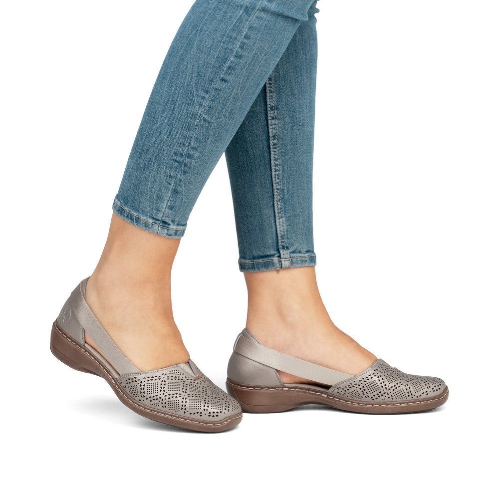 Dámske kožené sandále z kolekcie značky Rieker na klinovom podpätku. Sú skvelým doplnením každého elegantného ale aj ležérneho outfitu, pohodlné nosenie aj v tých najteplejších letných dňoch. Vsadené pružinové vsadky pre ľahšie obúvanie a vyzúvanie. Remienky poskytujú presné prispôsobenie a topánky sú tak pevné a stabilné na nohe. Vďaka unikátnym vlastnostiam podošvy zažijete jedinečný pocit ľahkosti pri chôdzi. Kožené topánky sú zaručenou klasikou, zaručia Vám vysokú kvalitu a ide o pár, ktorý vám vydrží niekoľko sezón. Ak denne trávite na nohách viac času tak značka Rieker je skutočne tou pravou voľbou pre Vás. Ide doslova o vychádzkovú obuv ktorá vydrží v plnej kvalite naozaj veľmi dlhý čas. Po vyčerpávajúcom a náročnom dni sa budú Vaše nohy cítiť svieže a oddýchnuté a to najmä vďaka ľahkým materiálom a konštrukcii.