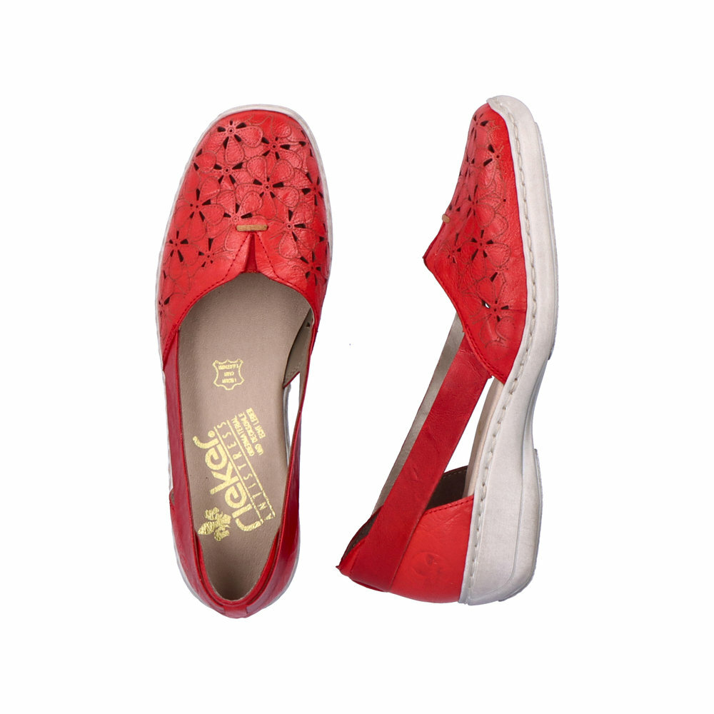 Dámske kožené sandále z kolekcie značky Rieker na nízkom podpätku. Pre všetkých, ktorí sa chcú v topánkach cítiť pohodlne a štýlovo. Pružinové vsadky pre jednoduché obutie. Mäkká stielka, ktorá podporí príjemný došľap, nadväzuje na zabrúsenú pätnú časť, optimálna, pohodlná výška podpätku. Vďaka unikátnym vlastnostiam podošvy zažijete jedinečný pocit ľahkosti pri chôdzi. Z kolekcie Antistress. Protistresový systém znamená pohodlie pri každom kroku vďaka ľahkej, flexibilnej podrážke. Ak denne trávite na nohách viac času tak značka Rieker je skutočne tou pravou voľbou pre Vás. Ide doslova o vychádzkovú obuv ktorá vydrží v plnej kvalite naozaj veľmi dlhý čas. Po vyčerpávajúcom a náročnom dni sa budú Vaše nohy cítiť svieže a oddýchnuté a to najmä vďaka ľahkým materiálom a konštrukcii.
