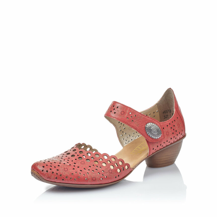 Dámske kožené sandále z kolekcie značky Rieker na nízkom podpätku. Pre všetkých, ktorí sa chcú v topánkach cítiť pohodlne a štýlovo. S individuálne nastaviteľnými uzávermi na suchý zips poskytujú presné prispôsobenie a topánky sú tak pevné a stabilné na nohe. Mäkká stielka, ktorá podporí príjemný došľap, nadväzuje na zabrúsenú pätnú časť, optimálna, pohodlná výška podpätku. Vďaka unikátnym vlastnostiam podošvy zažijete jedinečný pocit ľahkosti pri chôdzi. Z kolekcie Antistress. Protistresový systém znamená pohodlie pri každom kroku vďaka ľahkej, flexibilnej podrážke. Ak denne trávite na nohách viac času tak značka Rieker je skutočne tou pravou voľbou pre Vás. Ide doslova o vychádzkovú obuv ktorá vydrží v plnej kvalite naozaj veľmi dlhý čas. Po vyčerpávajúcom a náročnom dni sa budú Vaše nohy cítiť svieže a oddýchnuté a to najmä vďaka ľahkým materiálom a konštrukcii.