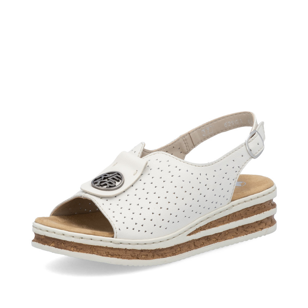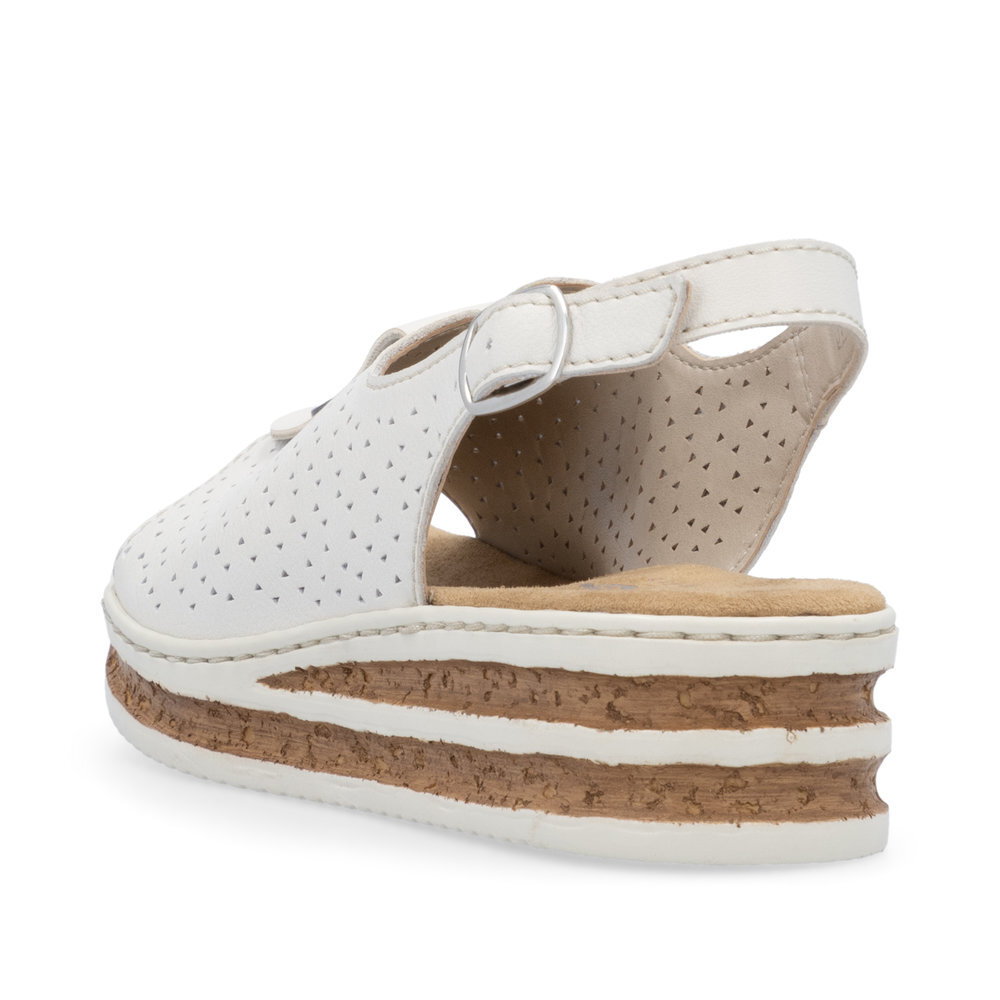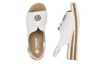 Dámske kožené sandále z kolekcie značky Rieker na klinovom podpätku, platforme. Kožené topánky sú zaručenou klasikou, zaručia Vám vysokú kvalitu a ide o pár, ktorý vám vydrží niekoľko sezón. Určite si ich zamilujete vďaka ich pohodlnosti a mäkkosti. Komfortný model, ktorý počas letných dní zaiste využijete. Optimálna výška klinu. S individuálne nastaviteľnými uzávermi poskytujú presné prispôsobenie a topánky sú tak pevné a stabilné na nohe. Vďaka unikátnym vlastnostiam podošvy zažijete jedinečný pocit ľahkosti pri chôdzi. Ak denne trávite na nohách viac času tak značka Rieker je skutočne tou pravou voľbou pre Vás. Ide doslova o vychádzkovú obuv ktorá vydrží v plnej kvalite naozaj veľmi dlhý čas. Po vyčerpávajúcom a náročnom dni sa budú Vaše nohy cítiť svieže a oddýchnuté a to najmä vďaka ľahkým materiálom a konštrukcii.