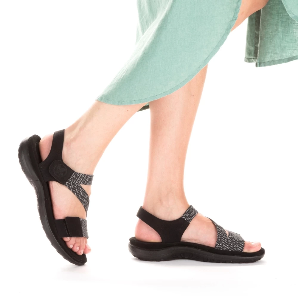 Dámske sandále z kolekcie značky Rieker. Komfortný model, ktorý počas letných dní zaiste využijete. Topánky Vám zabezpečia maximálny komfort pri celodennom nosení. S individuálne nastaviteľnými remienkami na suchý zips. Optimálna, pohodlná výška podrážky, ktorá dokonale dopĺňa dizajn, postará sa o Vaše pohodlie na každom kroku, tlmí nárazy a otrasy. Vďaka unikátnym vlastnostiam podošvy zažijete jedinečný pocit ľahkosti pri chôdzi. Ak denne trávite na nohách viac času tak značka Rieker je skutočne tou pravou voľbou pre Vás. Ide doslova o vychádzkovú obuv ktorá vydrží v plnej kvalite naozaj veľmi dlhý čas. Po vyčerpávajúcom a náročnom dni sa budú Vaše nohy cítiť svieže a oddýchnuté a to najmä vďaka ľahkým materiálom a konštrukcii.