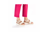 Dámske sandále z kolekcie značky Rieker na klinovom podpätku, platforme. Komfortný model, ktorý počas letných dní zaiste využijete. Topánky Vám zabezpečia maximálny komfort pri celodennom nosení. S individuálne nastaviteľnými remienkami na sponu a suchý zips. Optimálna, pohodlná výška podrážky, ktorá dokonale dopĺňa dizajn, postará sa o Vaše pohodlie na každom kroku, tlmí nárazy a otrasy. Vďaka unikátnym vlastnostiam podošvy zažijete jedinečný pocit ľahkosti pri chôdzi. Ak denne trávite na nohách viac času tak značka Rieker je skutočne tou pravou voľbou pre Vás. Ide doslova o vychádzkovú obuv ktorá vydrží v plnej kvalite naozaj veľmi dlhý čas. Po vyčerpávajúcom a náročnom dni sa budú Vaše nohy cítiť svieže a oddýchnuté a to najmä vďaka ľahkým materiálom a konštrukcii.