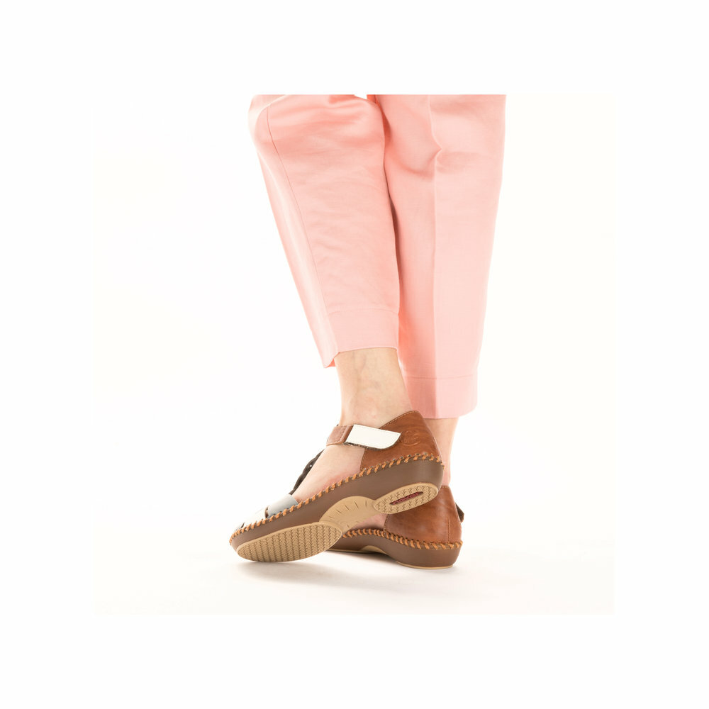 Dámske sandále z kolekcie značky Rieker na nízkom podpätku. Pohodlný strih, ktorý zaručuje pohodlie a komfort aj počas letných horúcich dní. Pre všetkých, ktorí sa chcú v topánkach cítiť pohodlne a štýlovo. S individuálne nastaviteľnými uzávermi na suchý zips poskytujú presné prispôsobenie a topánky sú tak pevné a stabilné na nohe. Ak denne trávite na nohách viac času tak značka Rieker je skutočne tou pravou voľbou pre Vás. Ide doslova o vychádzkovú obuv ktorá vydrží v plnej kvalite naozaj veľmi dlhý čas. Po vyčerpávajúcom a náročnom dni sa budú Vaše nohy cítiť svieže a oddýchnuté a to najmä vďaka ľahkým materiálom a konštrukcii.