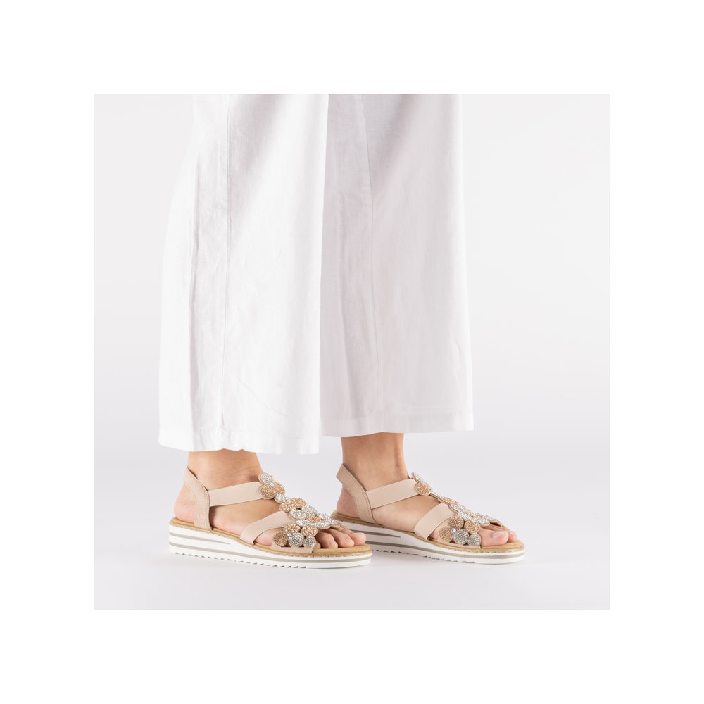 Dámske remienkové sandále z kolekcie značky Rieker na klinovom podpätku, platforme. Pohodlný strih, pohodlné nosenie aj v tých najteplejších letných dňoch. Optimálna výška klinu. Stielka je vyrobená z unikátnej pamäťovej peny, ktorá zmäkčuje každý Váš došľap. Vďaka unikátnym vlastnostiam podošvy zažijete jedinečný pocit ľahkosti pri chôdzi. Ak denne trávite na nohách viac času tak značka Rieker je skutočne tou pravou voľbou pre Vás. Ide doslova o vychádzkovú obuv ktorá vydrží v plnej kvalite naozaj veľmi dlhý čas. Po vyčerpávajúcom a náročnom dni sa budú Vaše nohy cítiť svieže a oddýchnuté a to najmä vďaka ľahkým materiálom a konštrukcii.