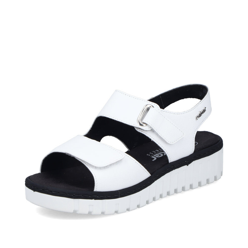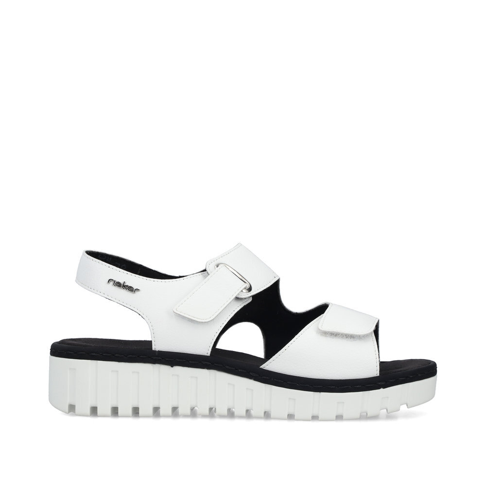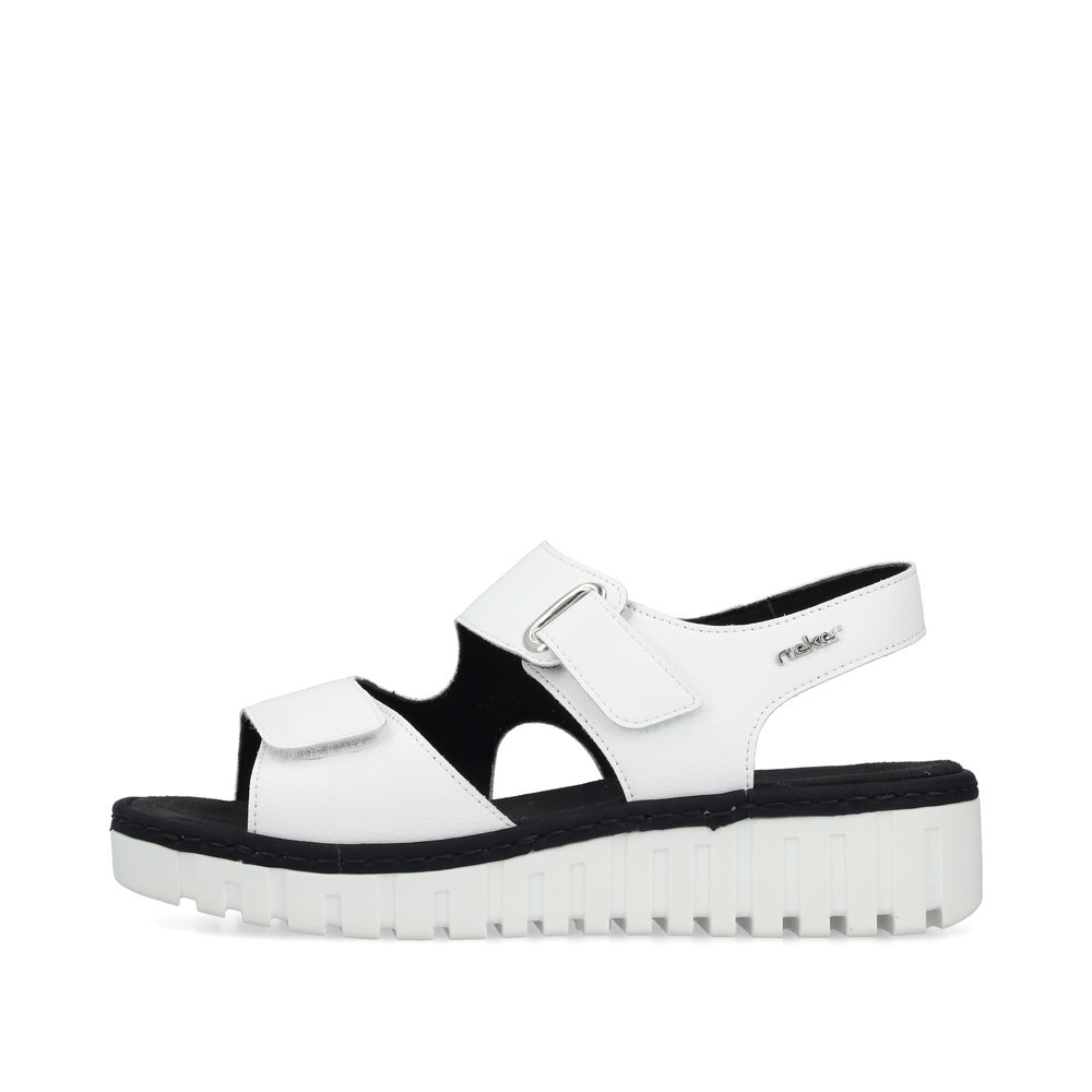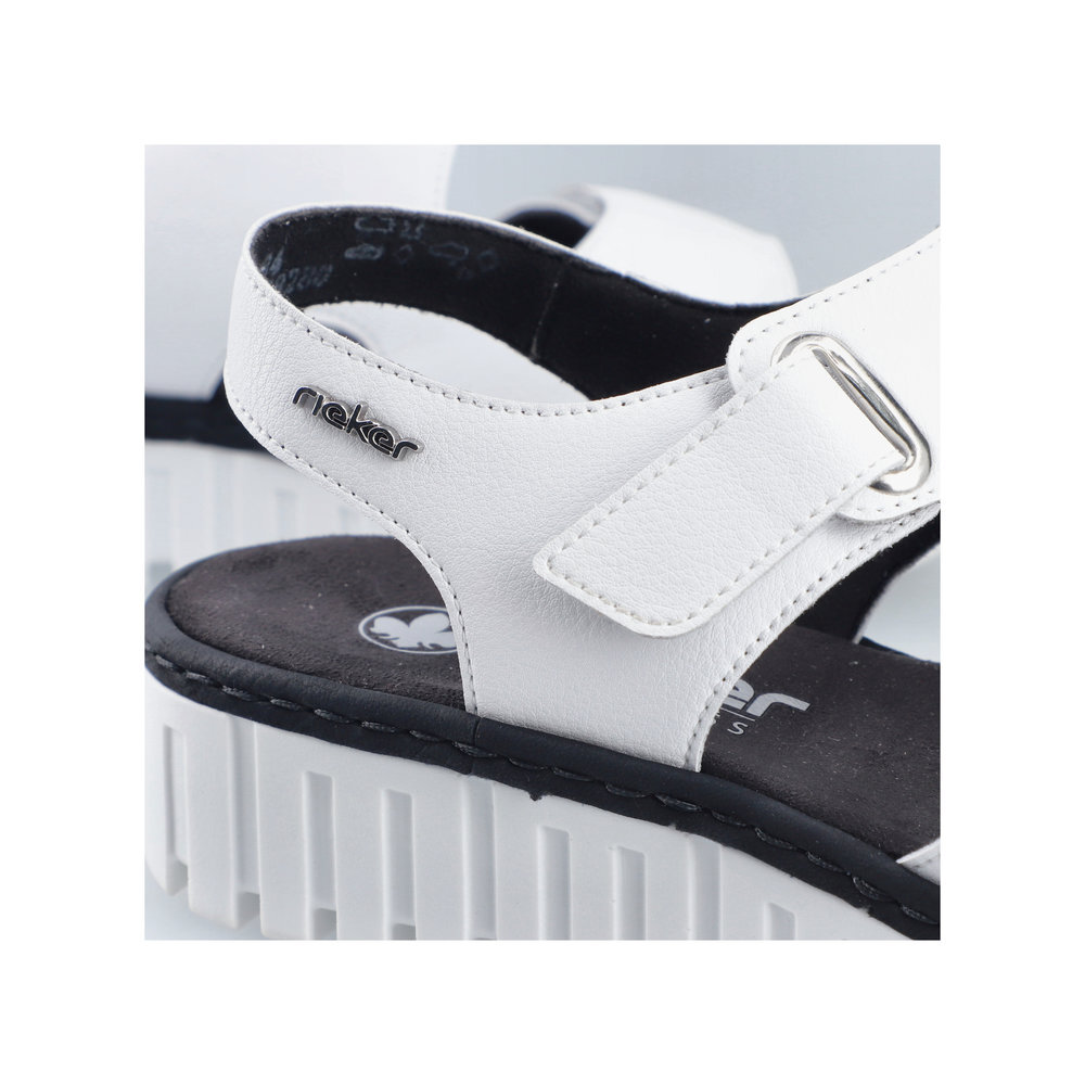 Dámske kožené sandále z kolekcie značky Rieker na platforme. Komfortný model, ktorý počas letných dní zaiste využijete. Kožené topánky sú zaručenou klasikou, zaručia Vám vysokú kvalitu a ide o pár, ktorý vám vydrží niekoľko sezón. S individuálne nastaviteľnými remienkami na suchý zips. Optimálna, pohodlná výška podrážky, ktorá dokonale dopĺňa dizajn, postará sa o Vaše pohodlie na každom kroku, tlmí nárazy a otrasy. Vďaka unikátnym vlastnostiam podošvy zažijete jedinečný pocit ľahkosti pri chôdzi. Ak denne trávite na nohách viac času tak značka Rieker je skutočne tou pravou voľbou pre Vás. Ide doslova o vychádzkovú obuv ktorá vydrží v plnej kvalite naozaj veľmi dlhý čas. Po vyčerpávajúcom a náročnom dni sa budú Vaše nohy cítiť svieže a oddýchnuté a to najmä vďaka ľahkým materiálom a konštrukcii.