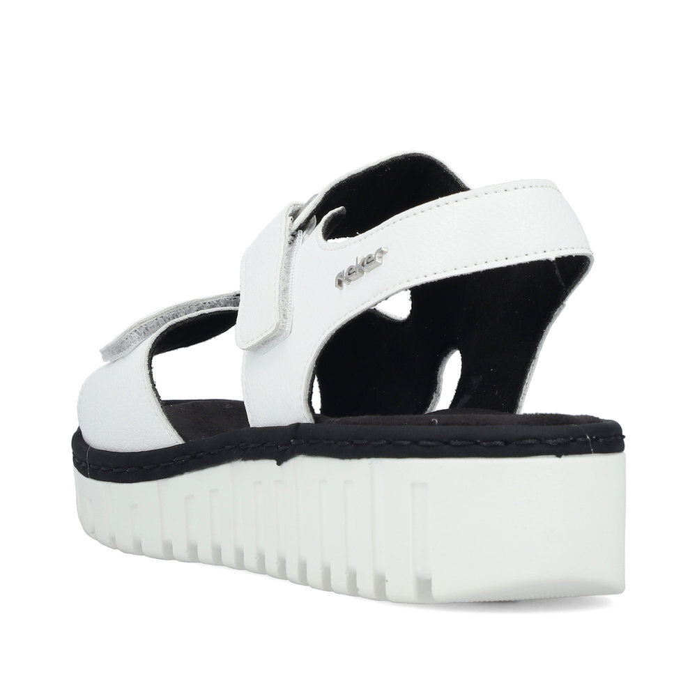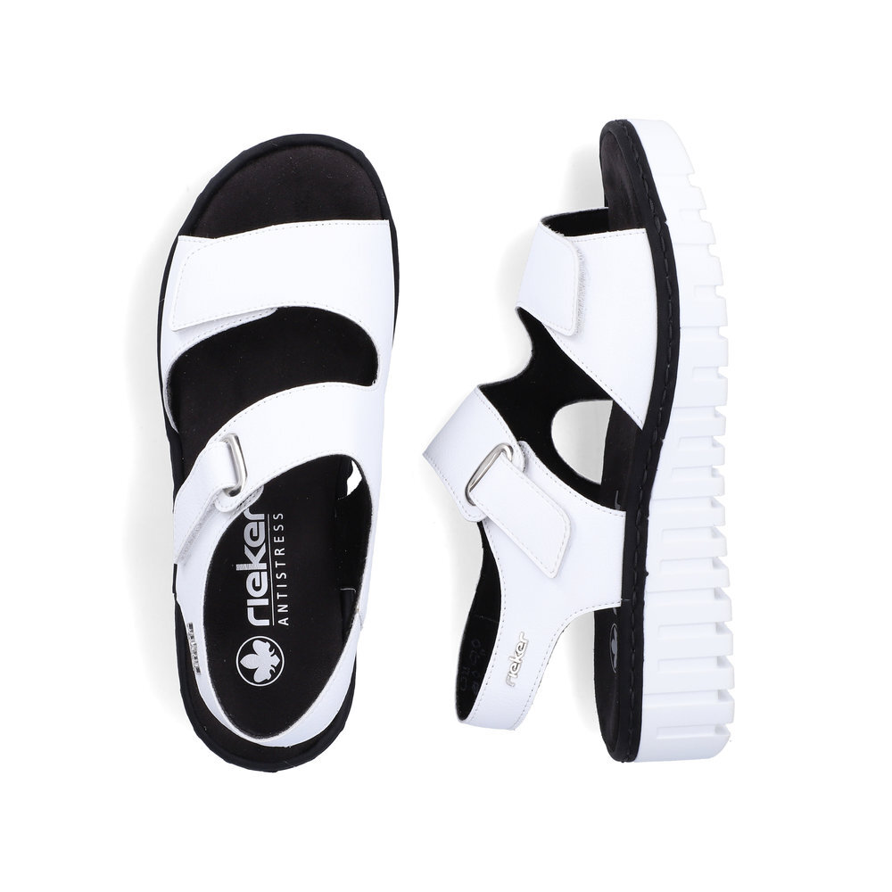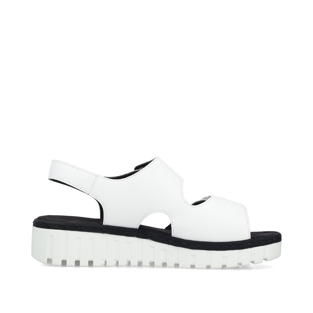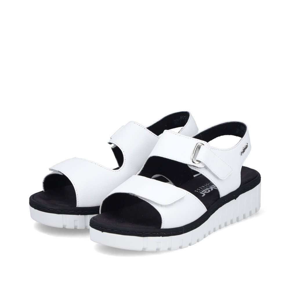 Dámske kožené sandále z kolekcie značky Rieker na platforme. Komfortný model, ktorý počas letných dní zaiste využijete. Kožené topánky sú zaručenou klasikou, zaručia Vám vysokú kvalitu a ide o pár, ktorý vám vydrží niekoľko sezón. S individuálne nastaviteľnými remienkami na suchý zips. Optimálna, pohodlná výška podrážky, ktorá dokonale dopĺňa dizajn, postará sa o Vaše pohodlie na každom kroku, tlmí nárazy a otrasy. Vďaka unikátnym vlastnostiam podošvy zažijete jedinečný pocit ľahkosti pri chôdzi. Ak denne trávite na nohách viac času tak značka Rieker je skutočne tou pravou voľbou pre Vás. Ide doslova o vychádzkovú obuv ktorá vydrží v plnej kvalite naozaj veľmi dlhý čas. Po vyčerpávajúcom a náročnom dni sa budú Vaše nohy cítiť svieže a oddýchnuté a to najmä vďaka ľahkým materiálom a konštrukcii.