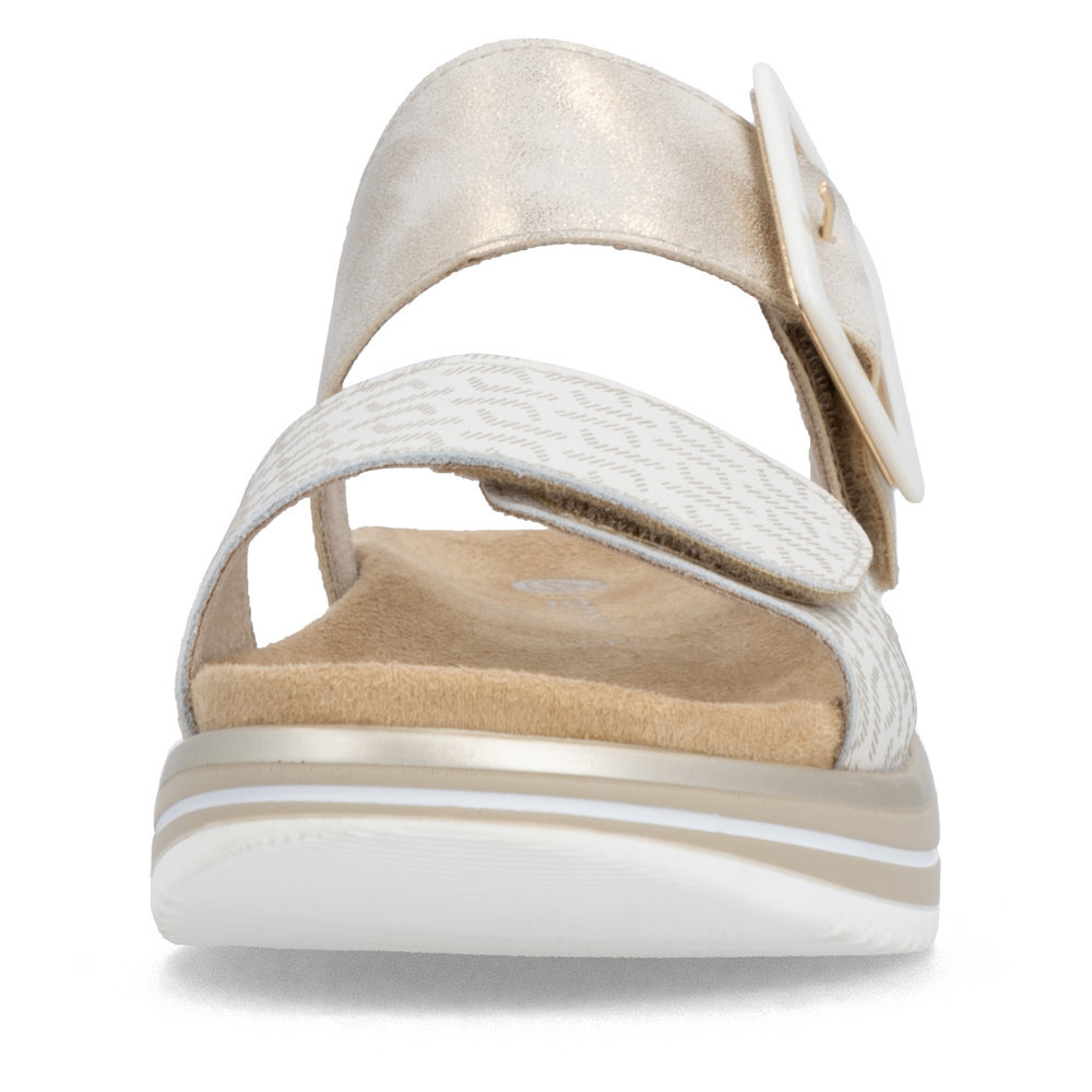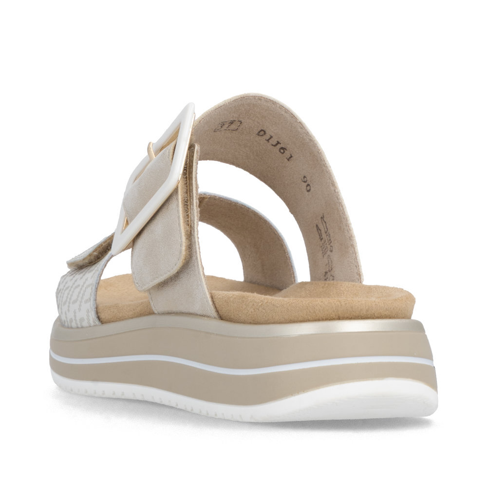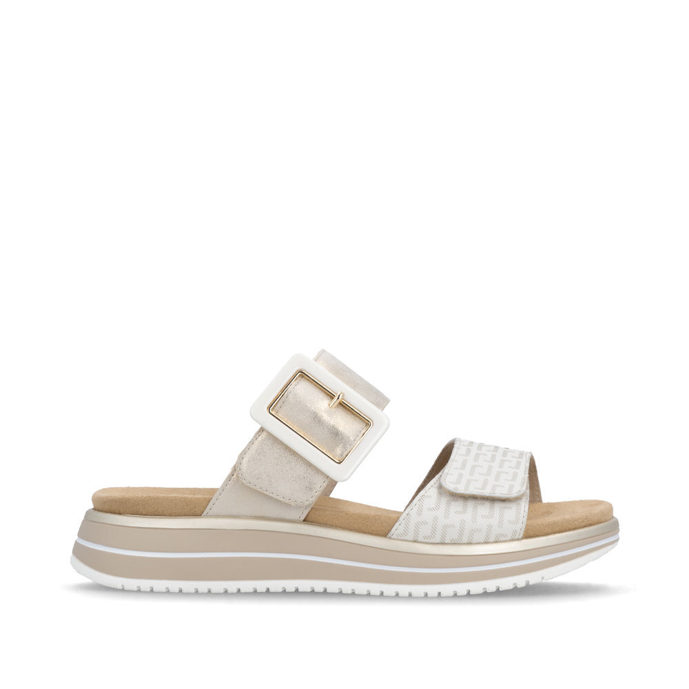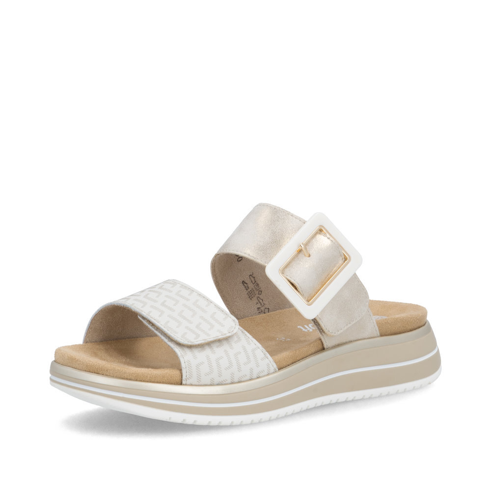 Dámske kožené šľapky z kolekcie značky Remonte - Rieker na klinovom podpätku. Komfortný model, ktorý počas letných dní zaiste využijete. Priestorný strih. Ergonomický tvar dodáva pocit absolútneho pohodlia. Po vyčerpávajúcom a náročnom dni sa budú Vaše nohy cítiť svieže a oddýchnuté a to najmä vďaka ľahkým materiálom a konštrukcii. Pružná platforma dokonale dopĺňa dizajn, postará sa o Vaše pohodlie na každom kroku. Pre všetkých, ktorí sa chcú v topánkach cítiť pohodlne a štýlovo. Obuv REMONTE - jedná sa o vyššiu radu značky RIEKER, táto obuv sa vyznačuje vynikajúcou kombináciou vrchných materiálov. Topánky z rady REMONTE Vám zabezpečia maximálny komfort pri celodennom nosení.